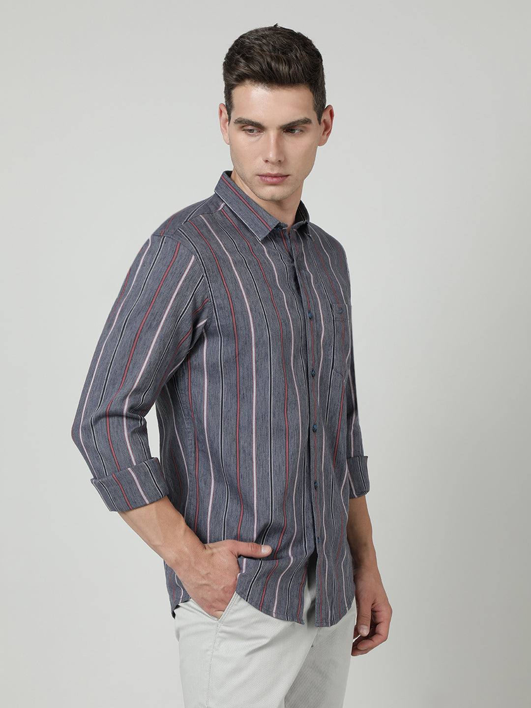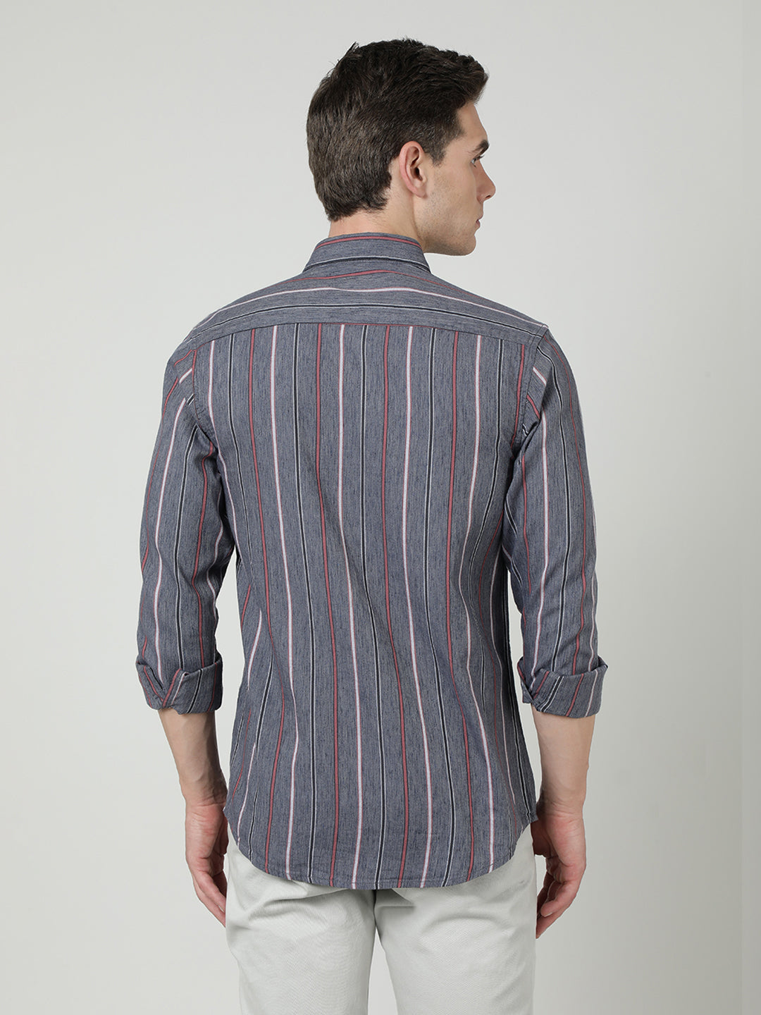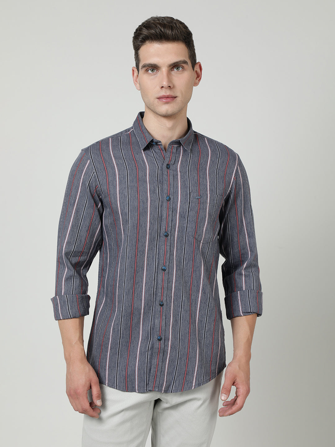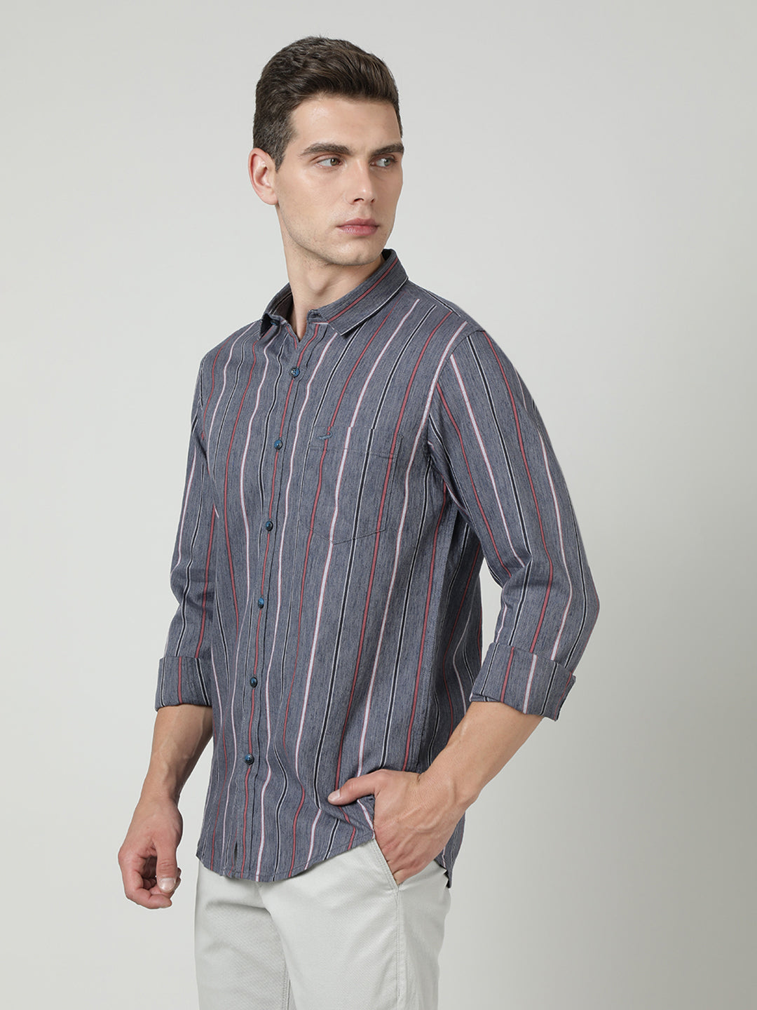 Navy Striped Full Sleeve 100% Cotton Shirt