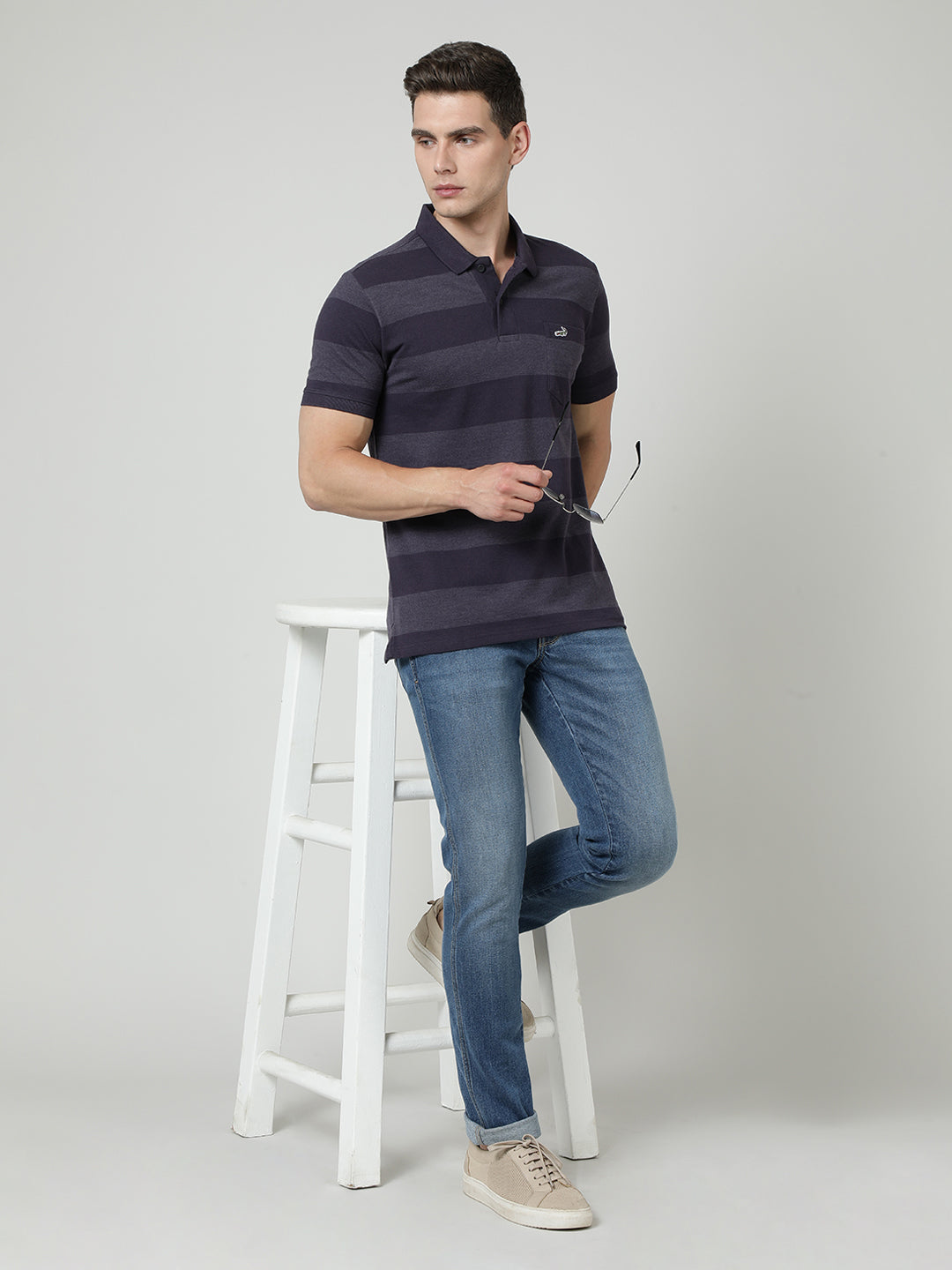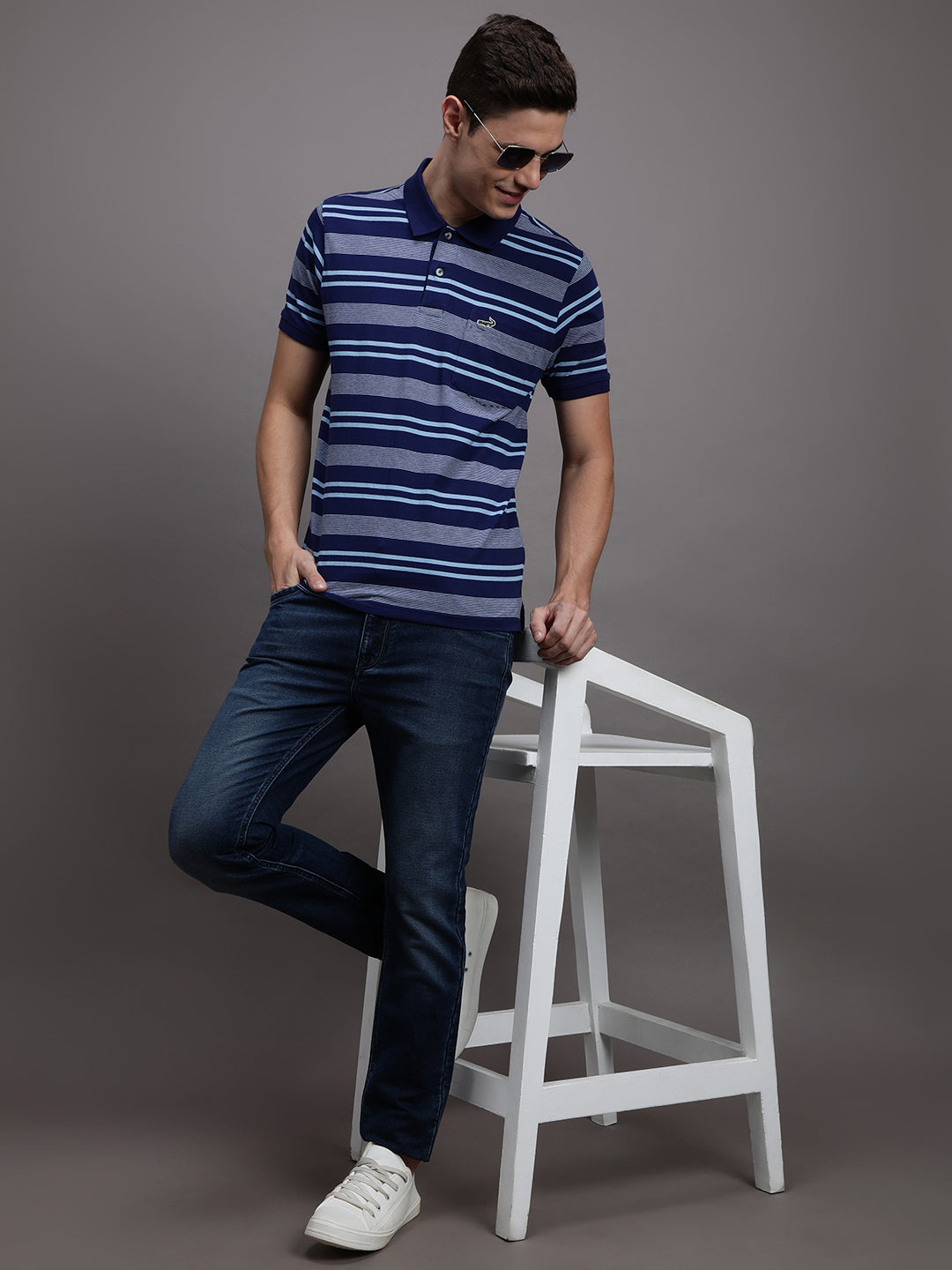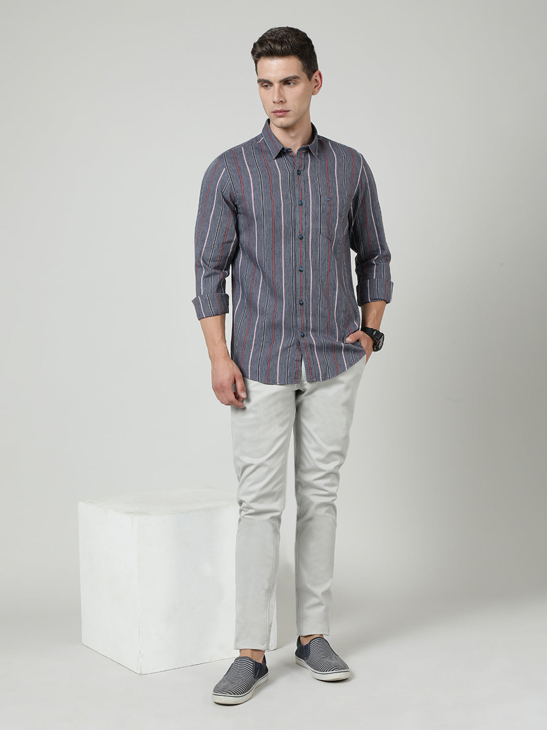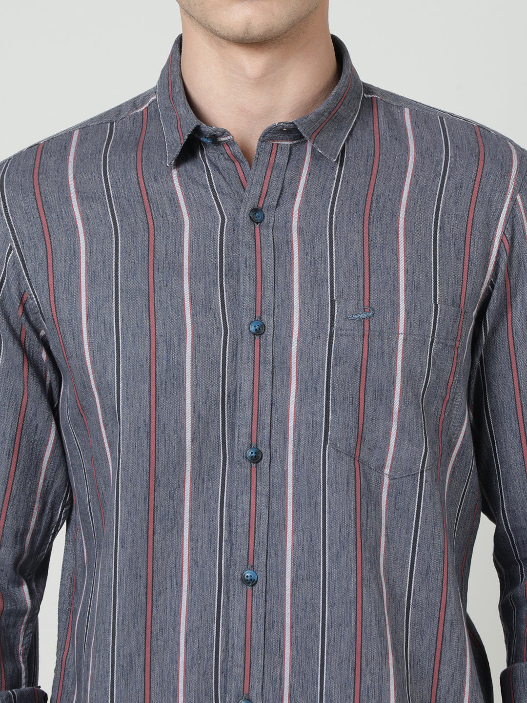 Navy Striped Full Sleeve 100% Cotton Shirt