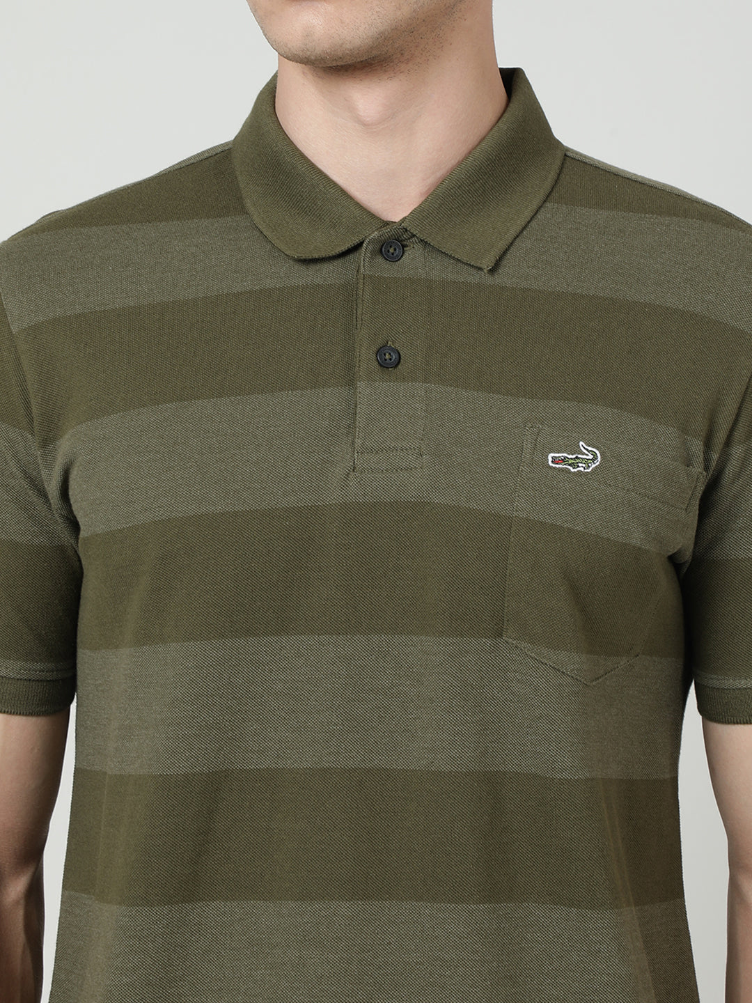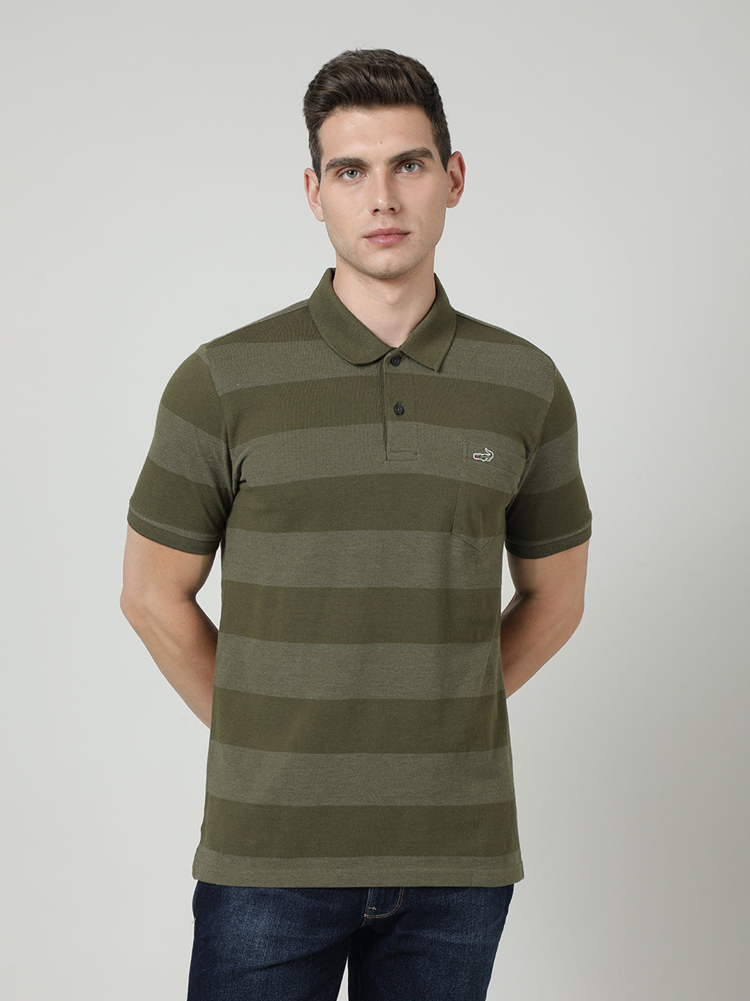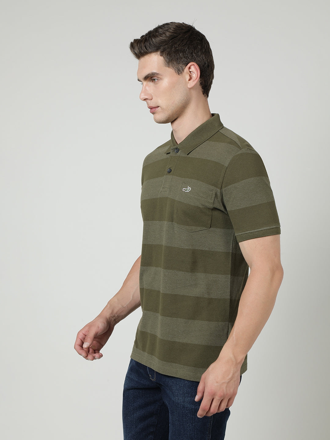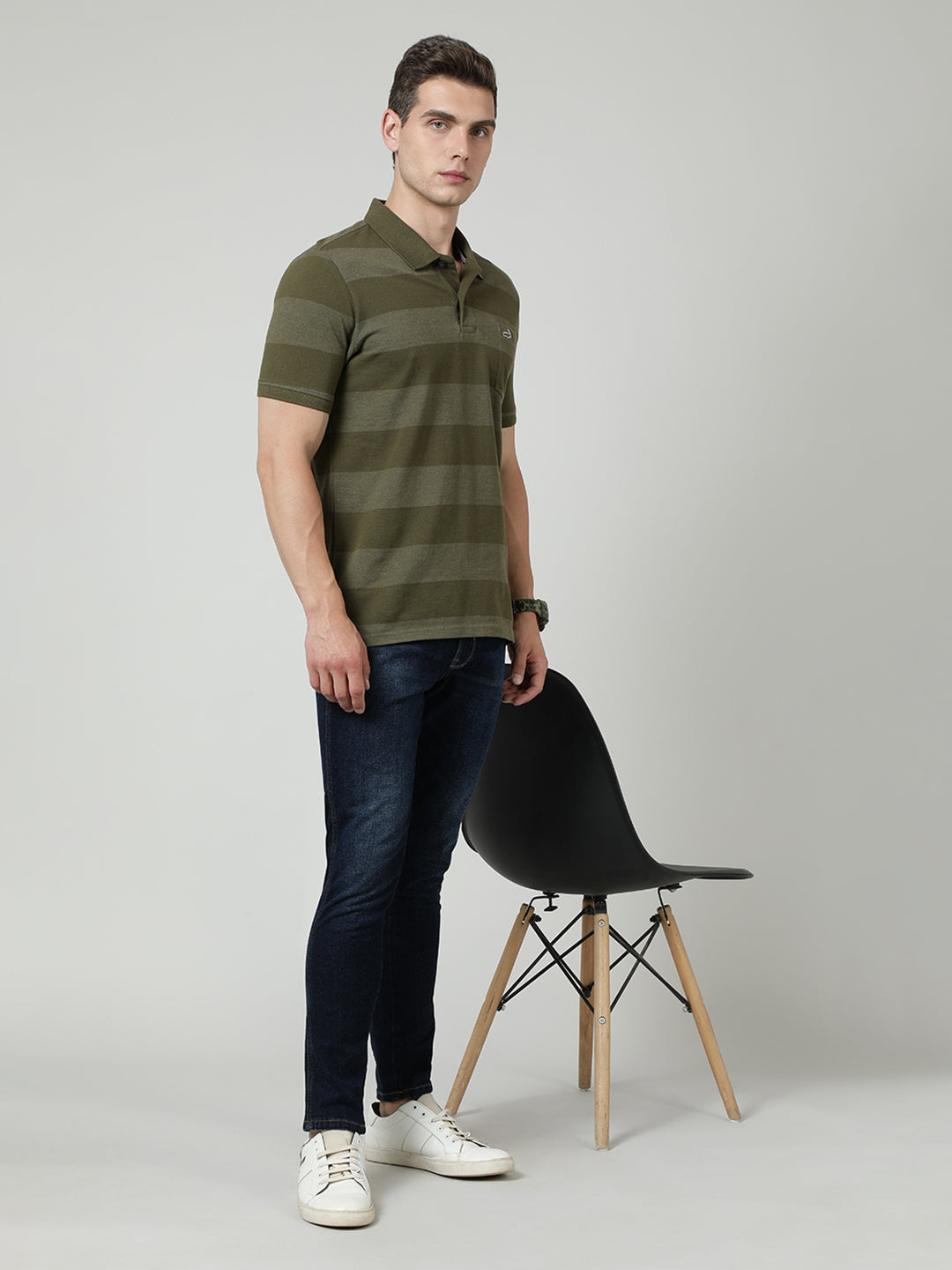 Olive Green Striped Full Sleeve 100% Cotton Shirt