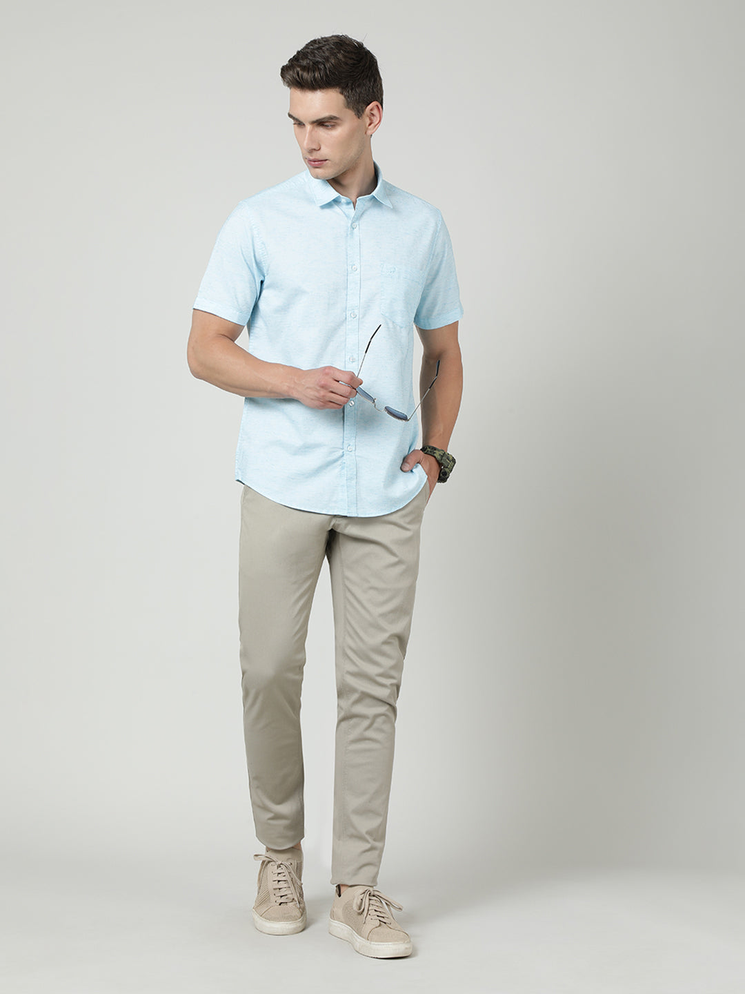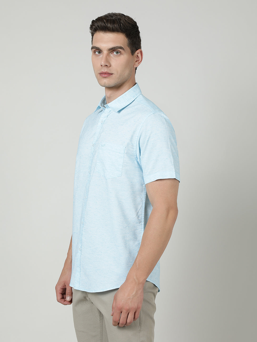 Teal Solid Half Sleeve 100% Cotton Shirt