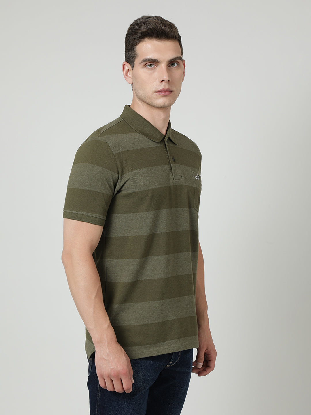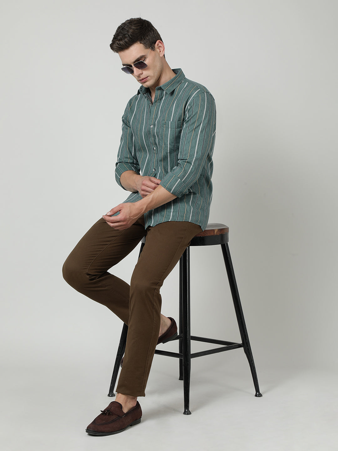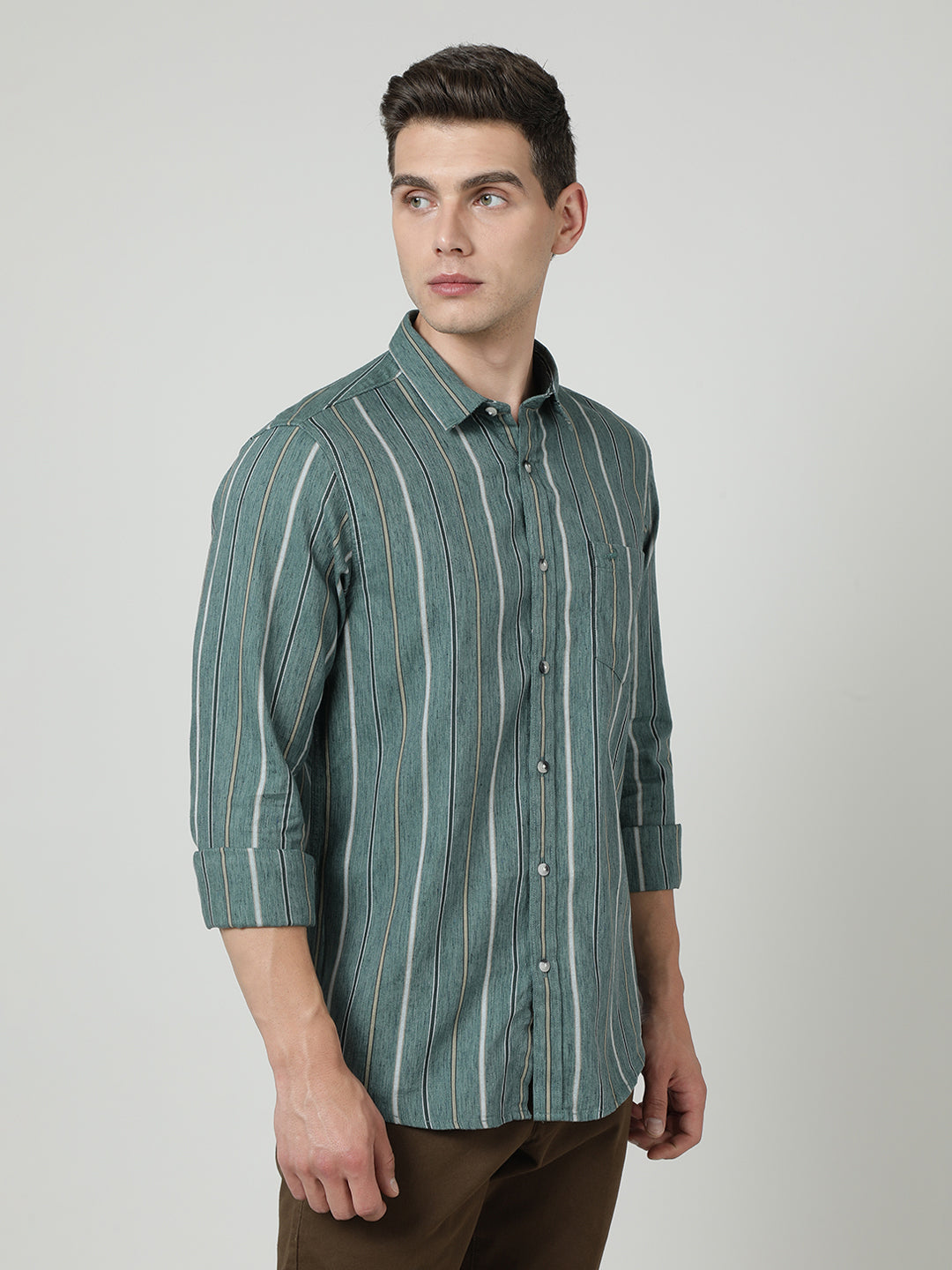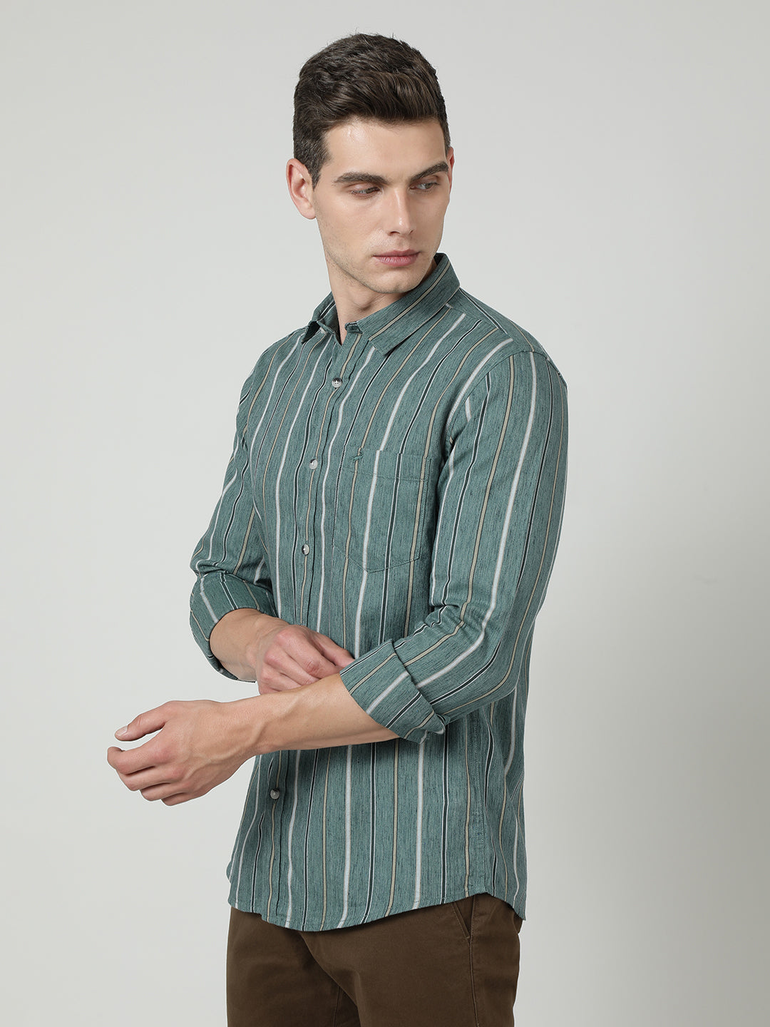 Moss Green Striped Full Sleeve 100% Cotton Shirt