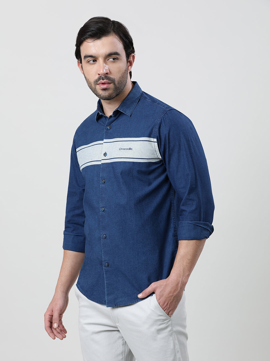 Printed Casual Full Sleeve 100% Cotton Navy Shirt