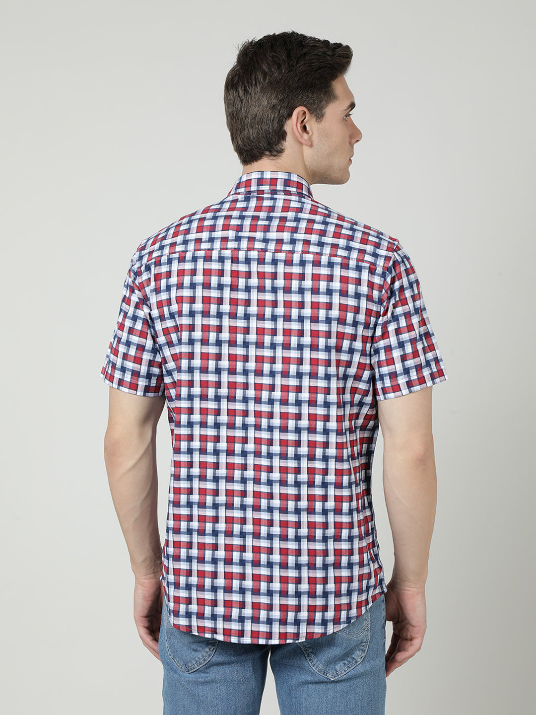 Maroon Printed Half Sleeve 100% Cotton Shirt