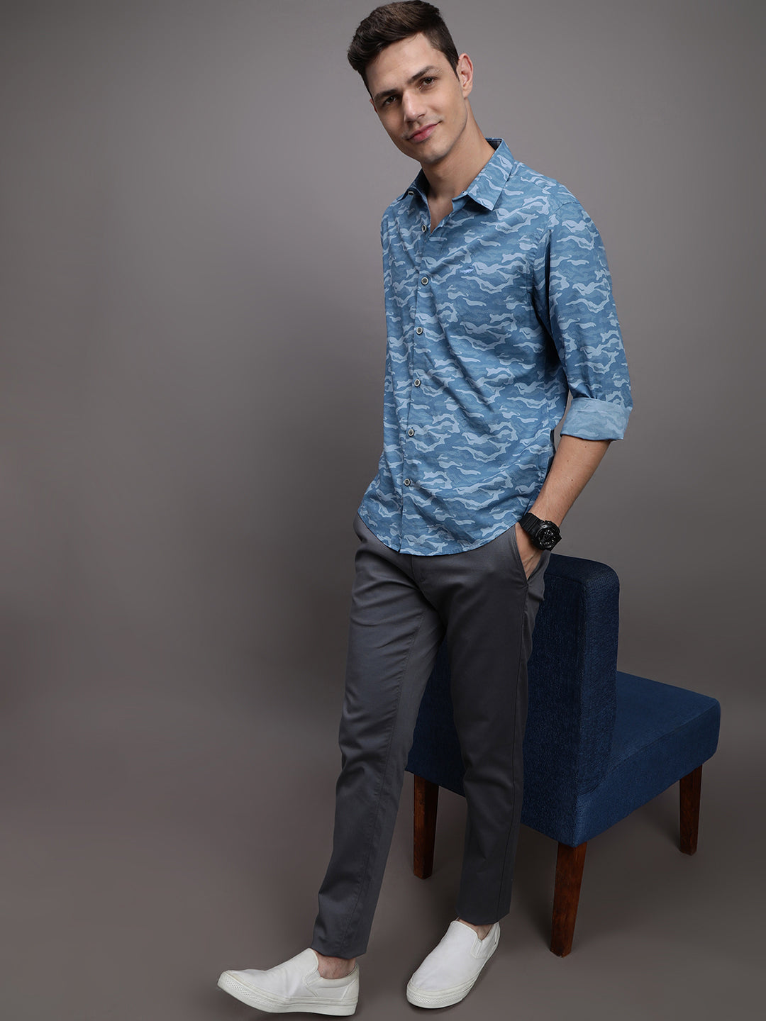 Casual Grey Printed Full Sleeve 100% Cotton Shirt