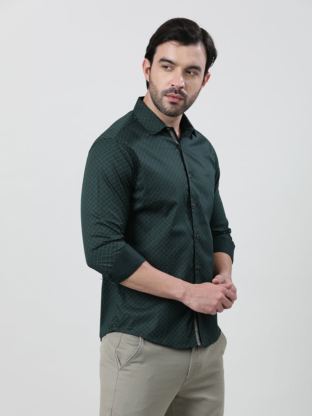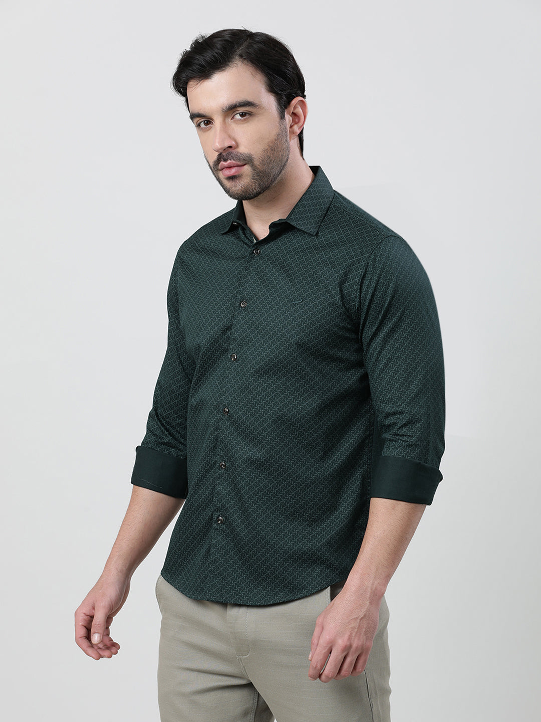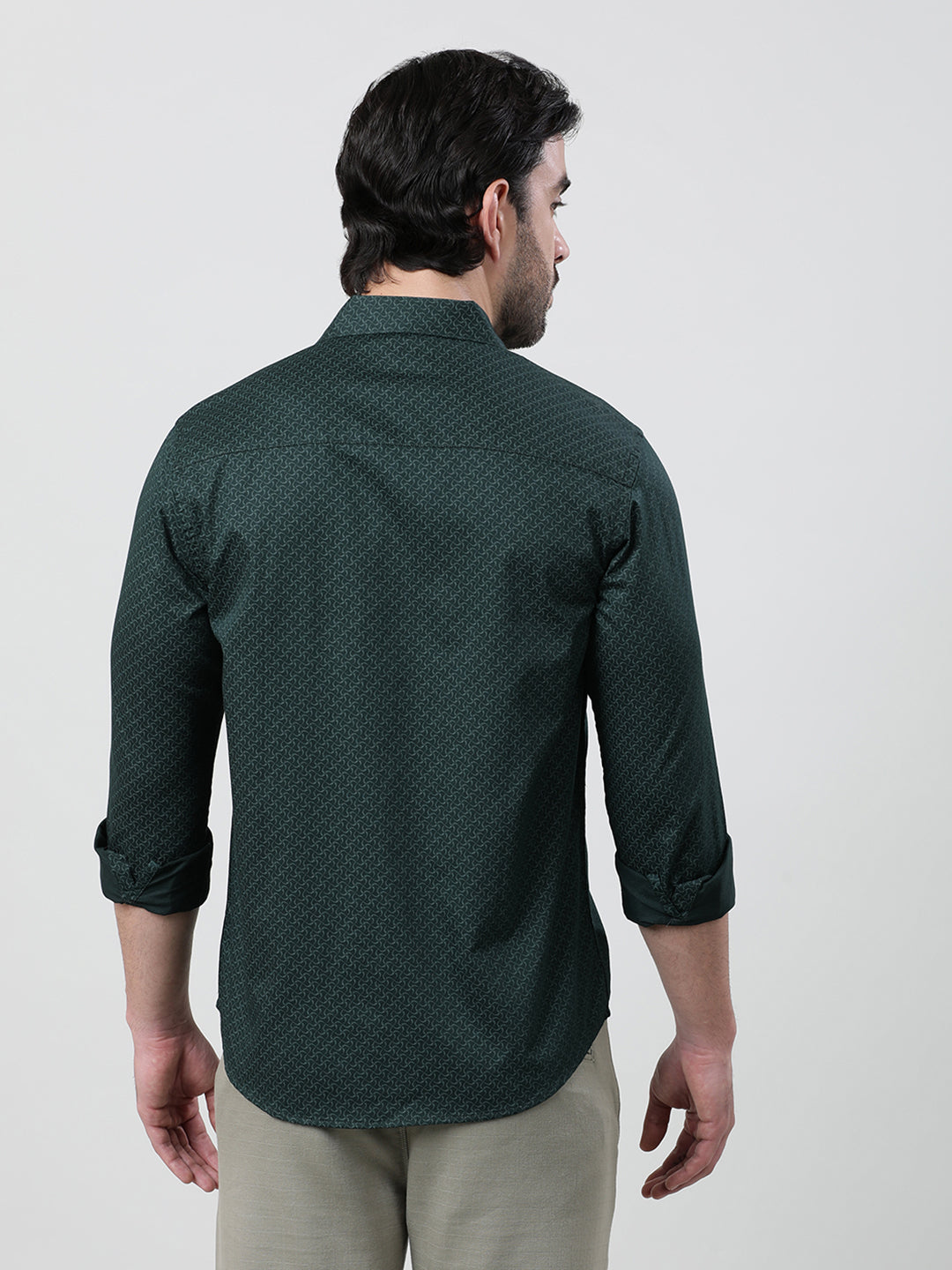 Printed Green Full Sleeve 100% Cotton Casual Shirt