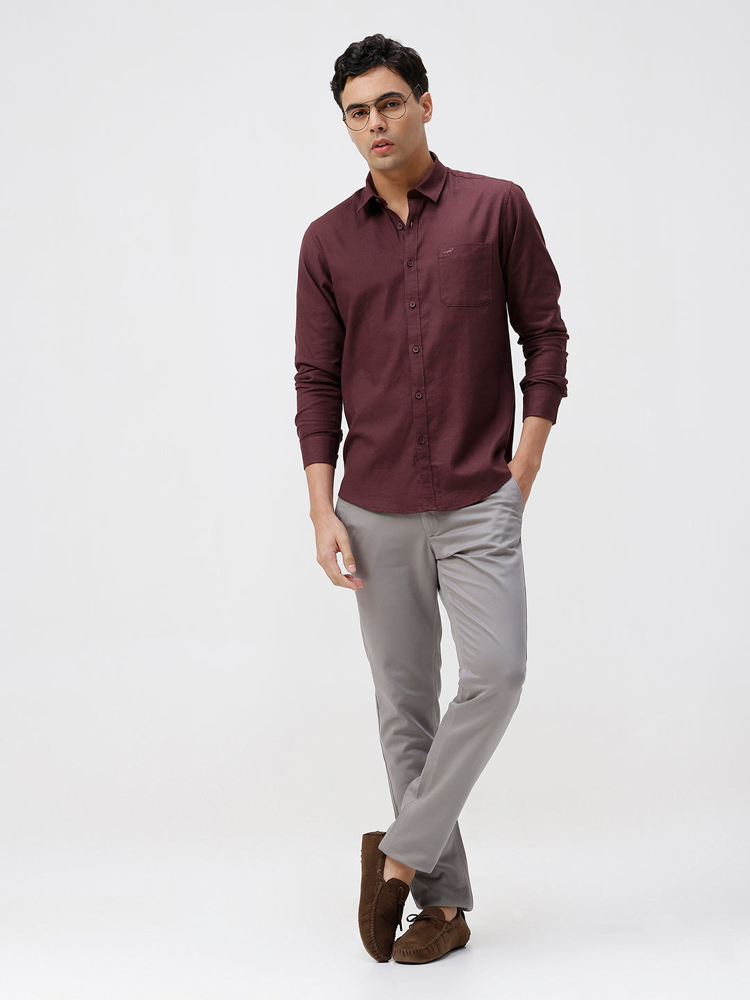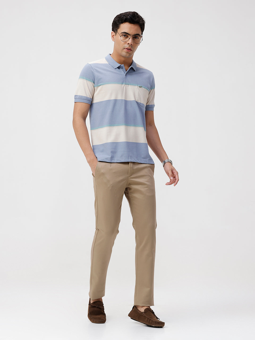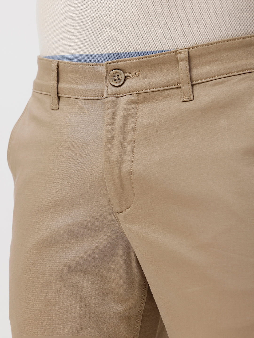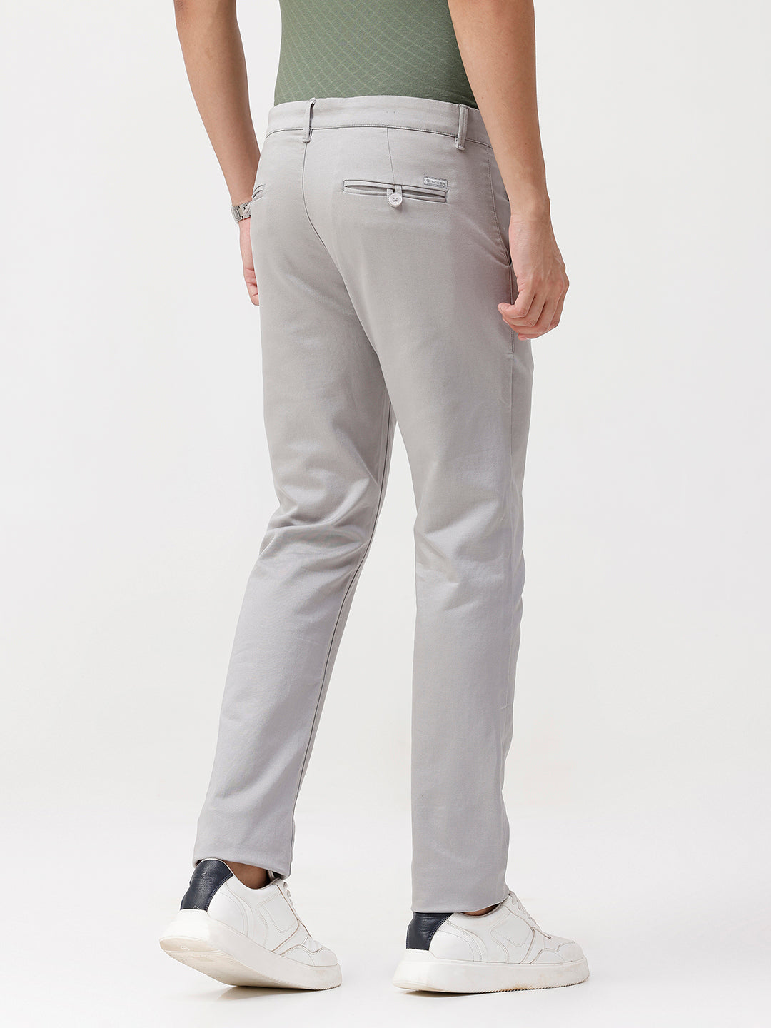 Beige Classic Chambray Fabric Tri-Blend Stitch Detailings Slim Fit Trousers