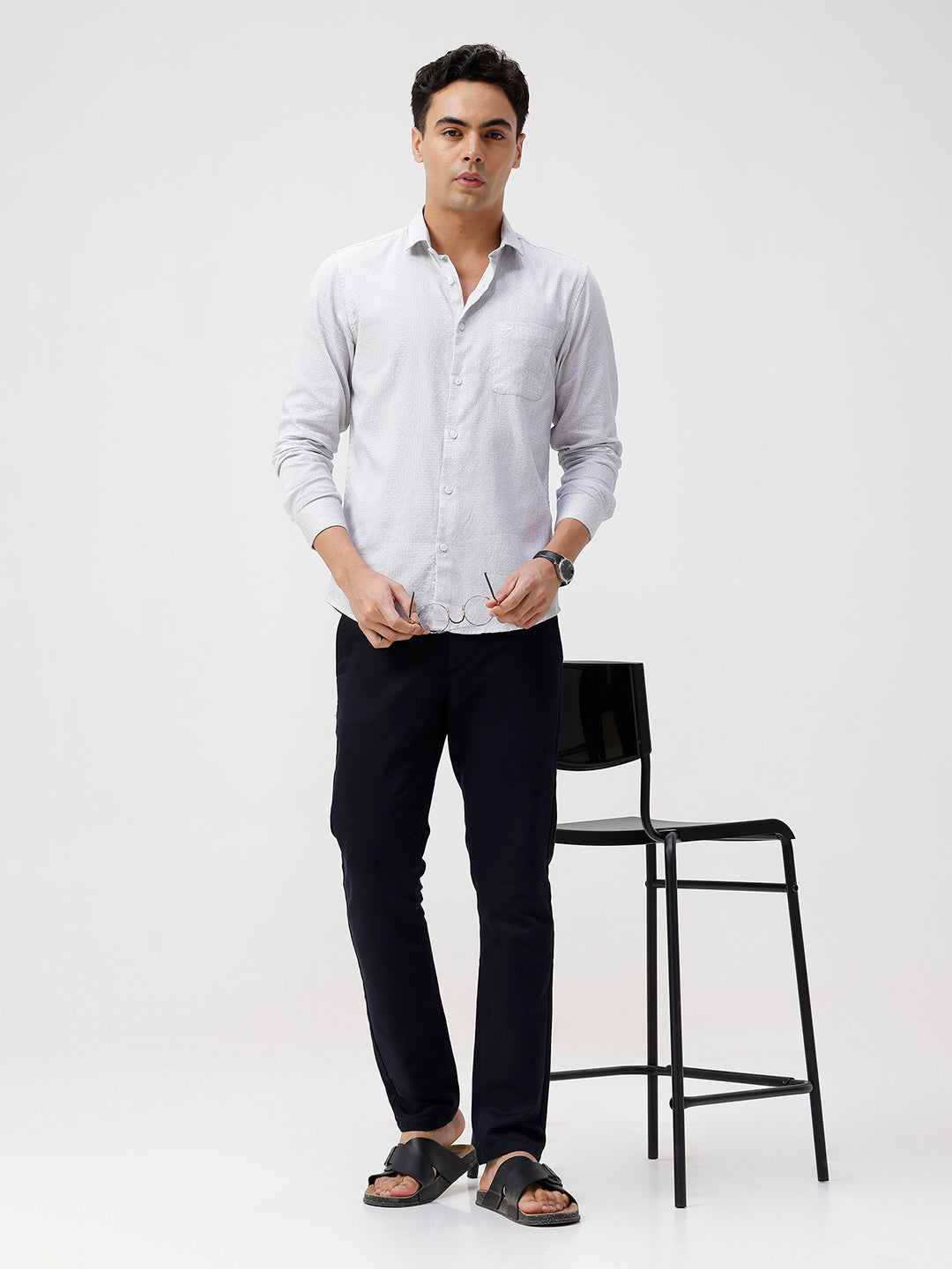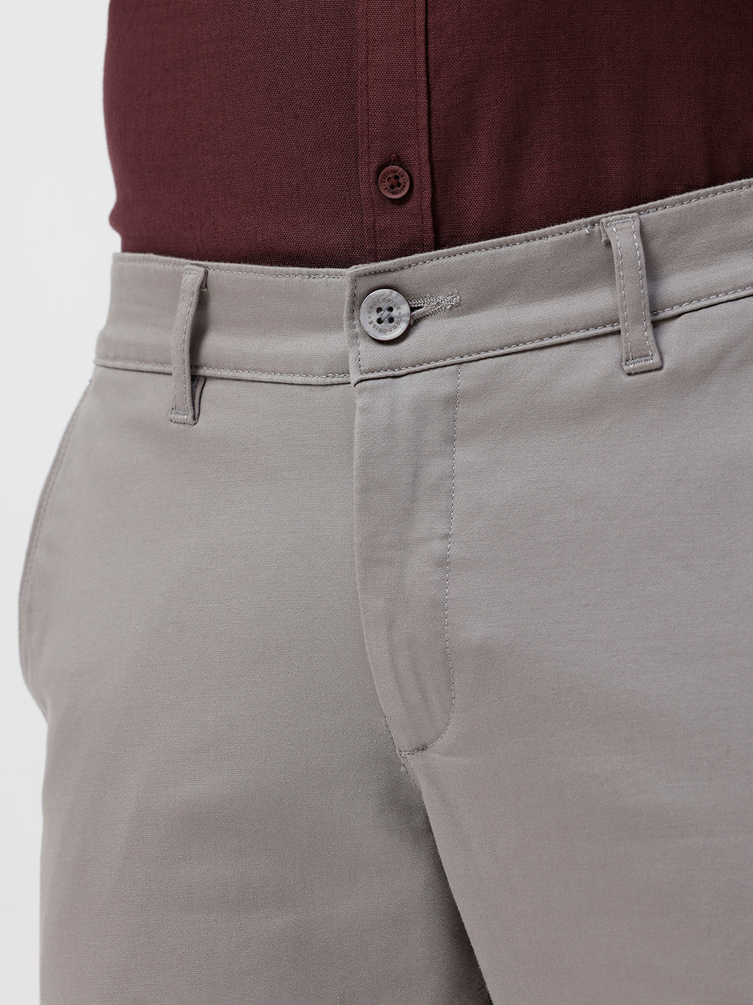 Grey Classic Styling Slub Texture Cotton Spandex Fabric Slim Fit Trousers