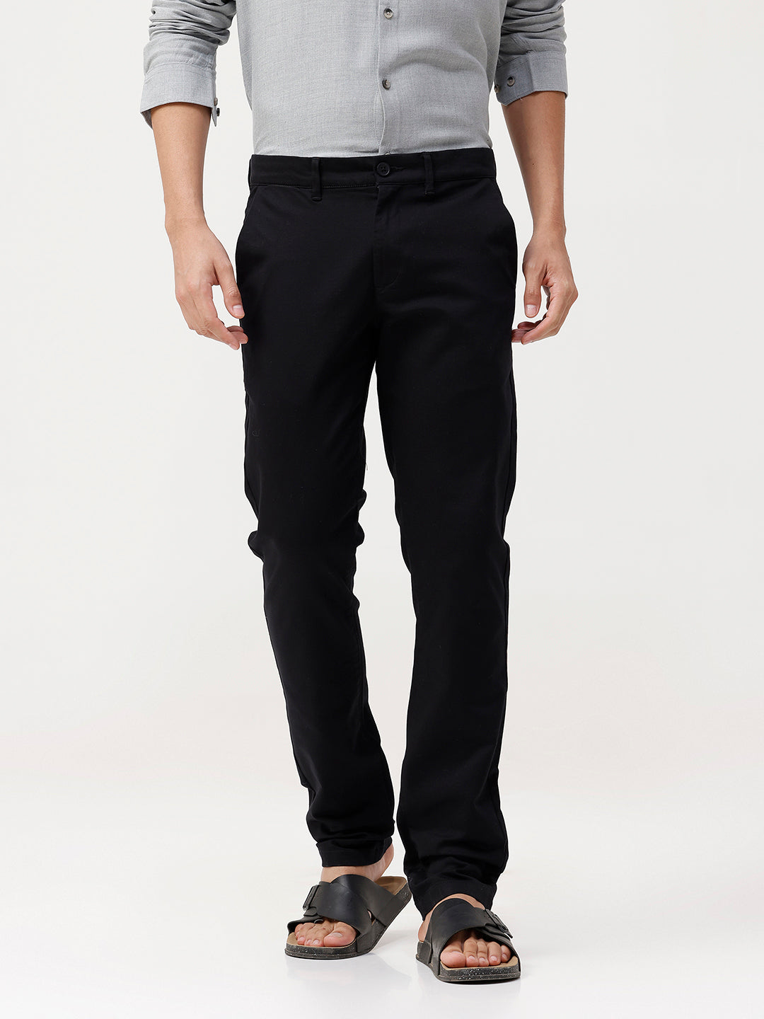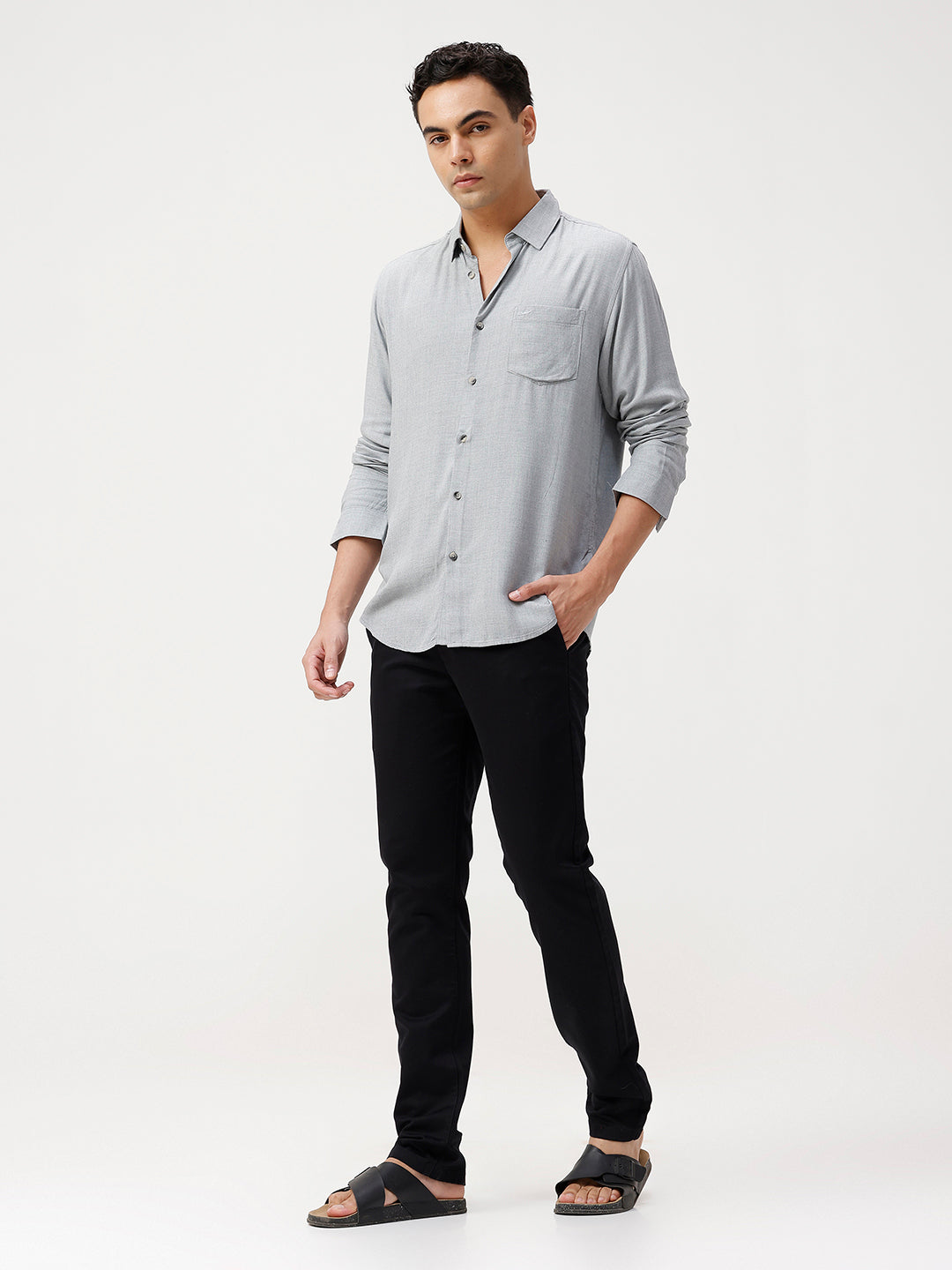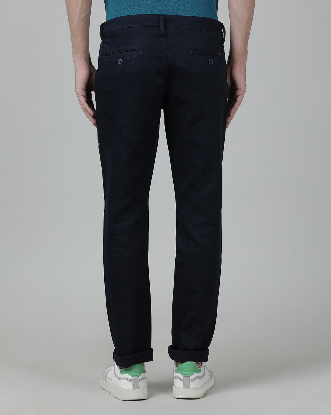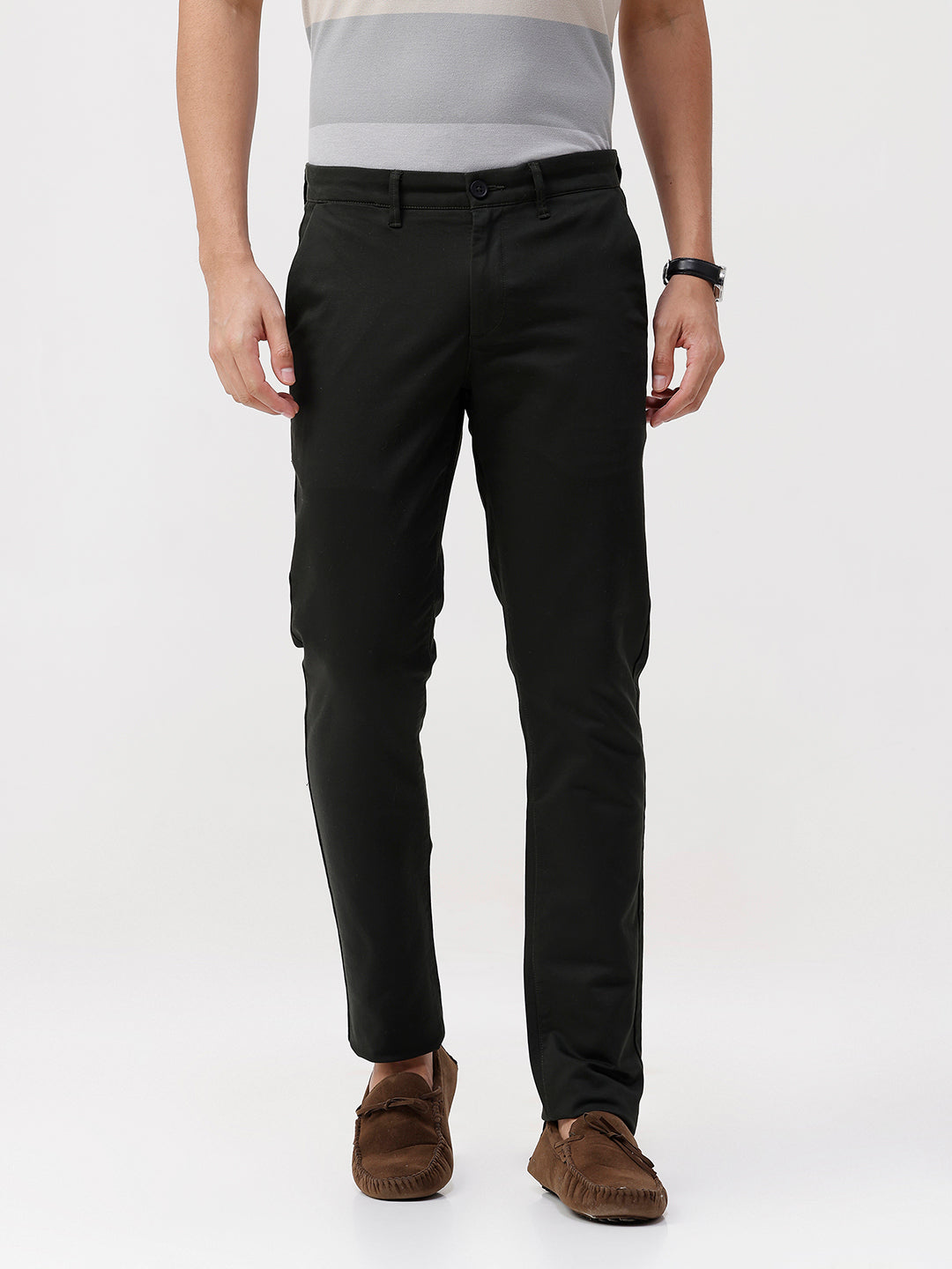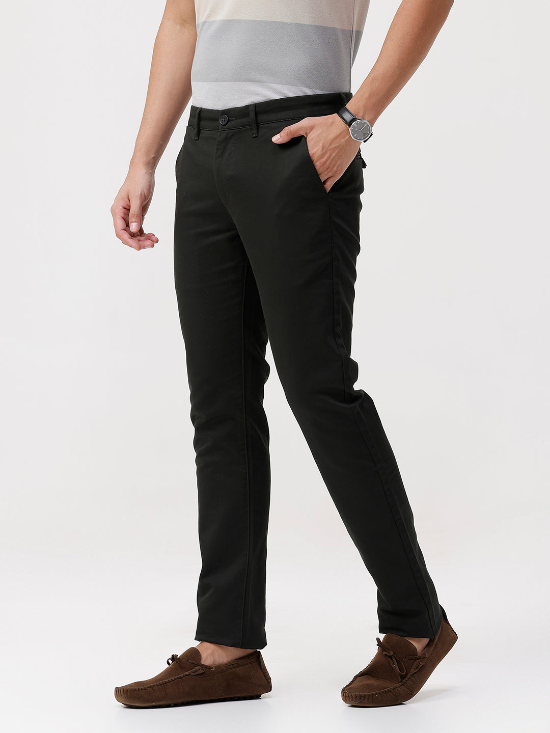 Green Classic Chambray Fabric Tri-Blend Stitch Detailings Slim Fit Trousers