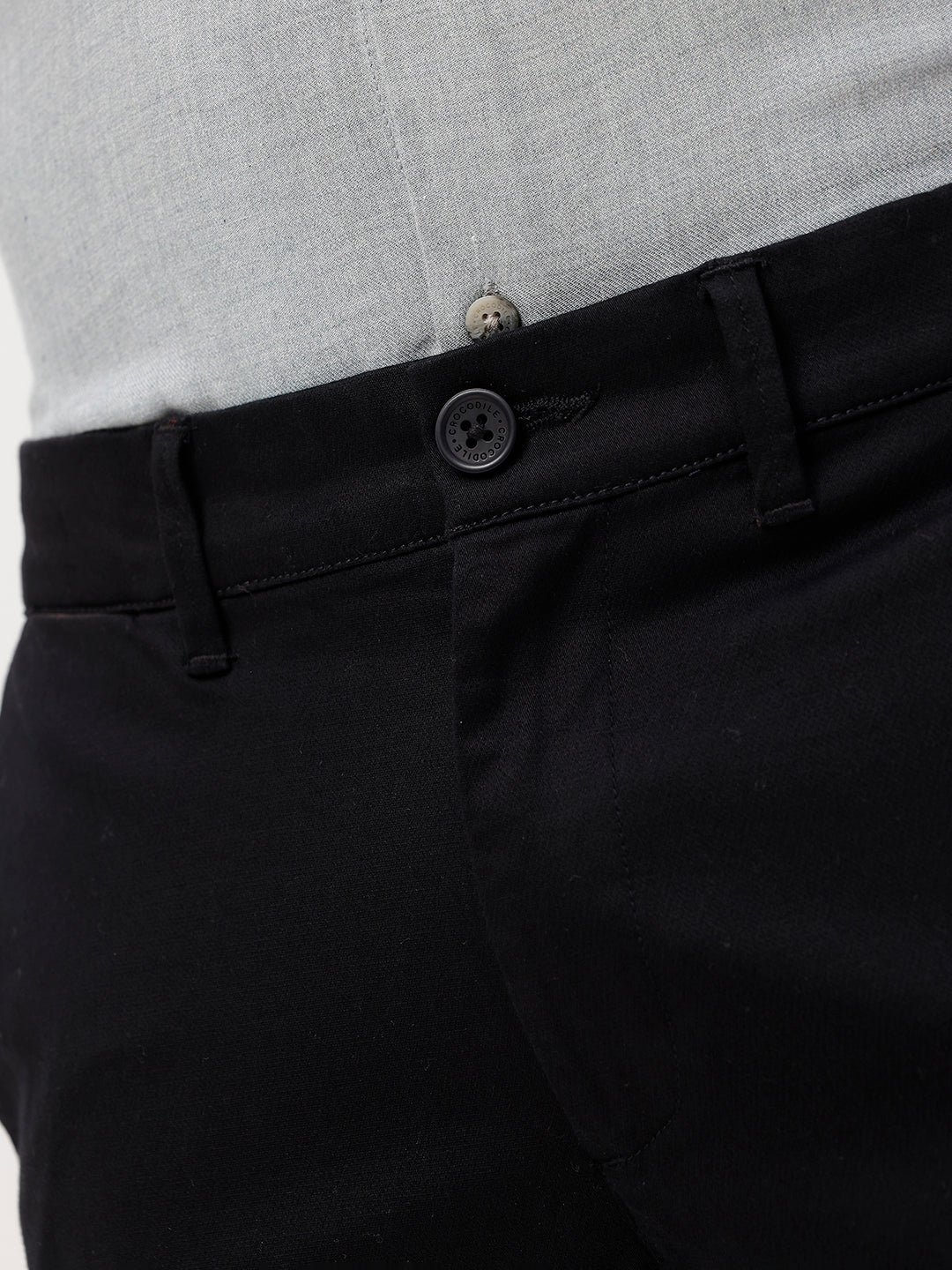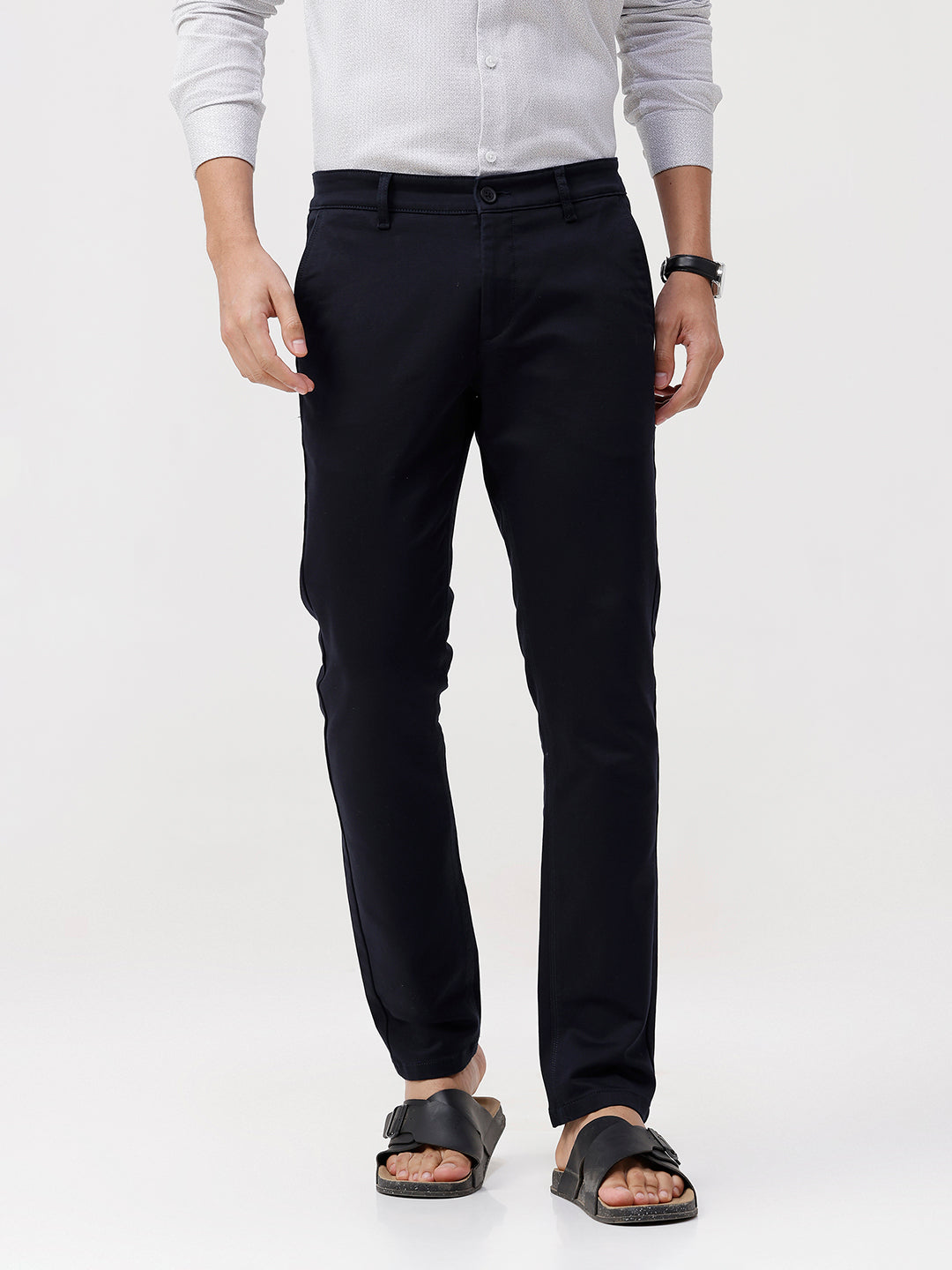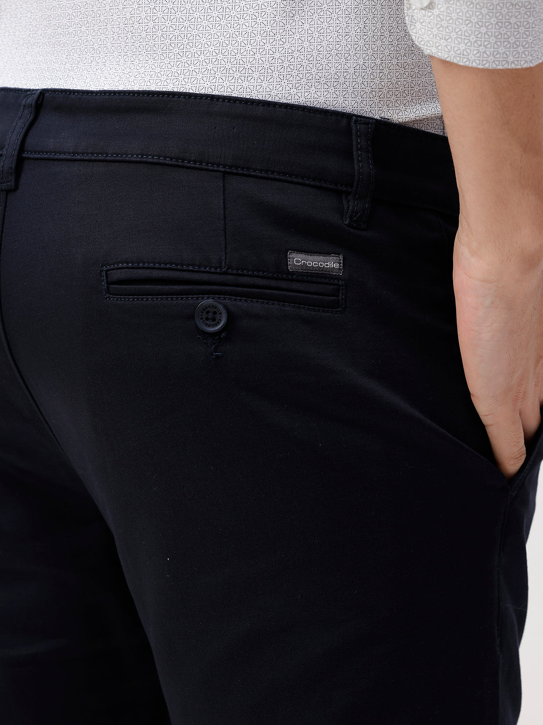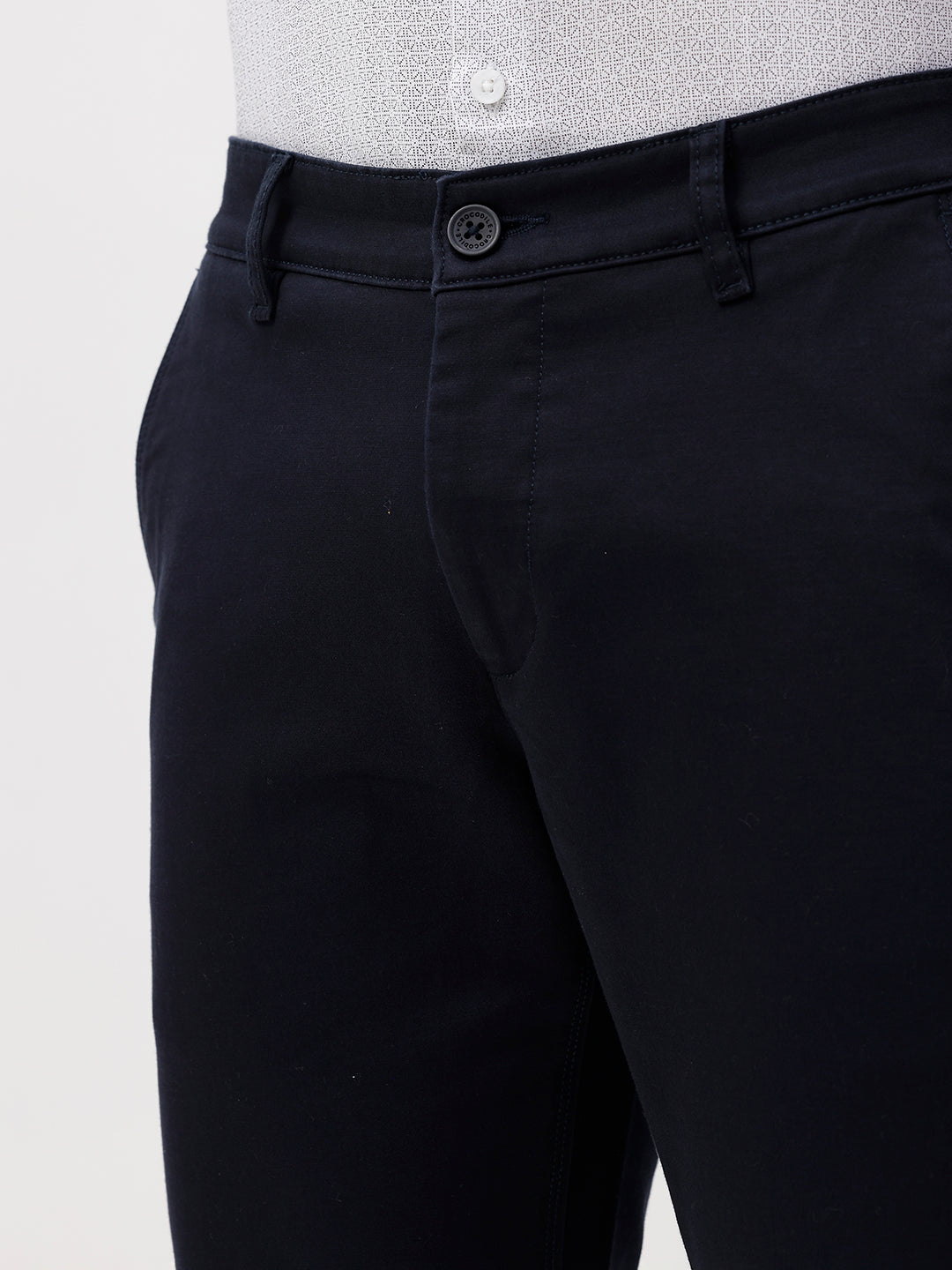 Navy Premium Textured Fabric Stretch Contrast Tape Detailing Slim Fit Trousers
