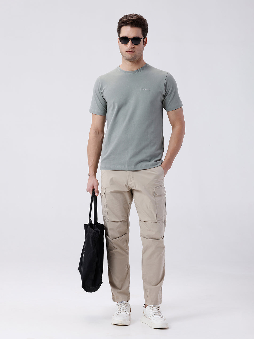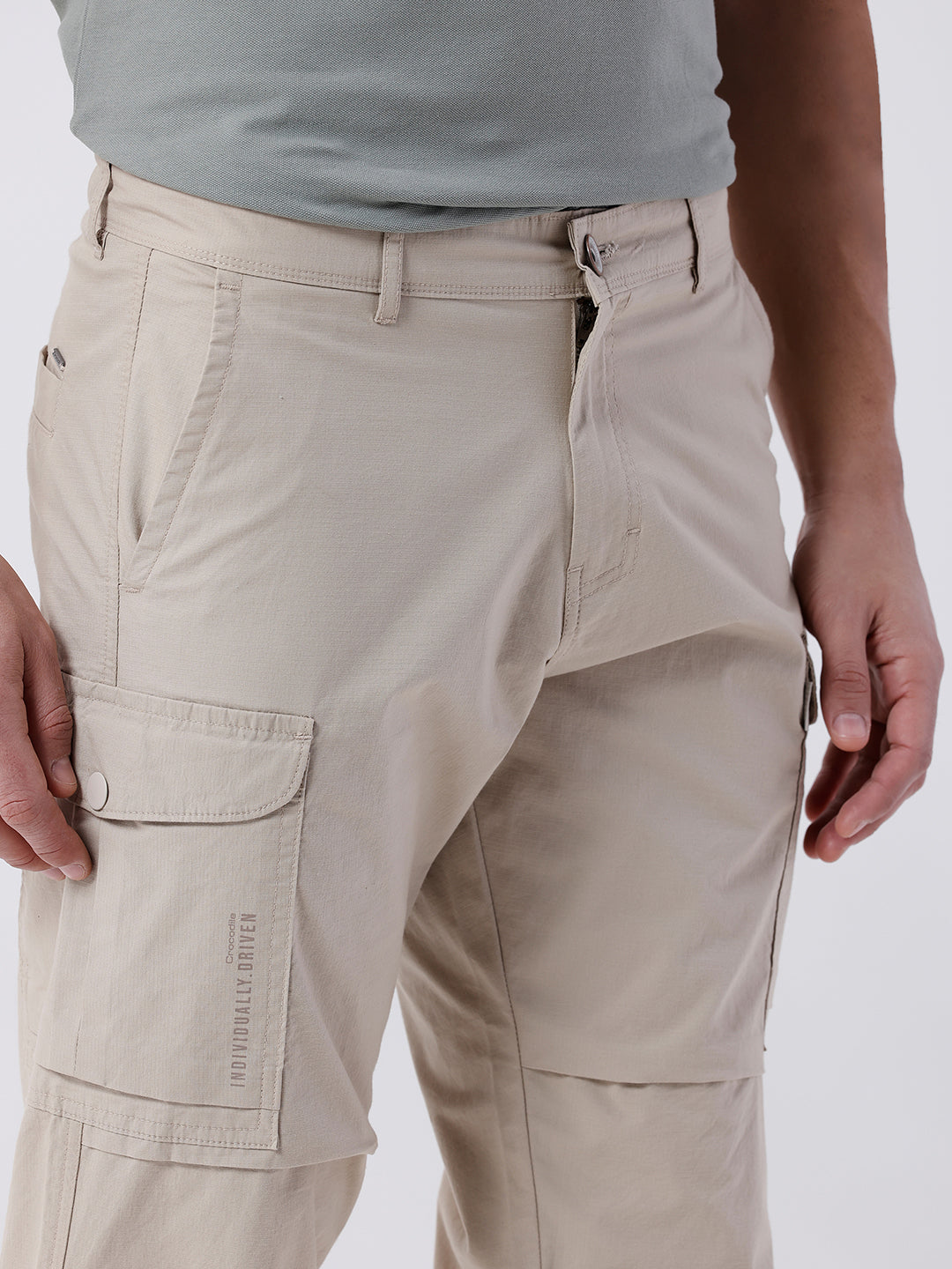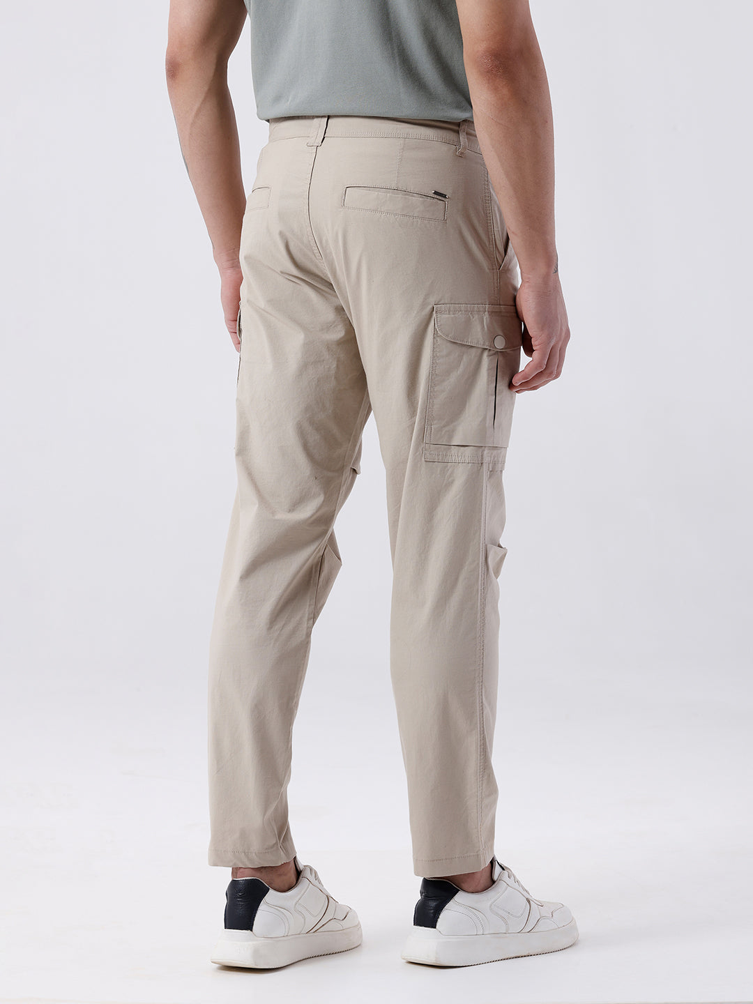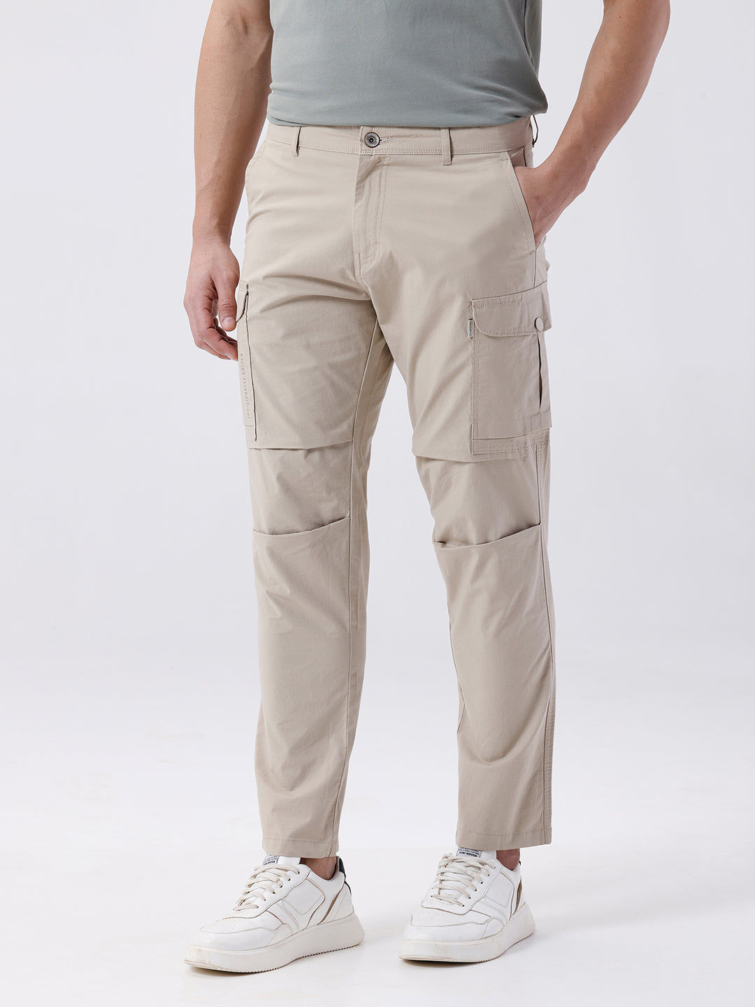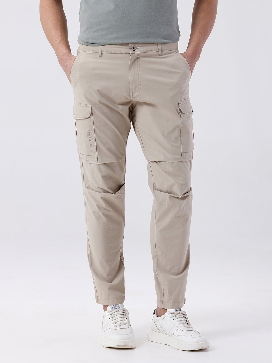 This cargo pant is made for everyday comfort. It has a cargo fit silhouette. It carries a solid look. The colour is beige. Key detail 98% cotton  2%lycra