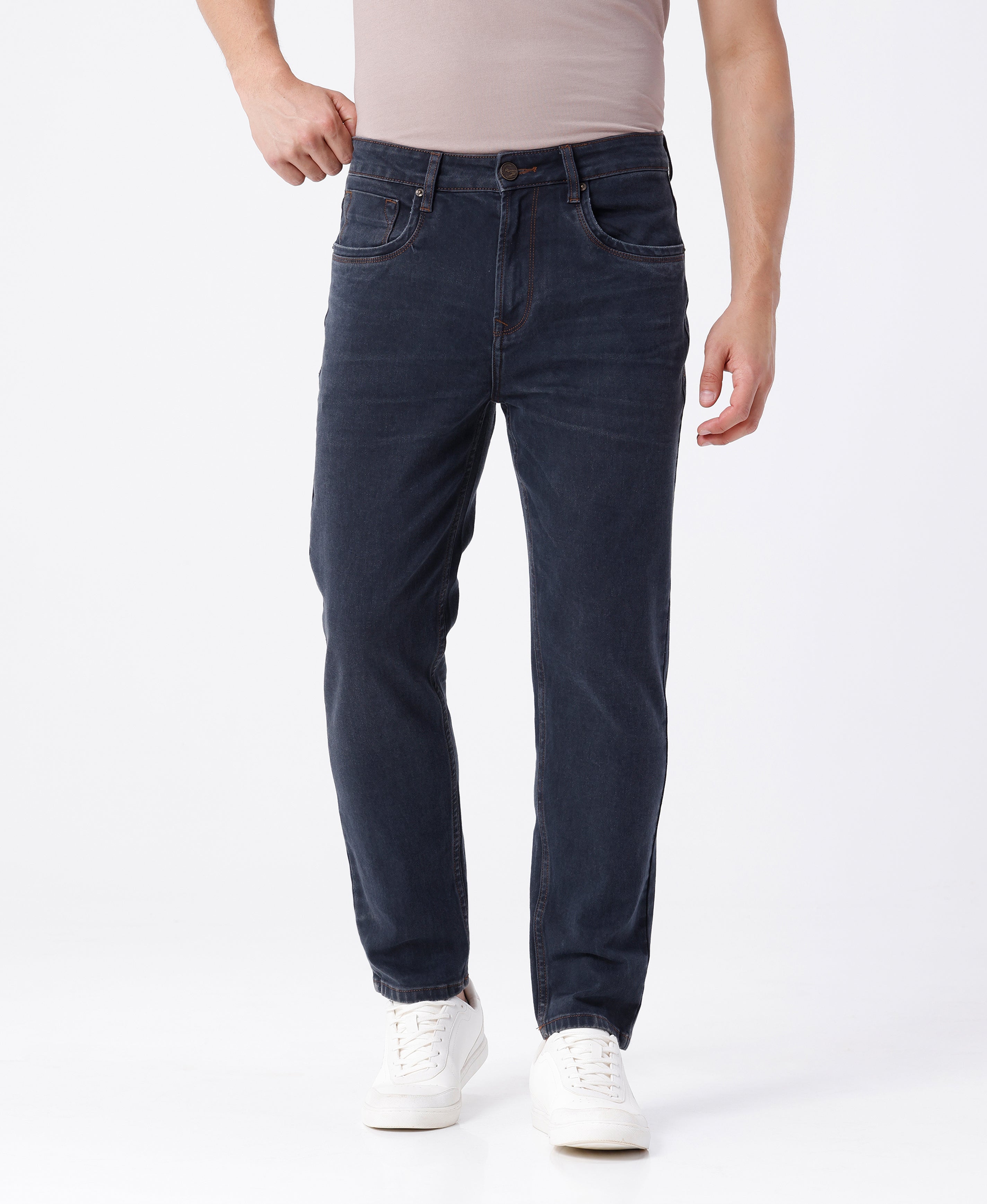 Blue Grey Natural Fade Wash Rugged Jeans