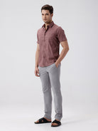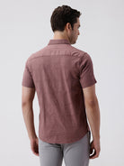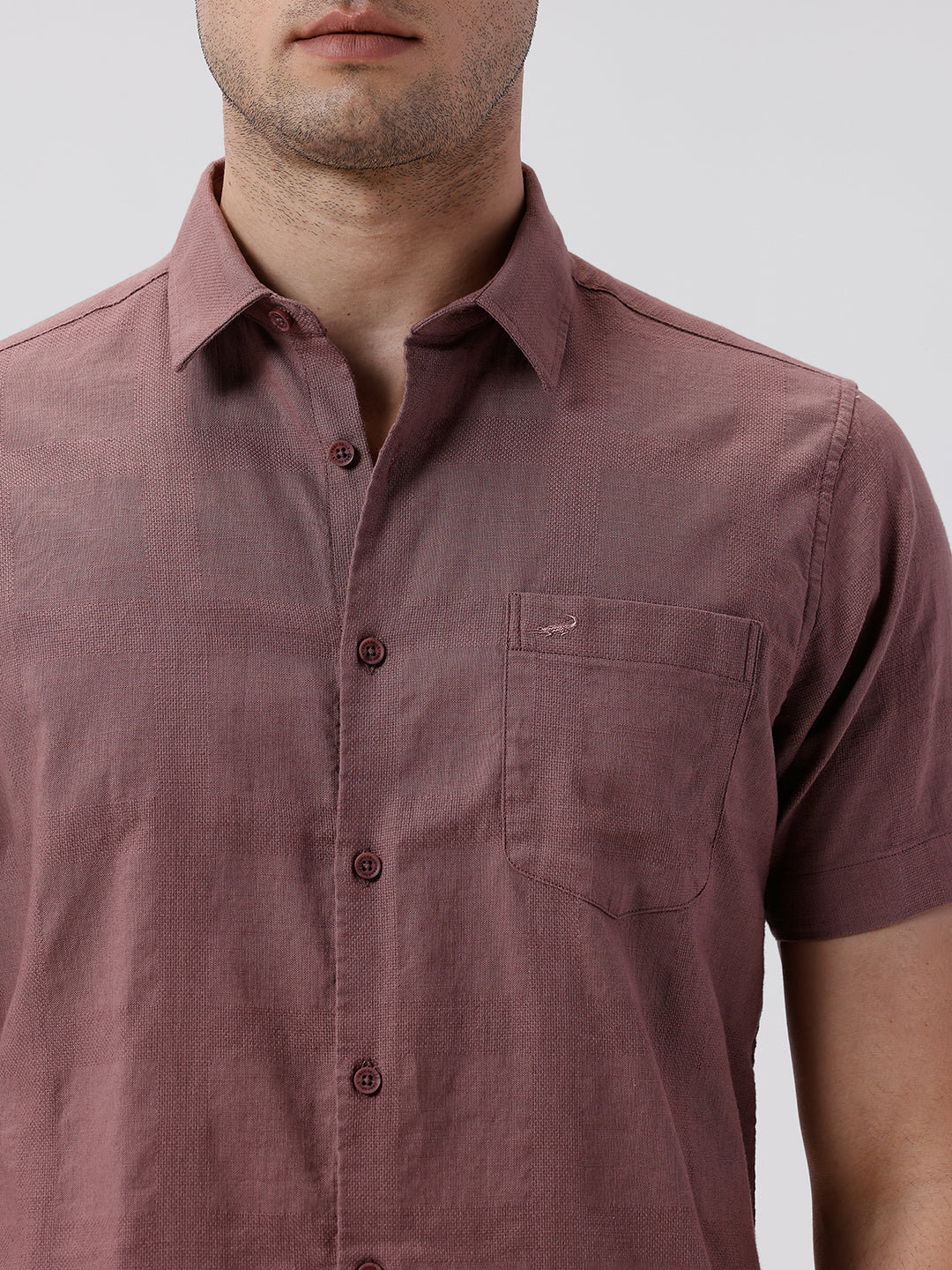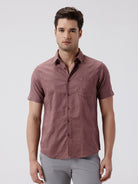 Self Textured Checks Shirt Dark Peach