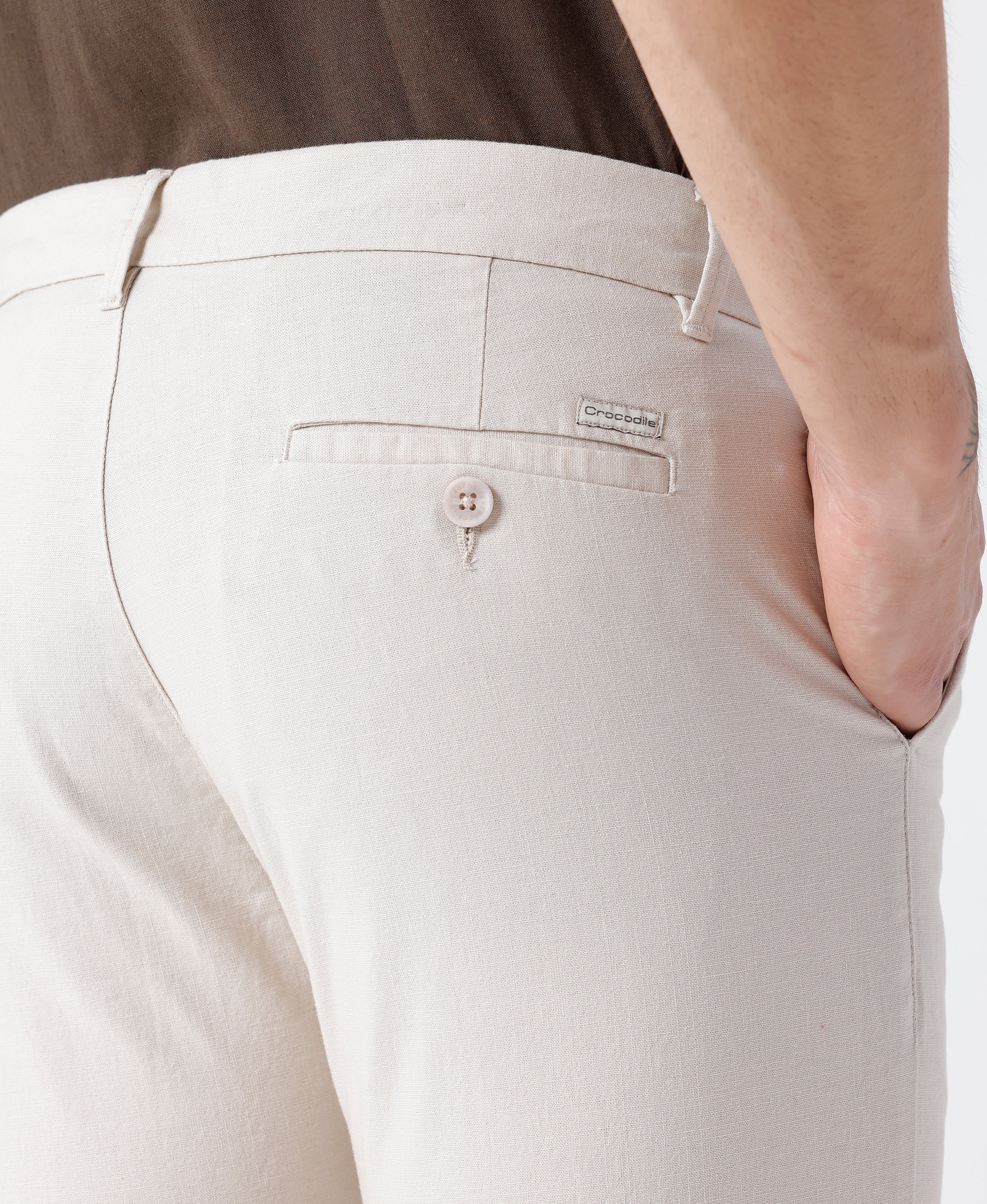 Trouser Light Beige Slim Fit Solid