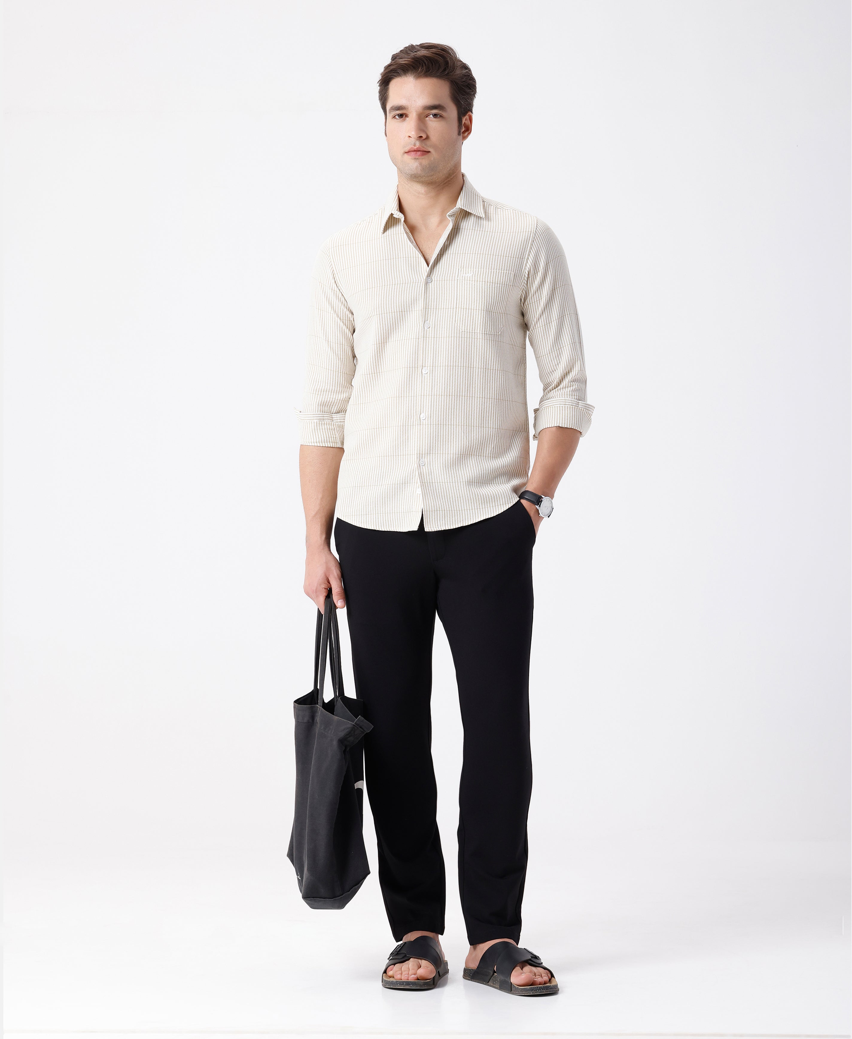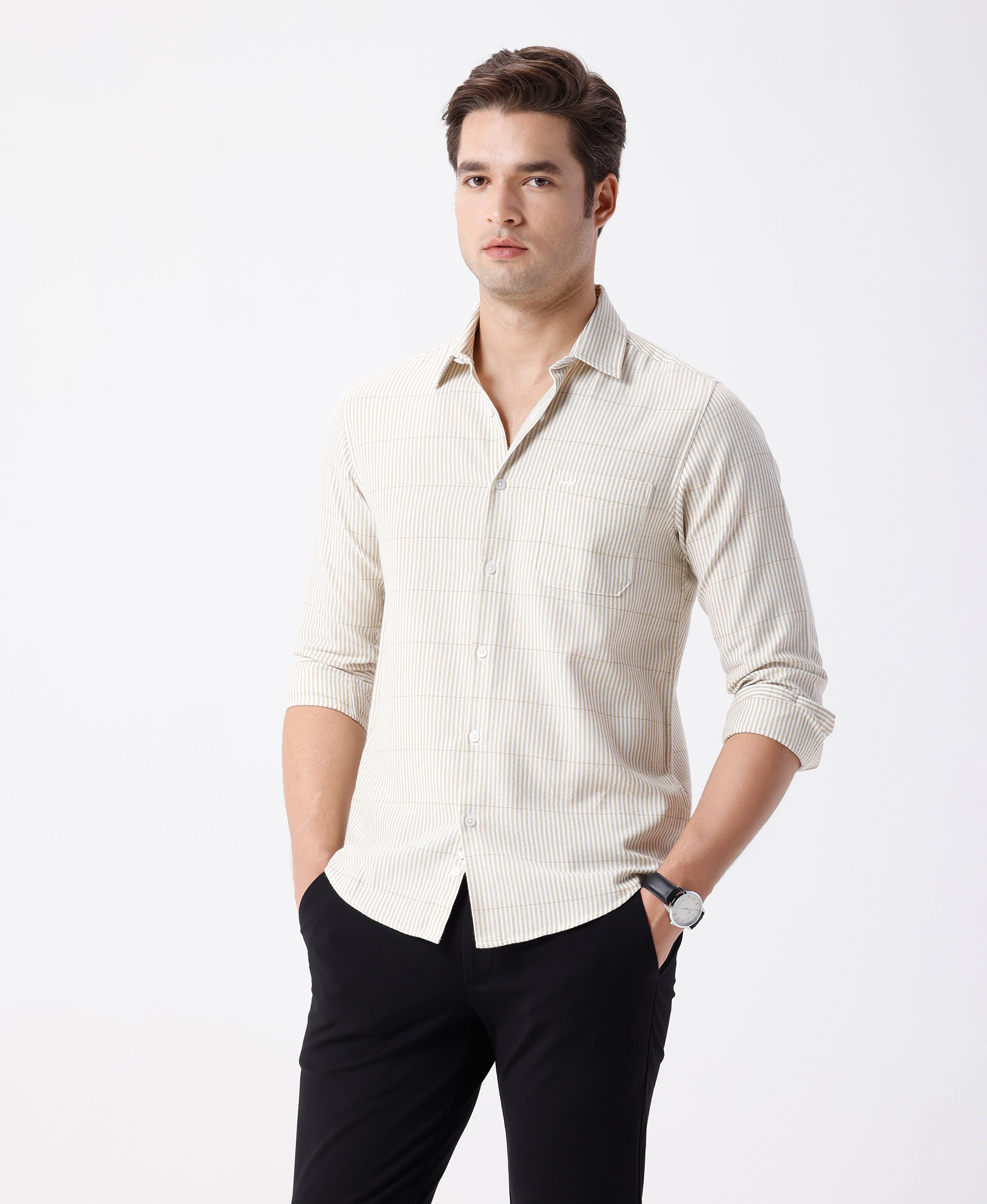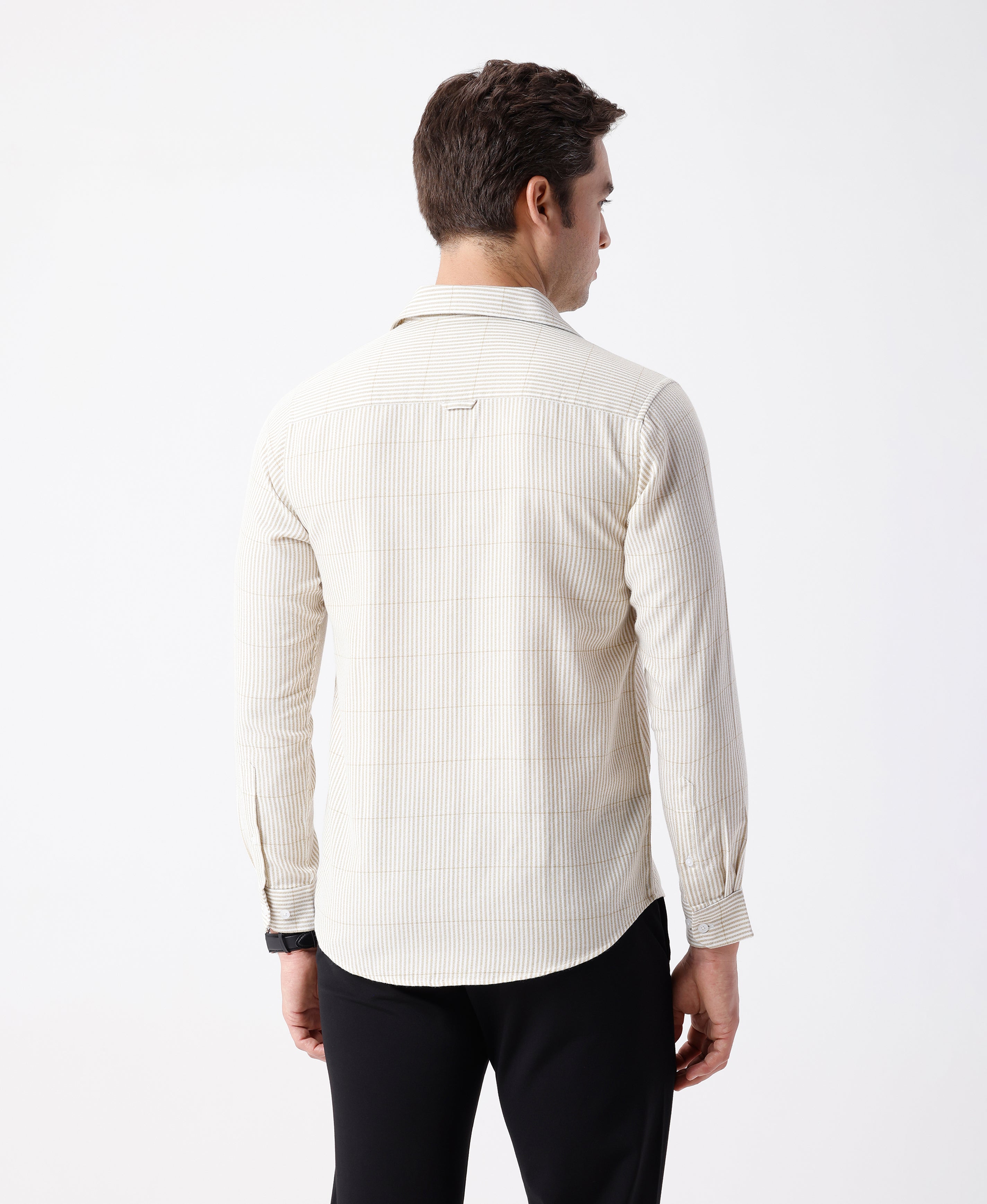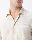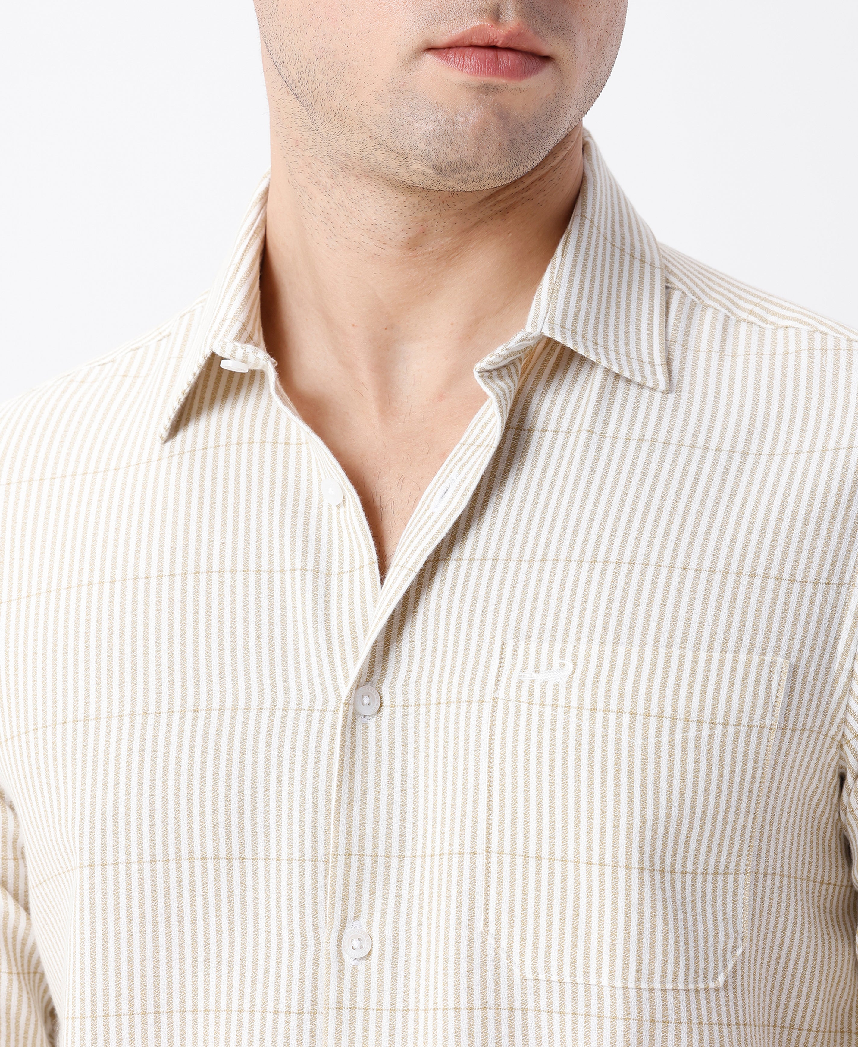 Crepe Texture Stripe Shirt Olive