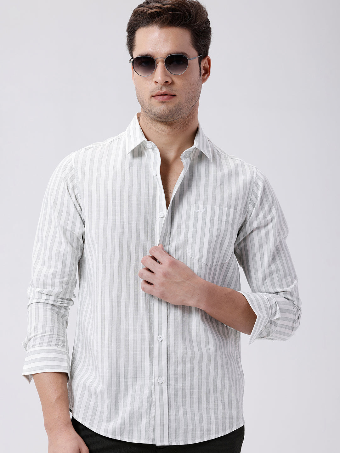 Stripe Textured Pure Cotton Shirt Green