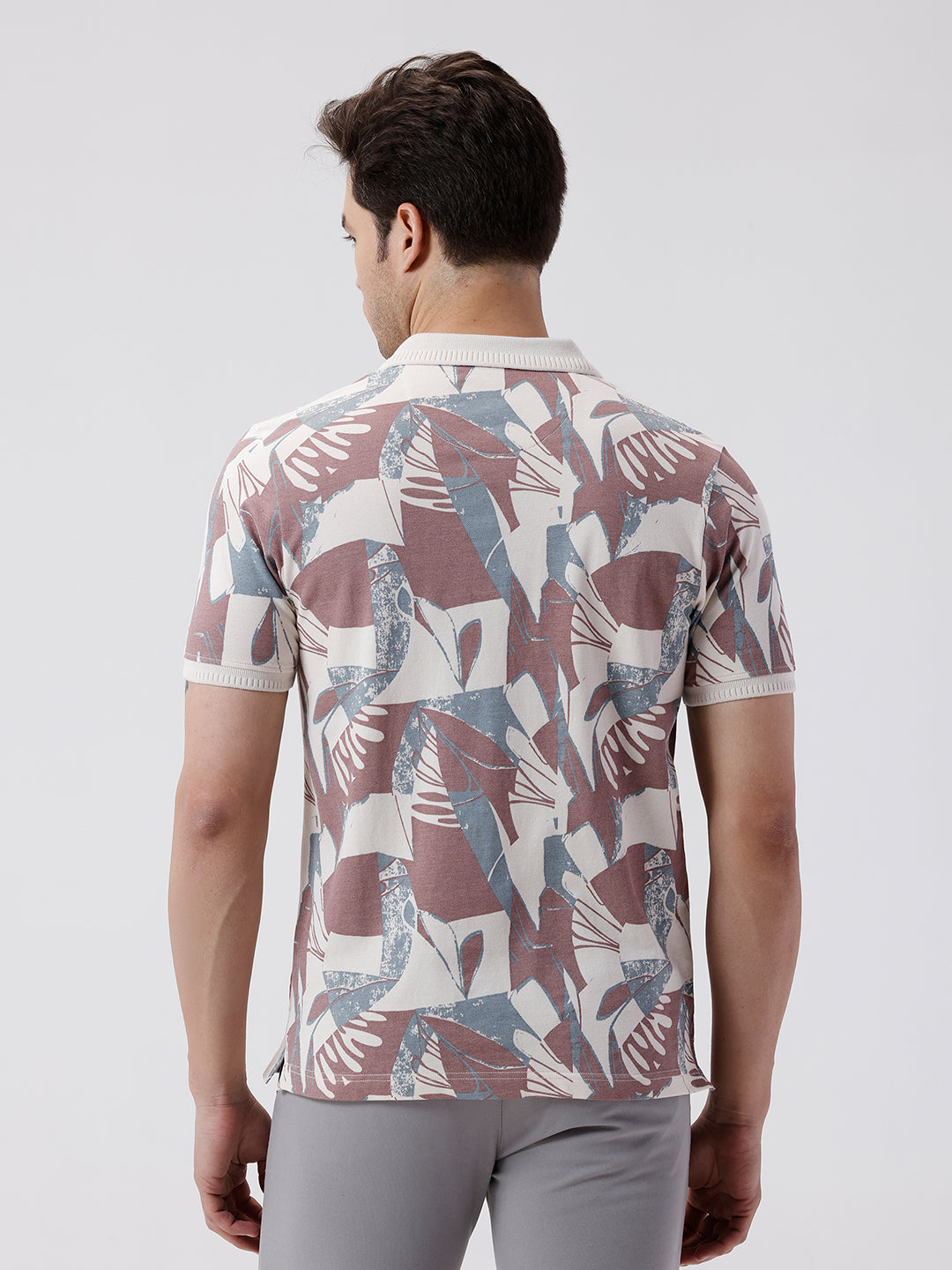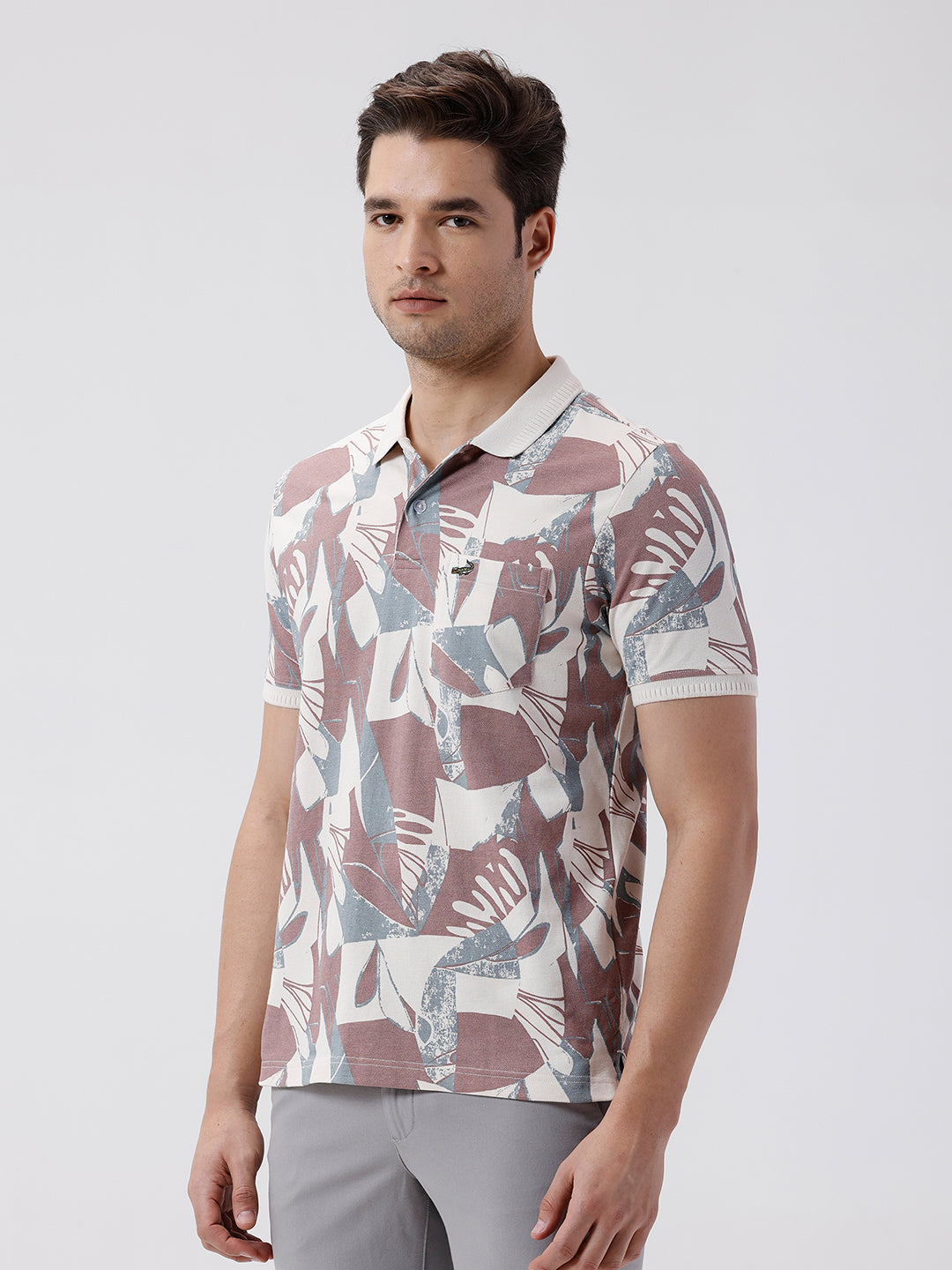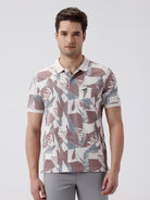Tropical Abstract All Over Printed Polo T-Shirt Cream
