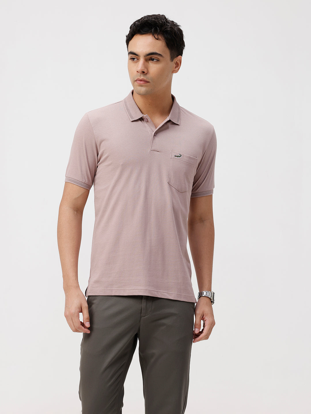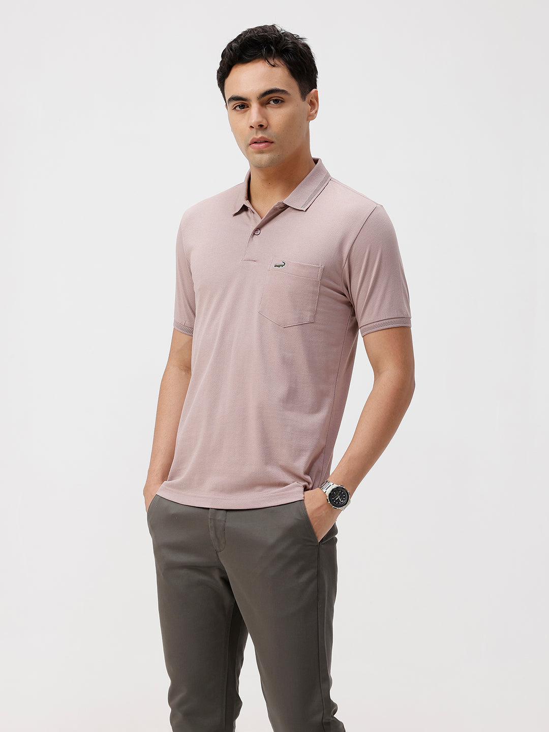Self Structure Solid Polo T-Shirt Dusky Pink
