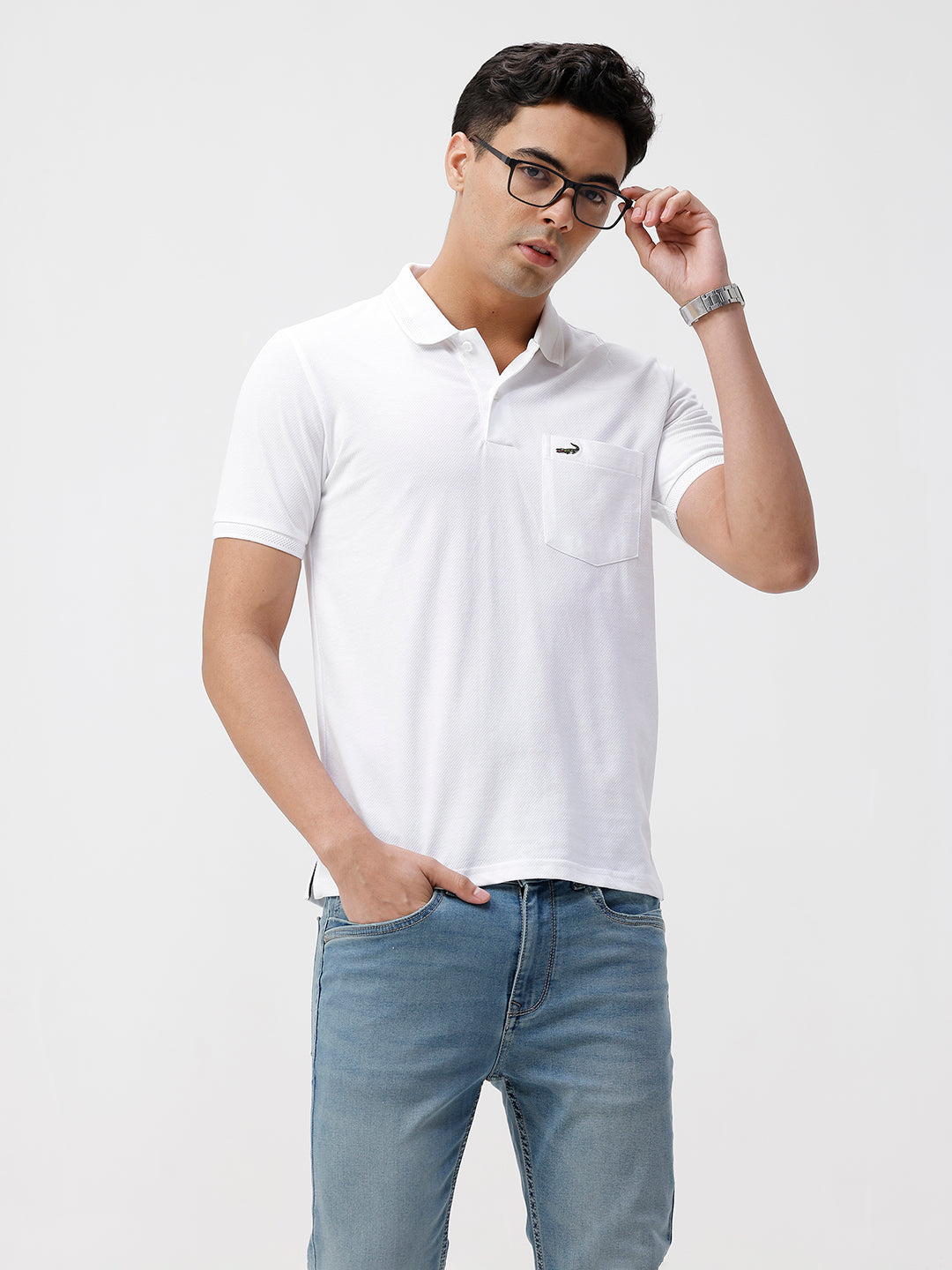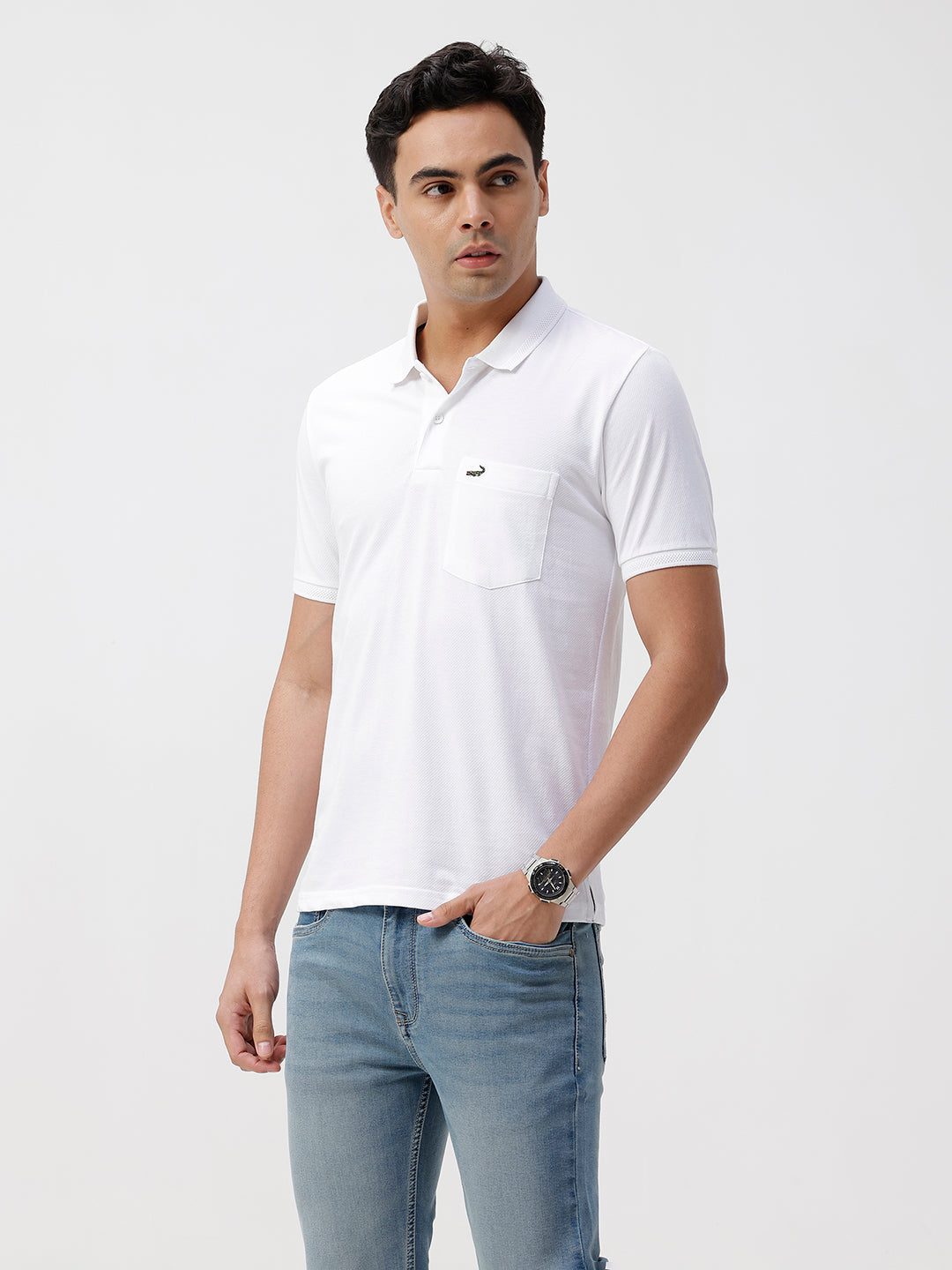Solid White Slim Fit Polo T-Shirt