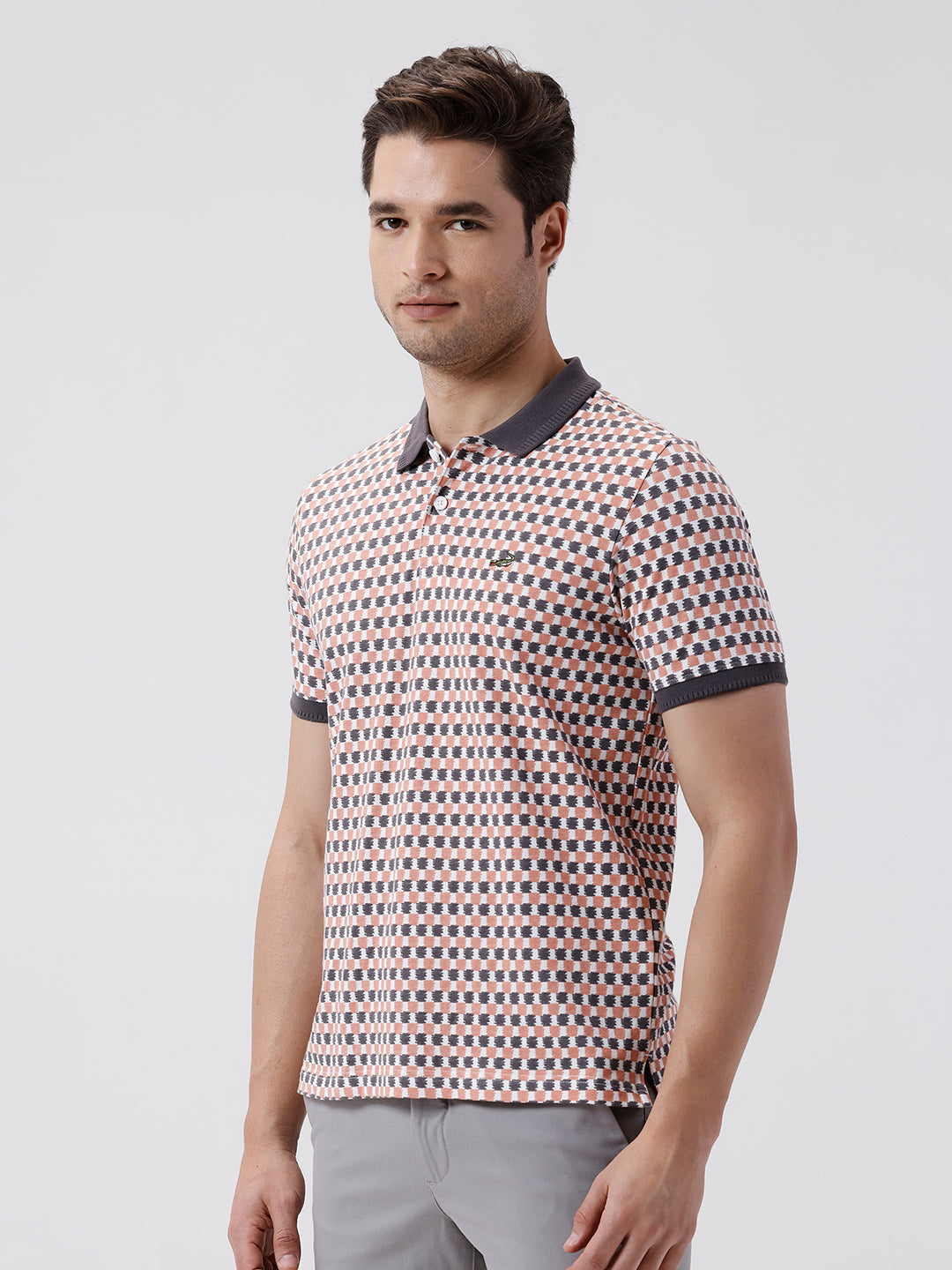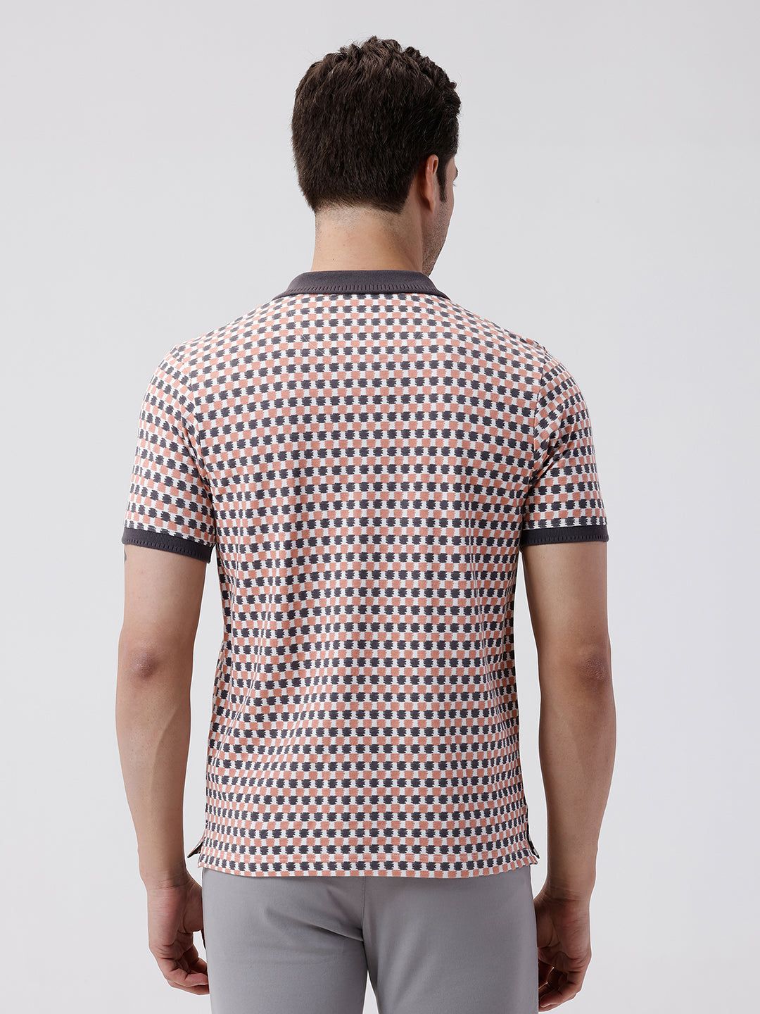 Retro Classic Checked All Over Printed Polo T-Shirt Brown