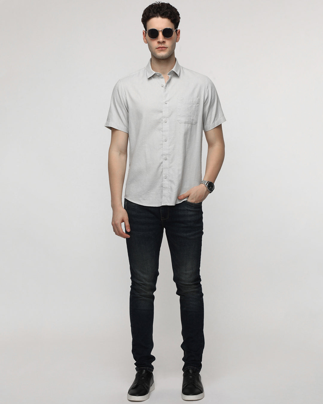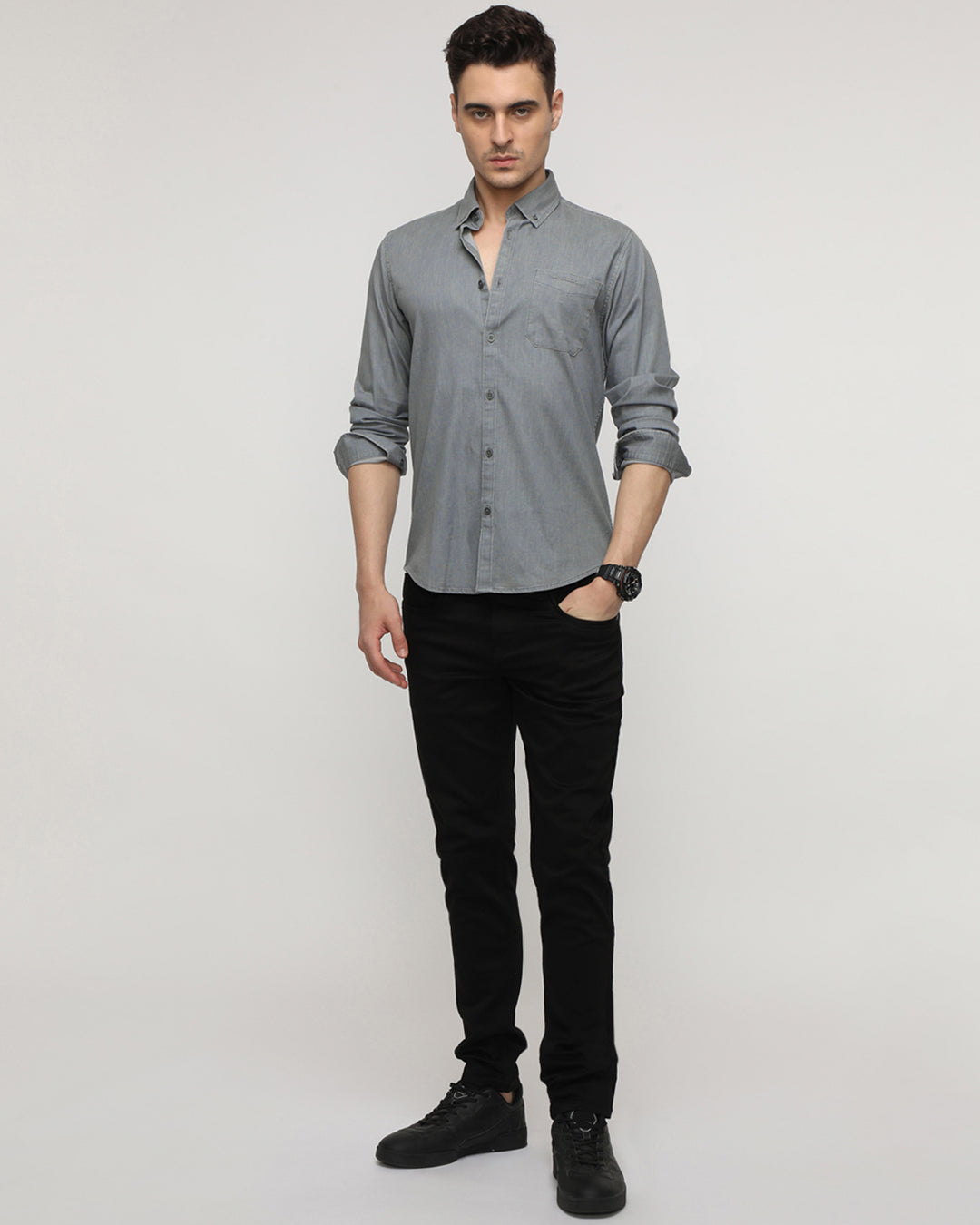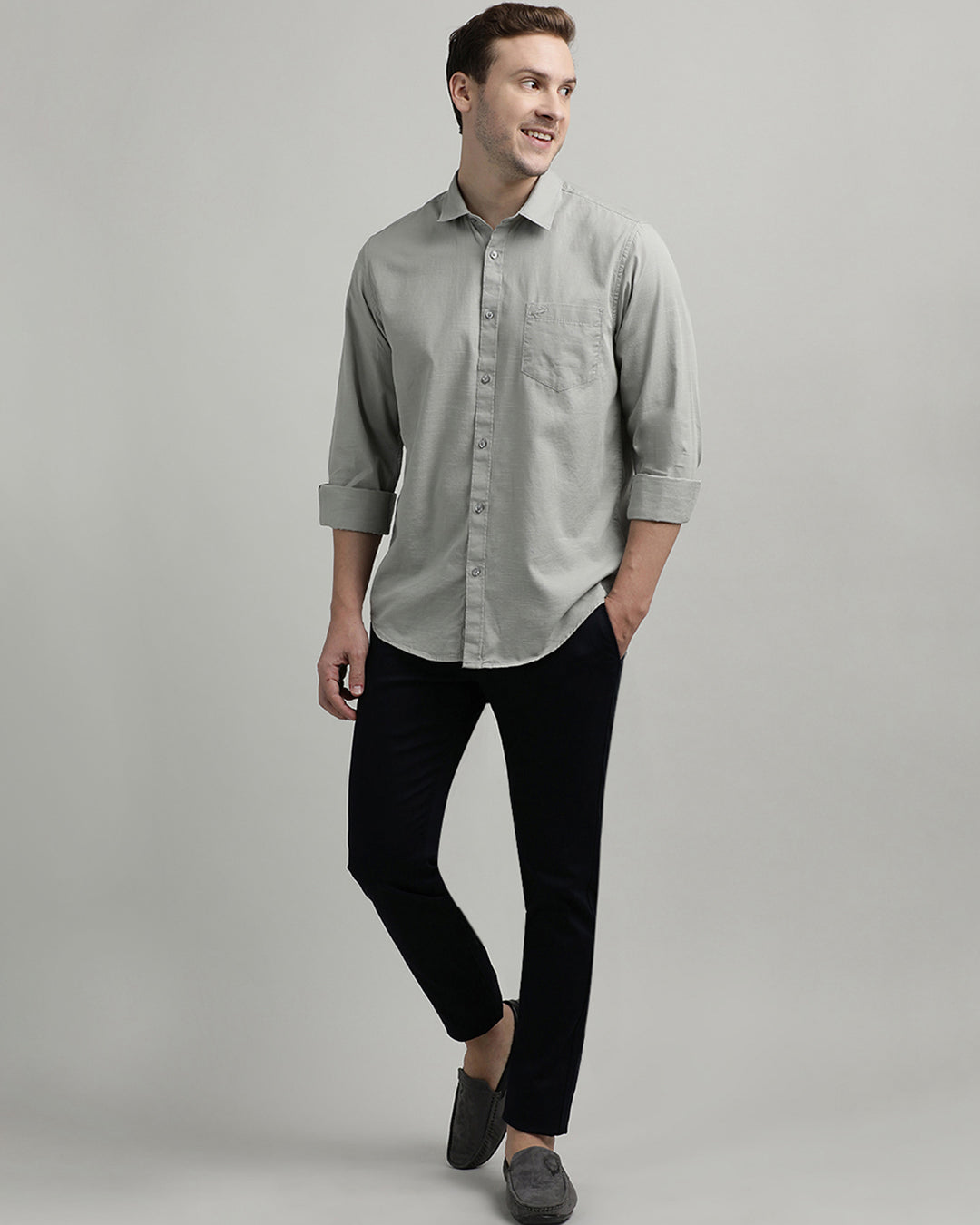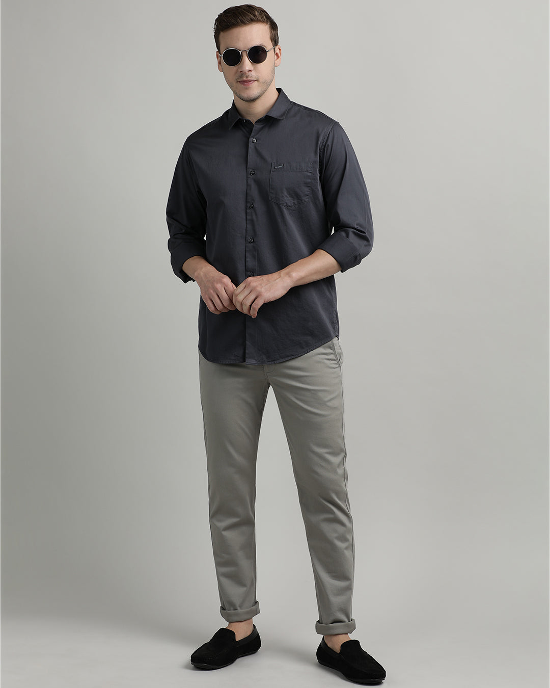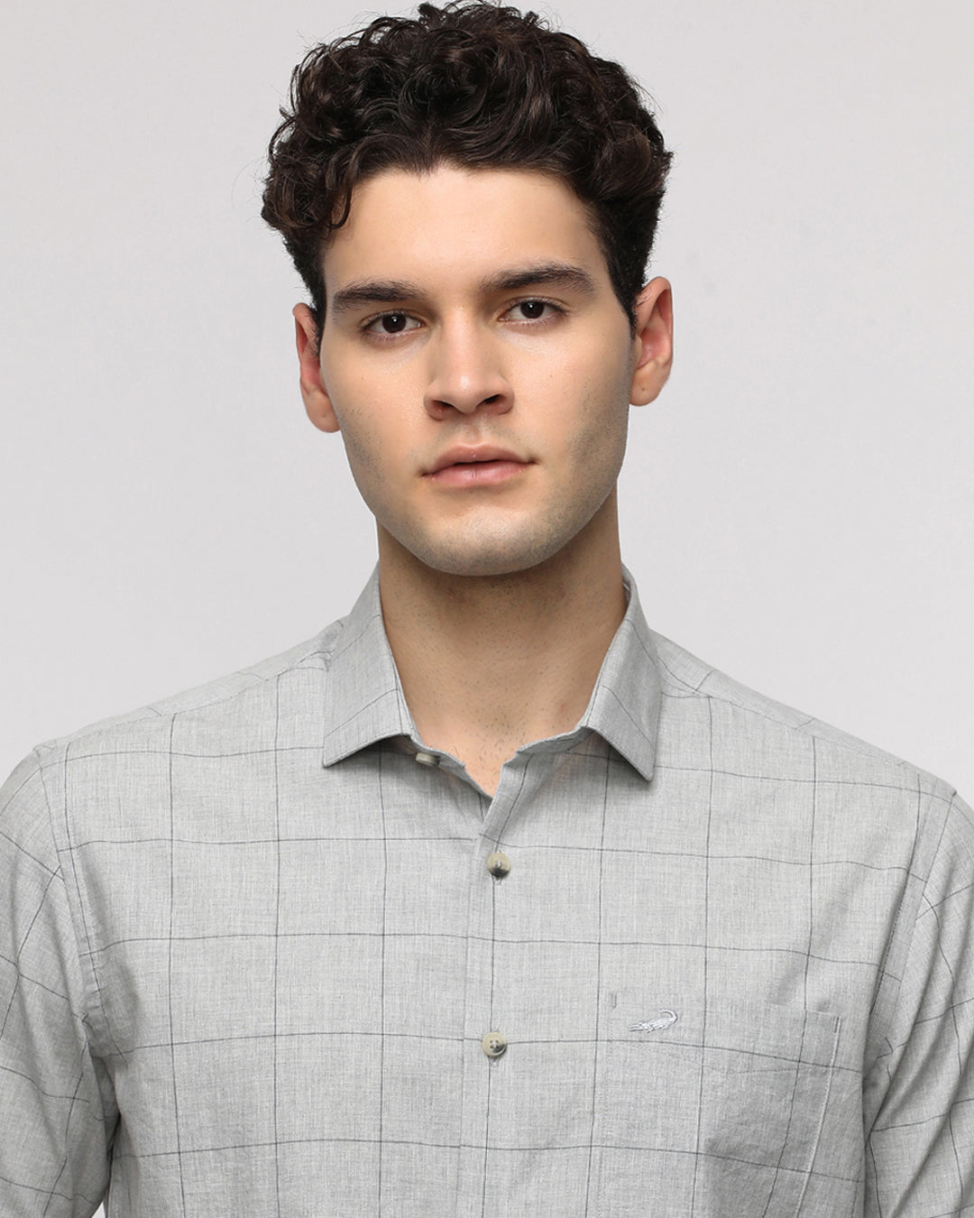 Formal Pairing with Tailored Trousers or Chinos: Crocodile's full sleeve best casual shirts for men effortlessly transition from casual to semi-formal with the right pairings. Combine these shirts with tailored trousers or chinos for a refined, office-ready appearance. The sleekness of the shirt's design, whether solid or check prints, complements the structured silhouette of tailored bottoms. This ensemble is an excellent choice for professional settings, business meetings, or semi-formal events where a sophisticated yet comfortable look is essential.