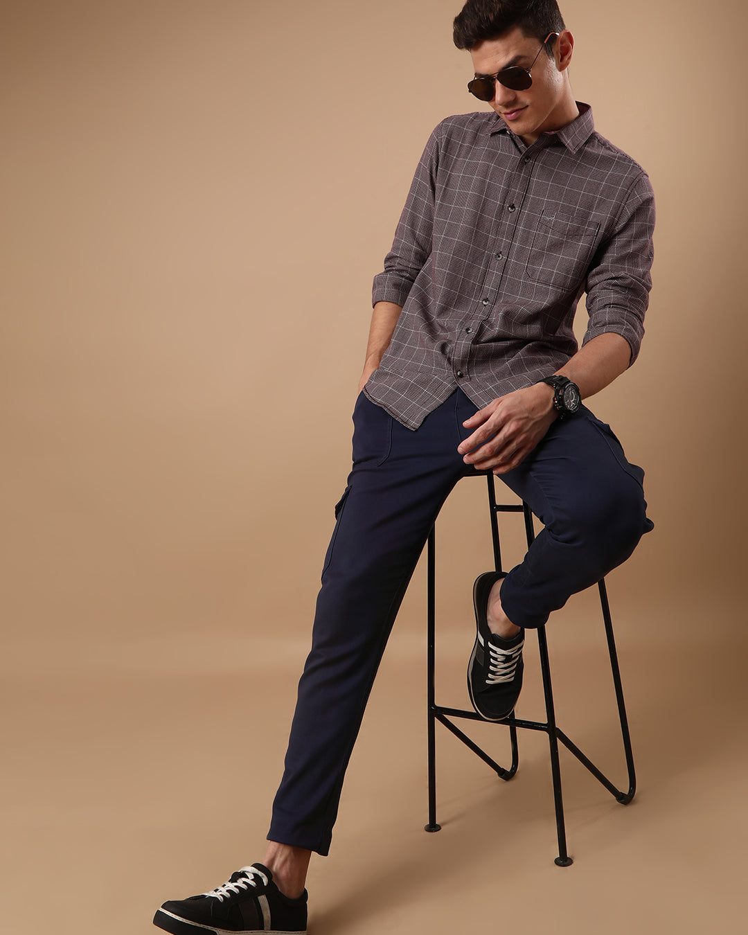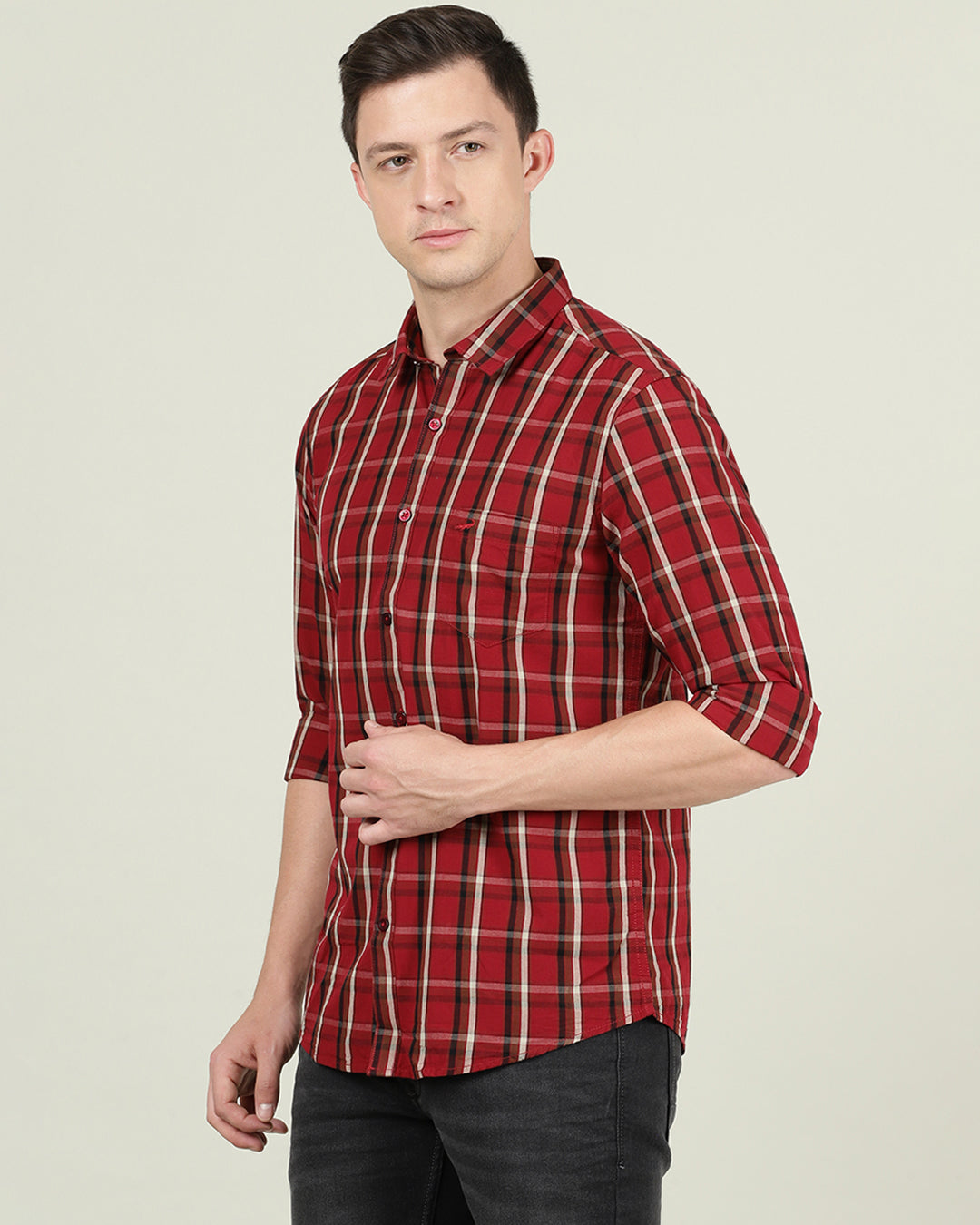 Formal Pairing with Tailored Trousers or Chinos: Crocodile's full sleeve best casual shirts for men effortlessly transition from casual to semi-formal with the right pairings. Combine these shirts with tailored trousers or chinos for a refined, office-ready appearance. The sleekness of the shirt's design, whether solid or check prints, complements the structured silhouette of tailored bottoms. This ensemble is an excellent choice for professional settings, business meetings, or semi-formal events where a sophisticated yet comfortable look is essential.