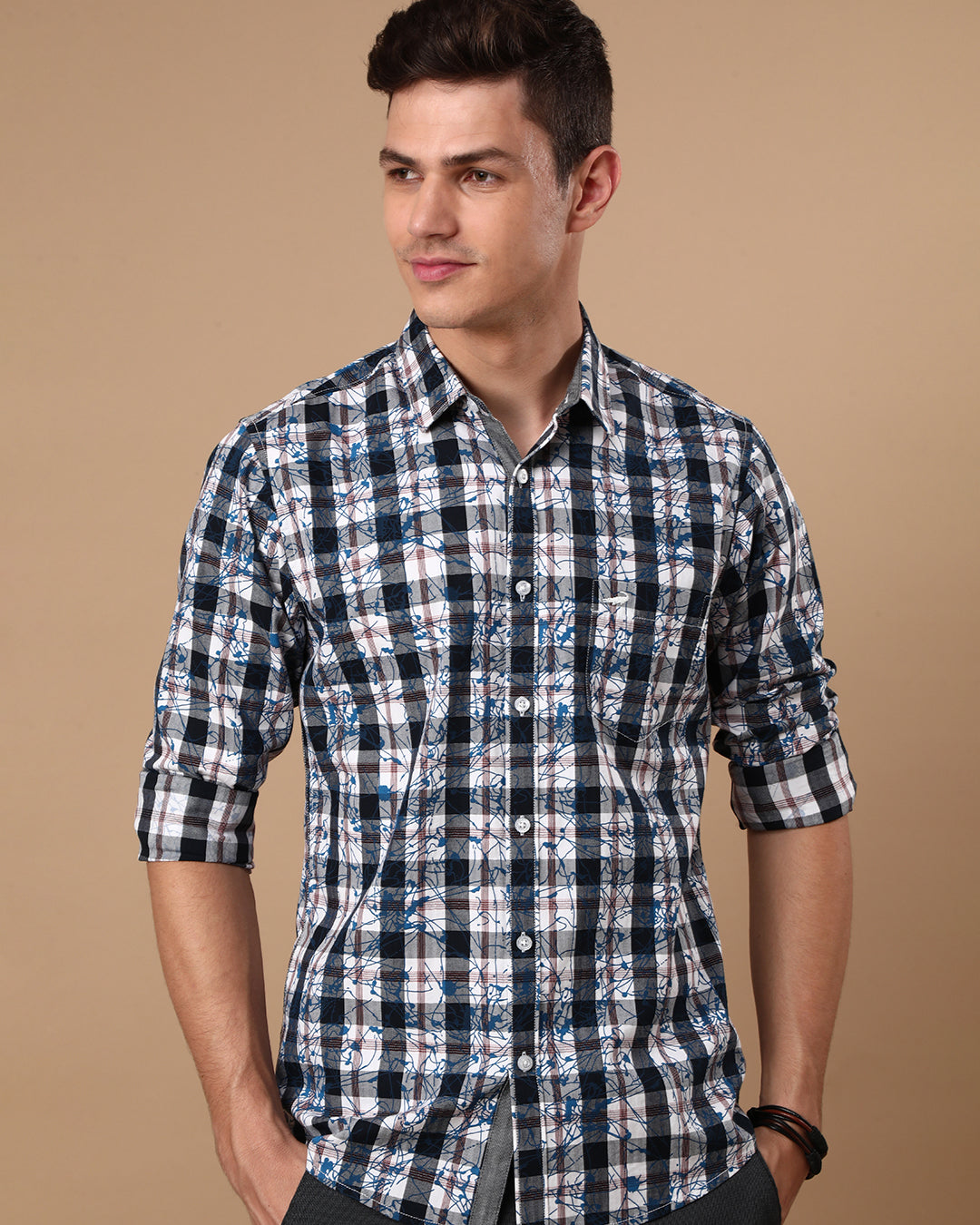 Check Prints: Introducing Crocodile's full sleeve collection in shades like Black and Dark Blue .Our range of check prints redefines sophistication and offers versatile choices suitable for any occasion. With their classic appeal and understated elegance, these prints are perfect for both casual outings and semi-formal events. Elevate your attire with the timeless charm of check prints, adding a touch of refinement to any ensemble.