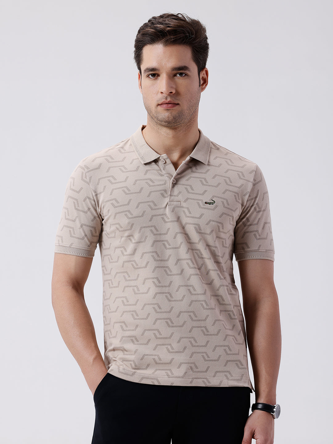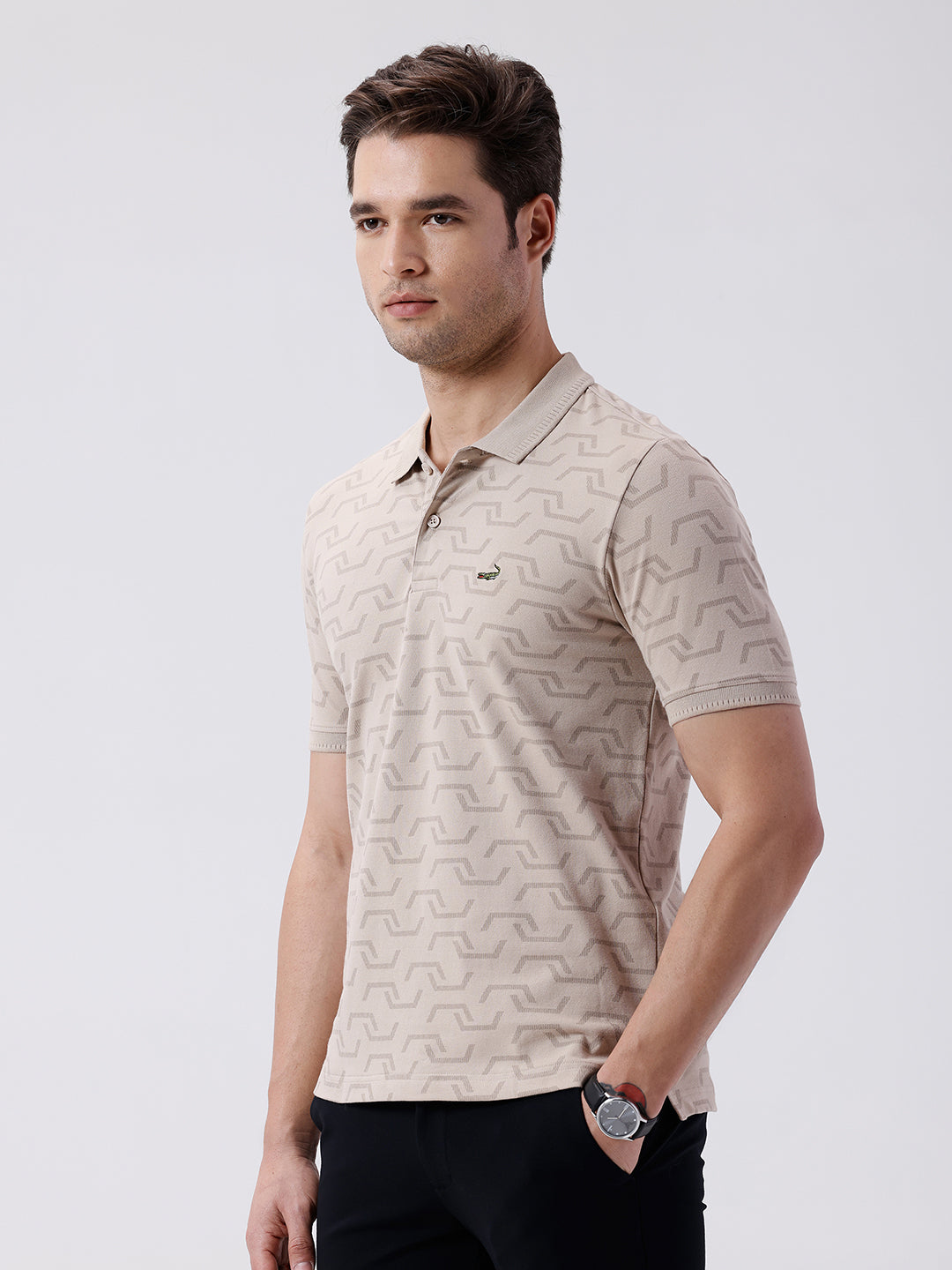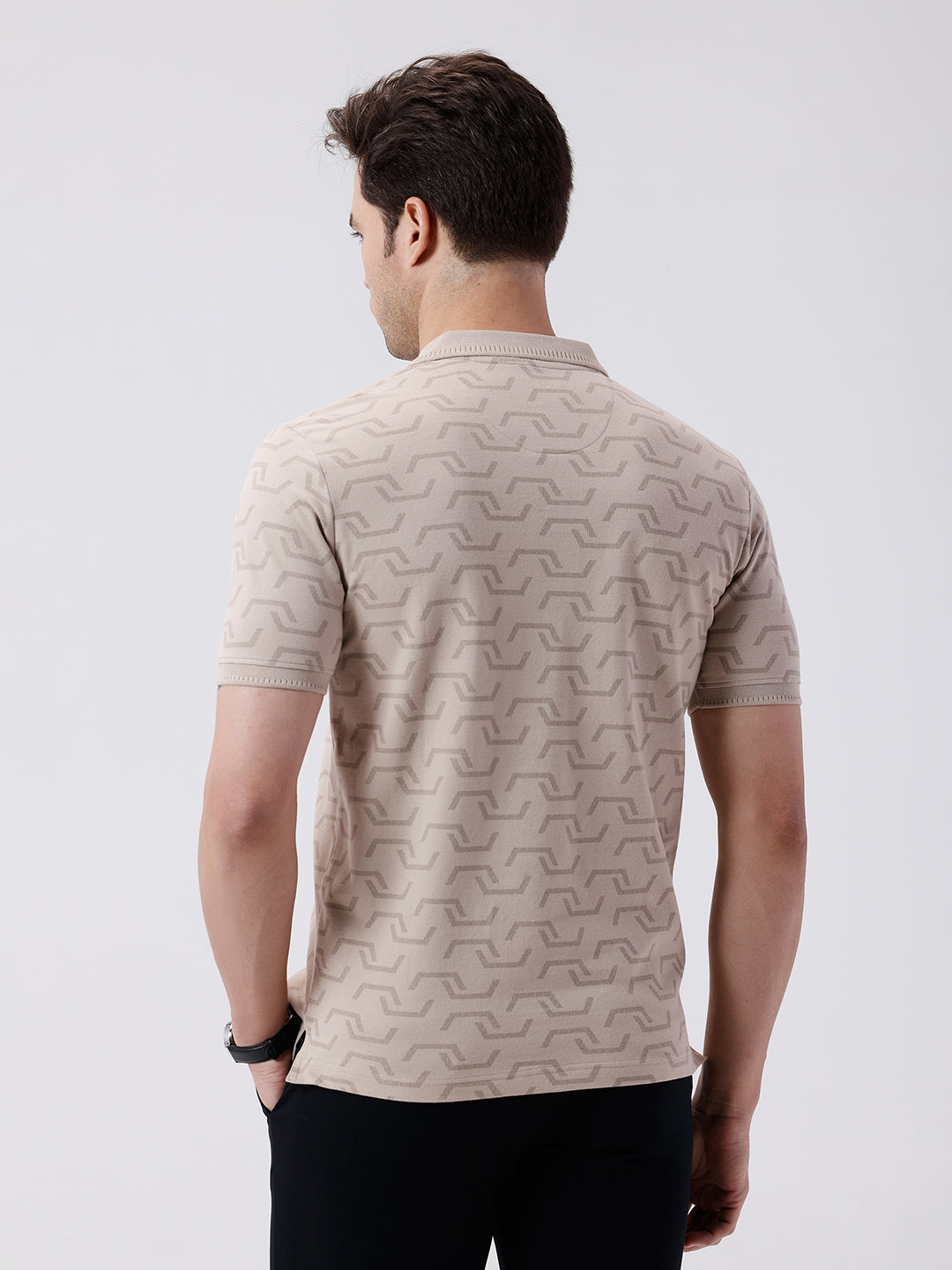 All Over Printed Subtle Texture Polo T-Shirt