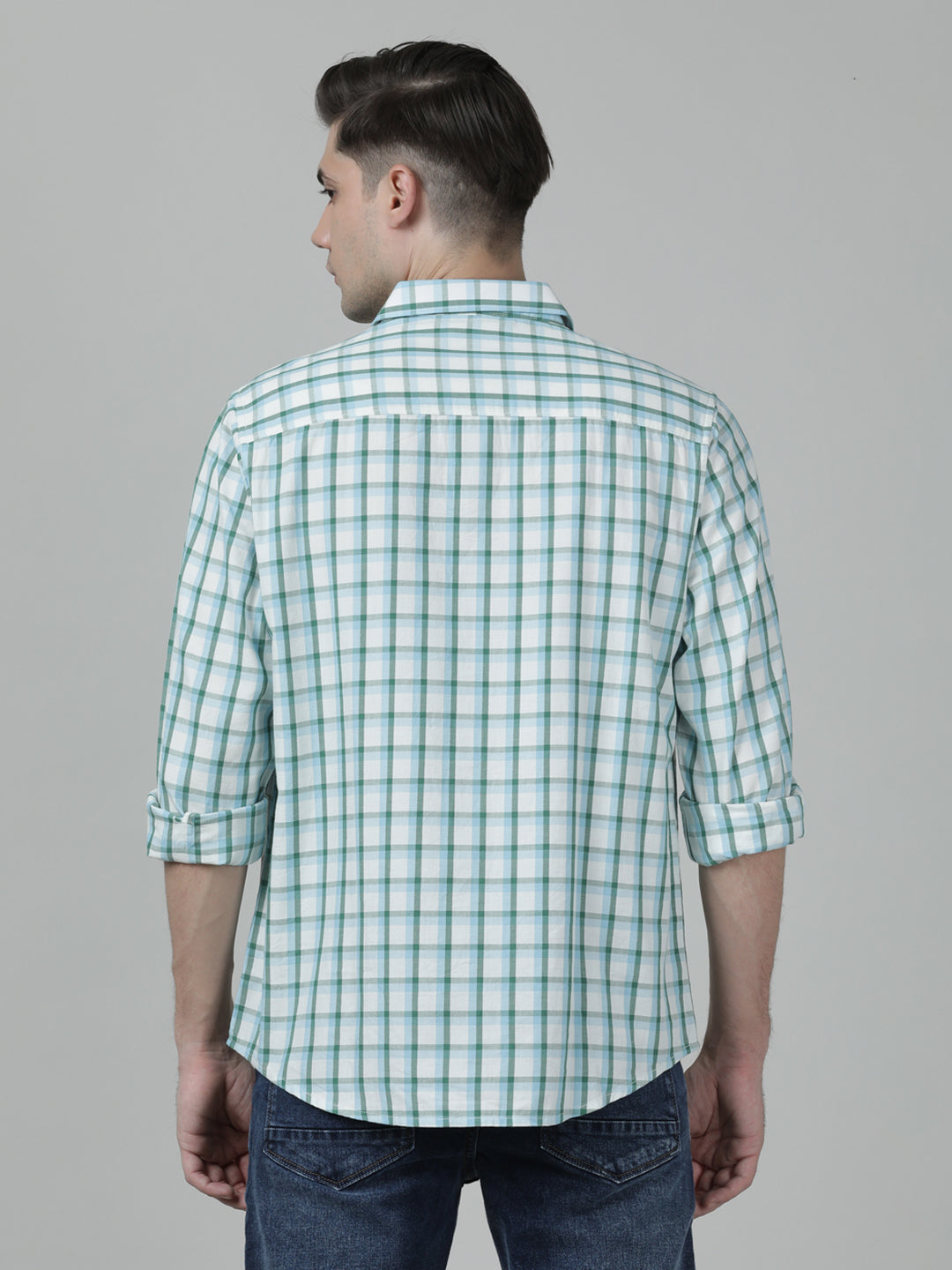 Aqua Blue Checked Full Sleeve 100% Cotton Shirt