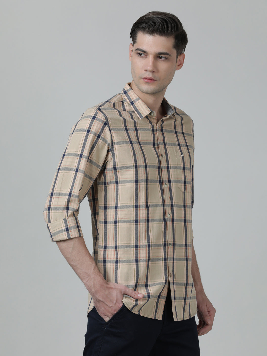 Beige Checked Full Sleeve 100% Cotton Shirt