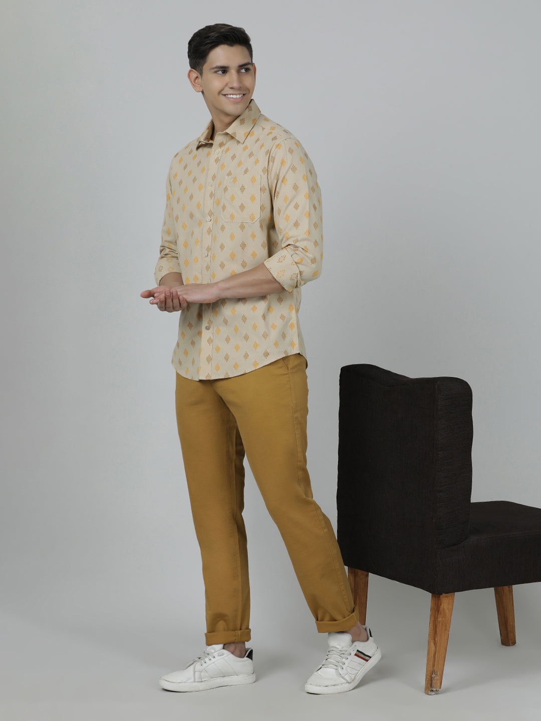 Beige Printed Full Sleeve Shirt