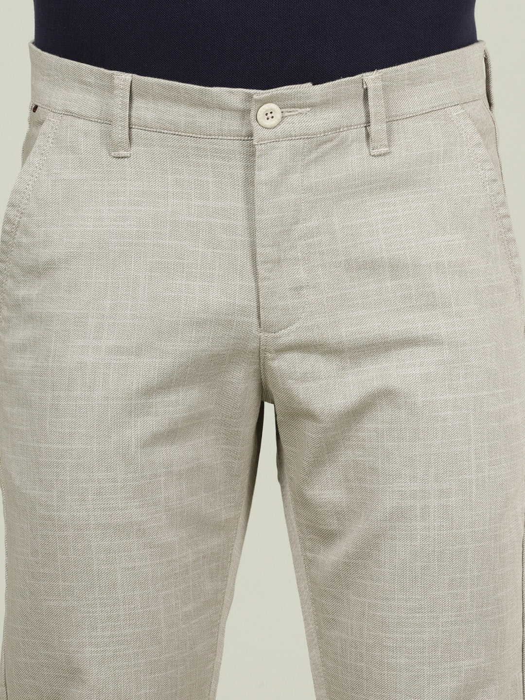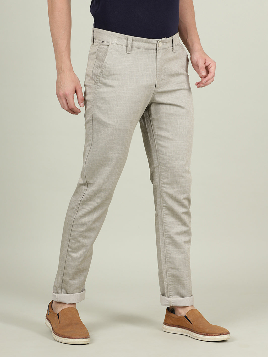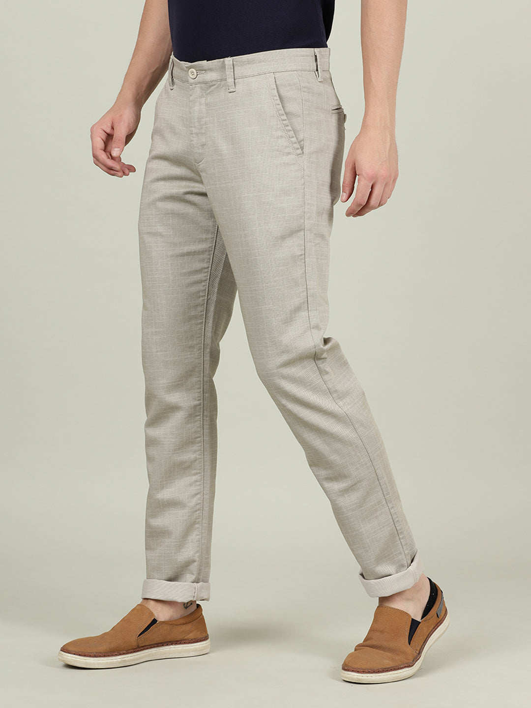 Beige Printed Slim Fit Casual Trouser