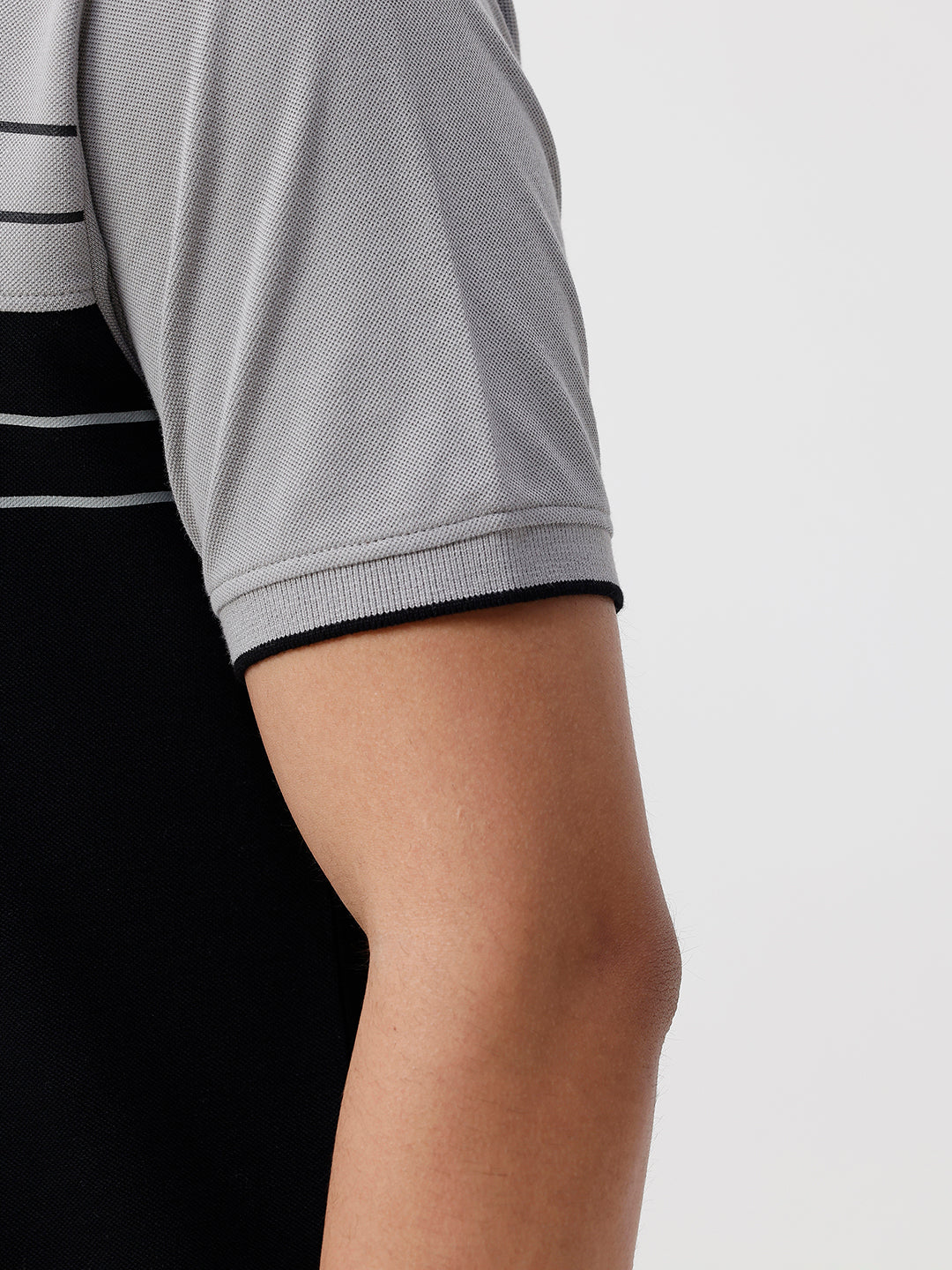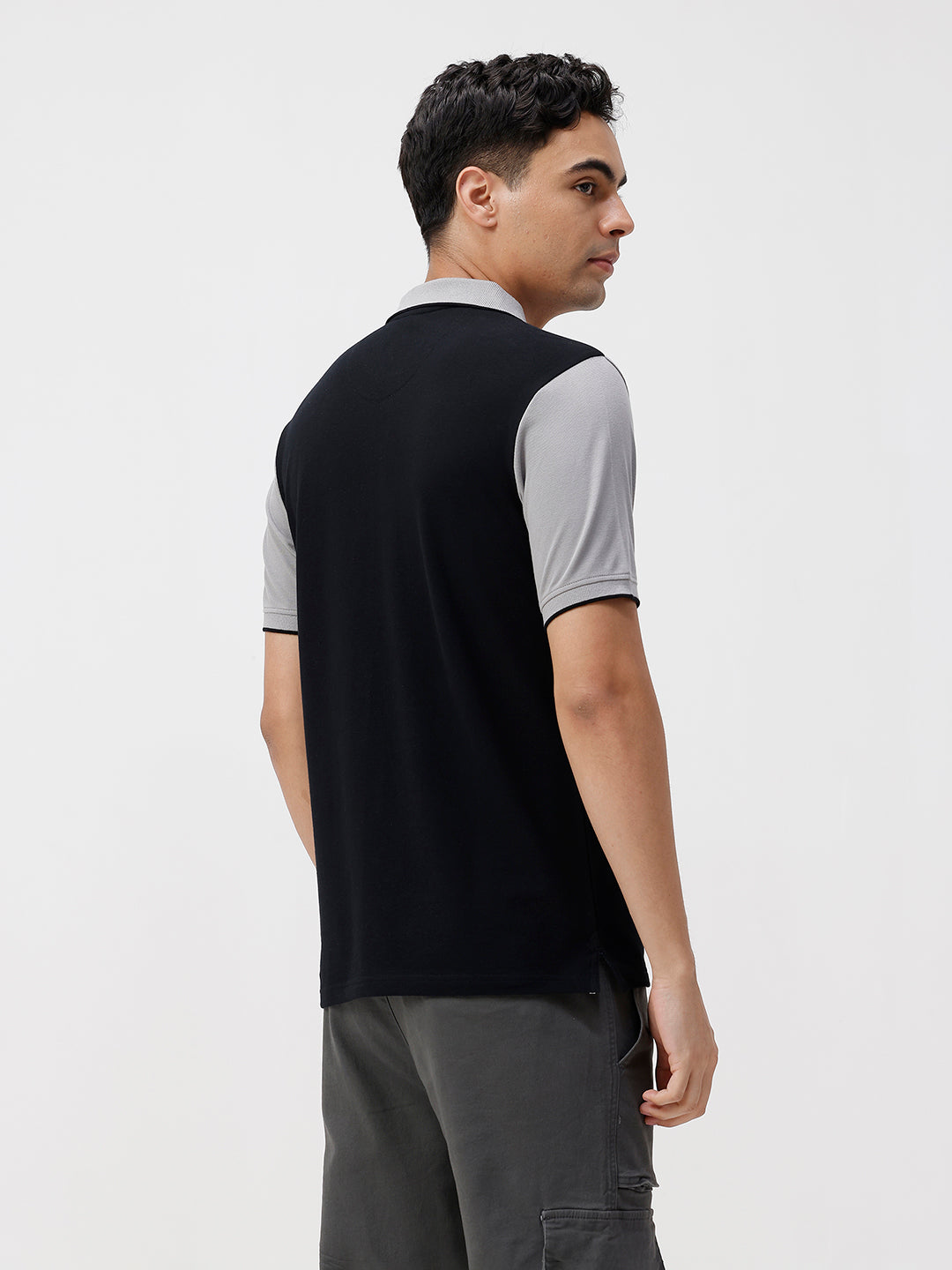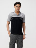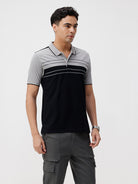 Black Colour Blocking Slim Fit Polo Tshirts
