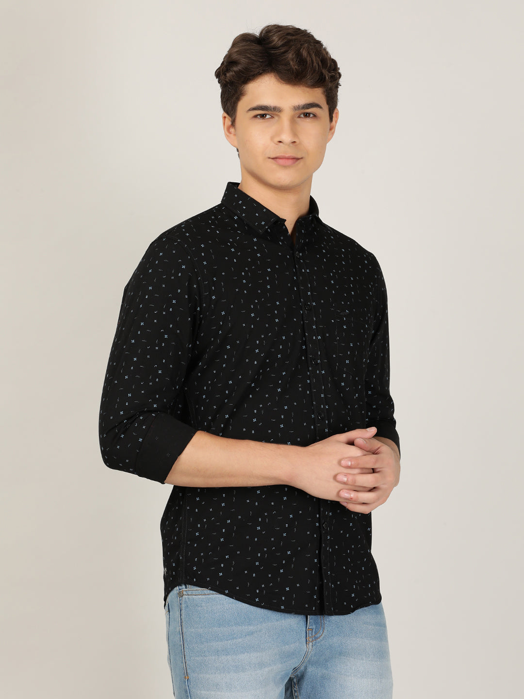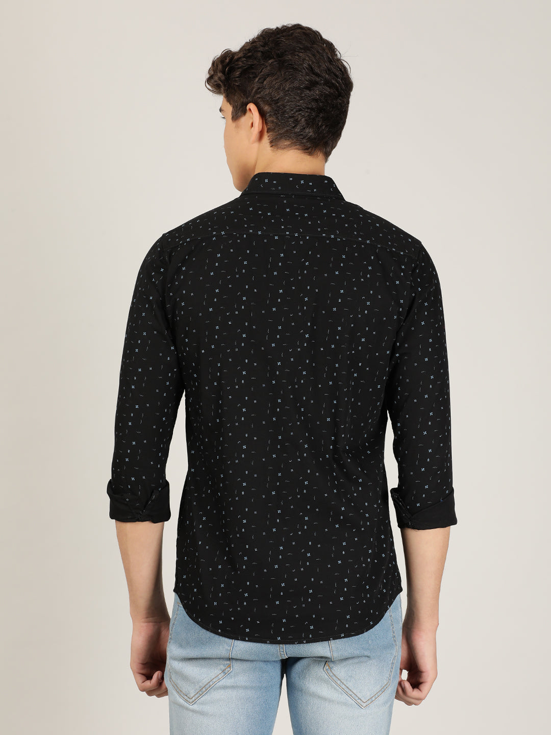 Black Printed Full Sleeve 100% Cotton Casual Shirt
