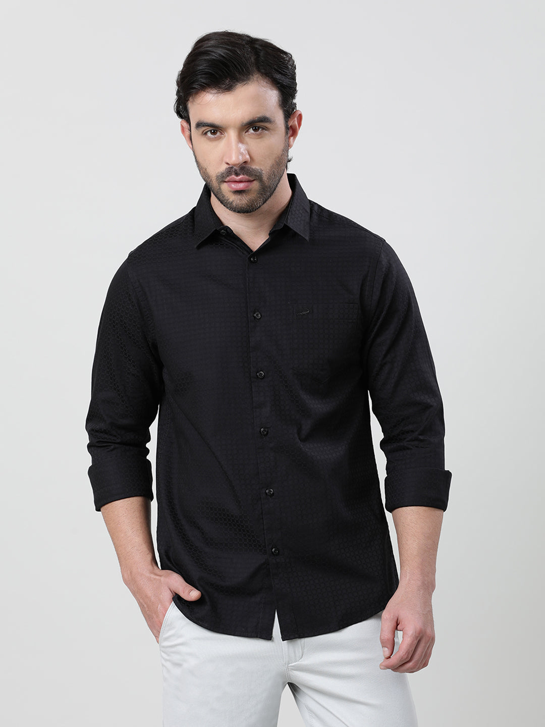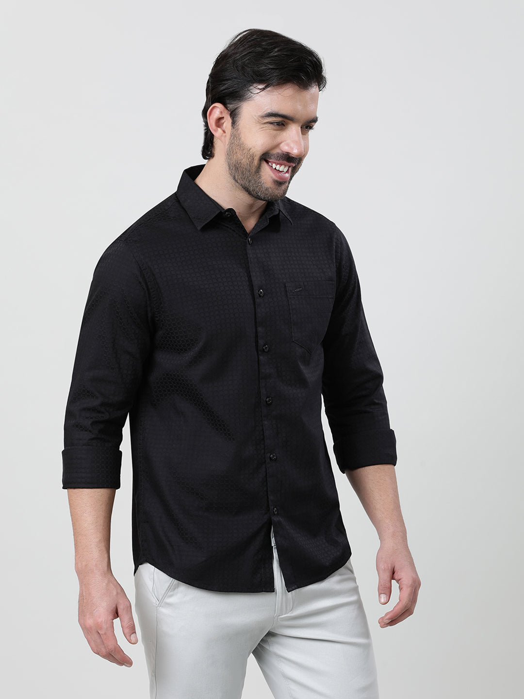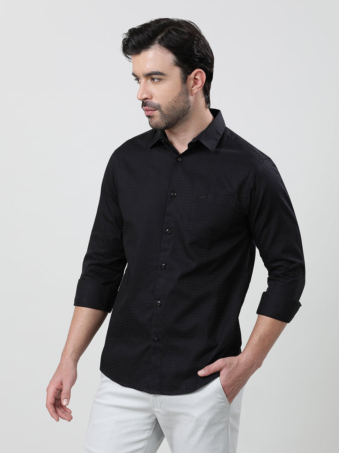 Black Solid Casual Full Sleeve 100% Cotton Shirt