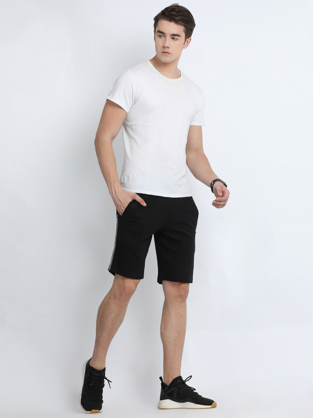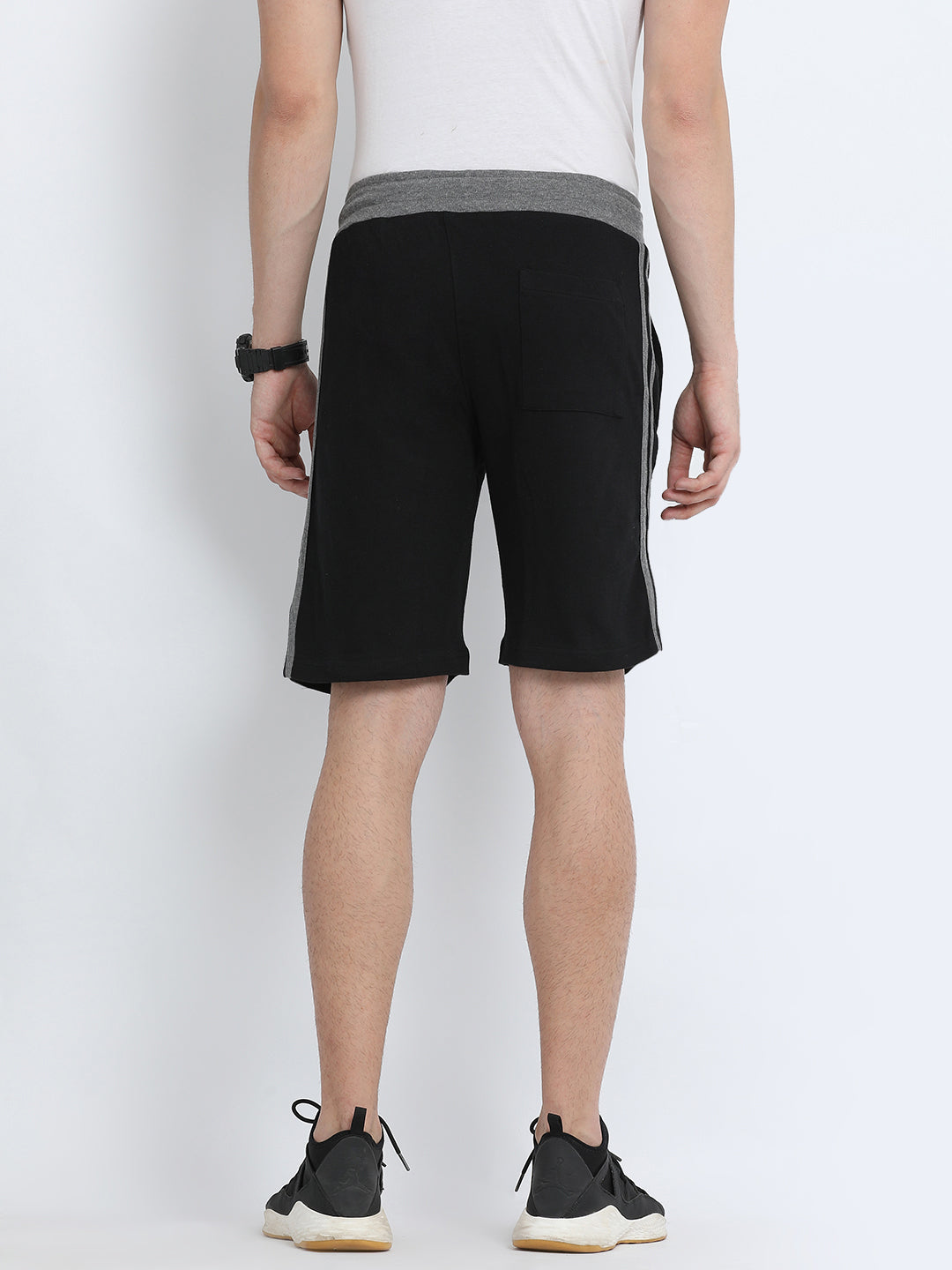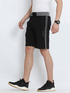 Black Solid Slim Fit Interlock Track Shorts