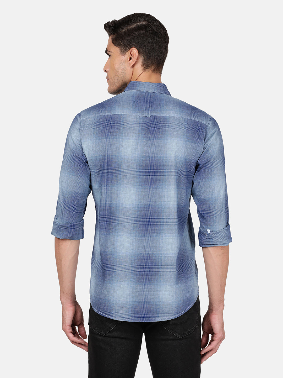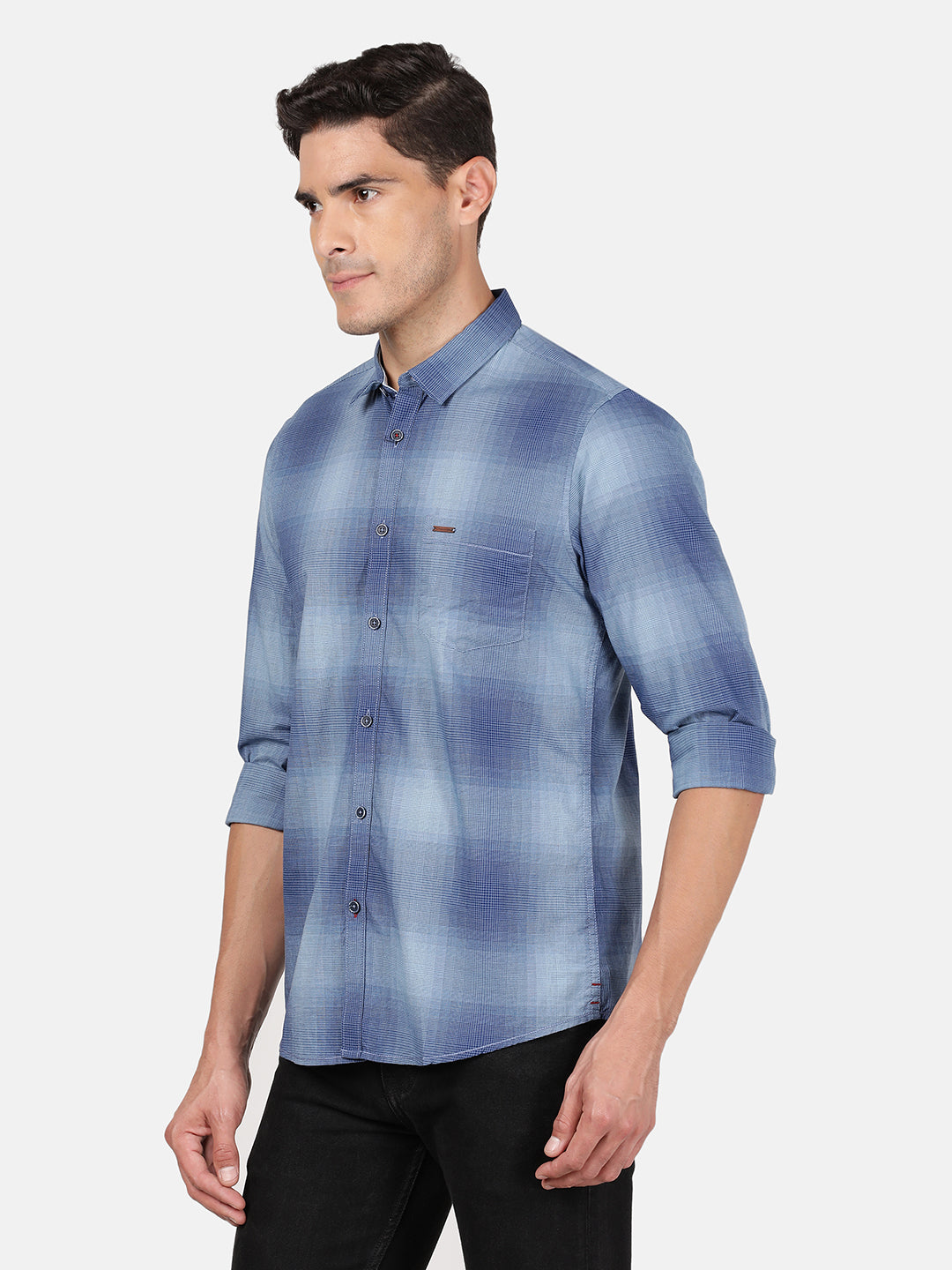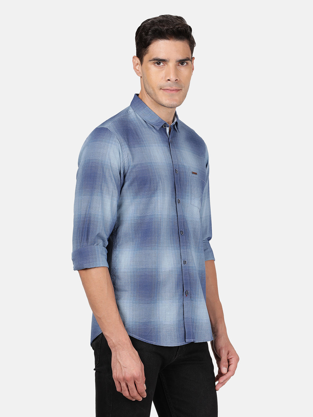 Blue 100% Cotton Checked Full Sleeve Shirt