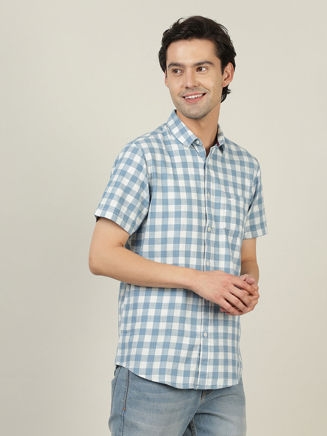 Blue Checked Half Sleeve 100% Cotton Casual Shirt