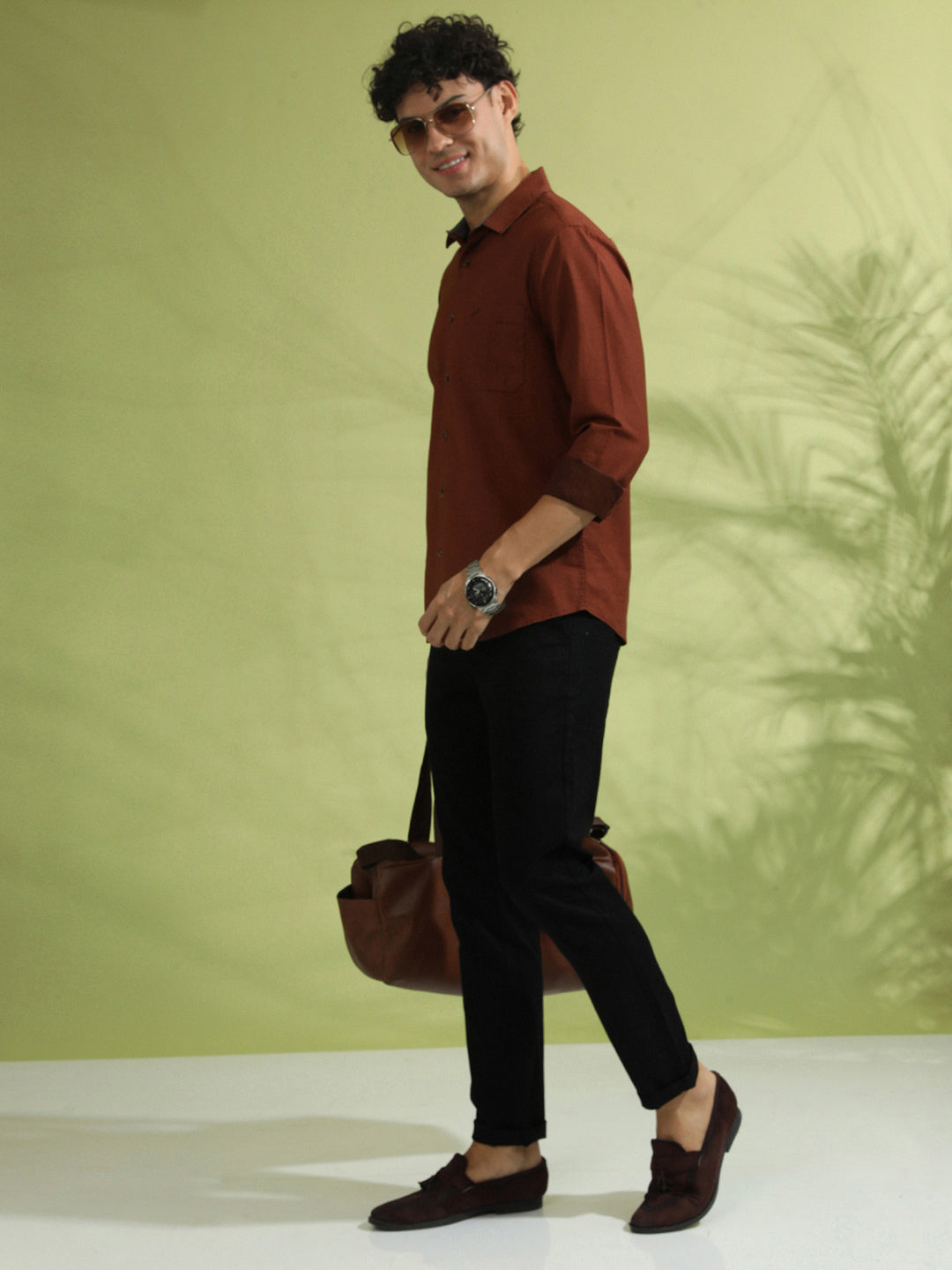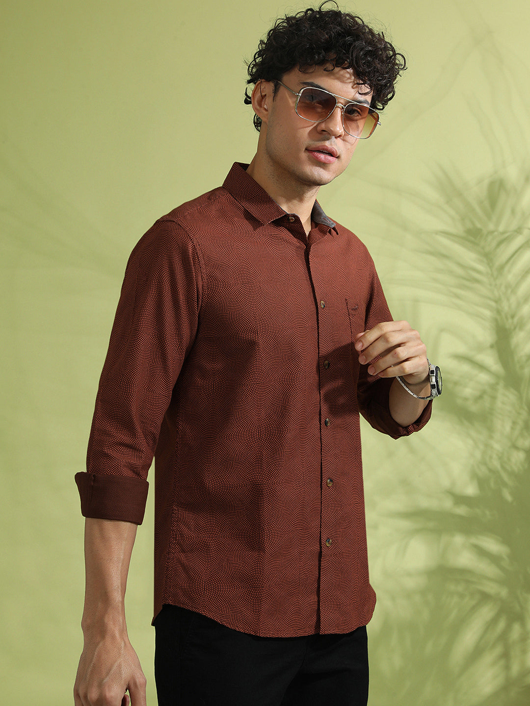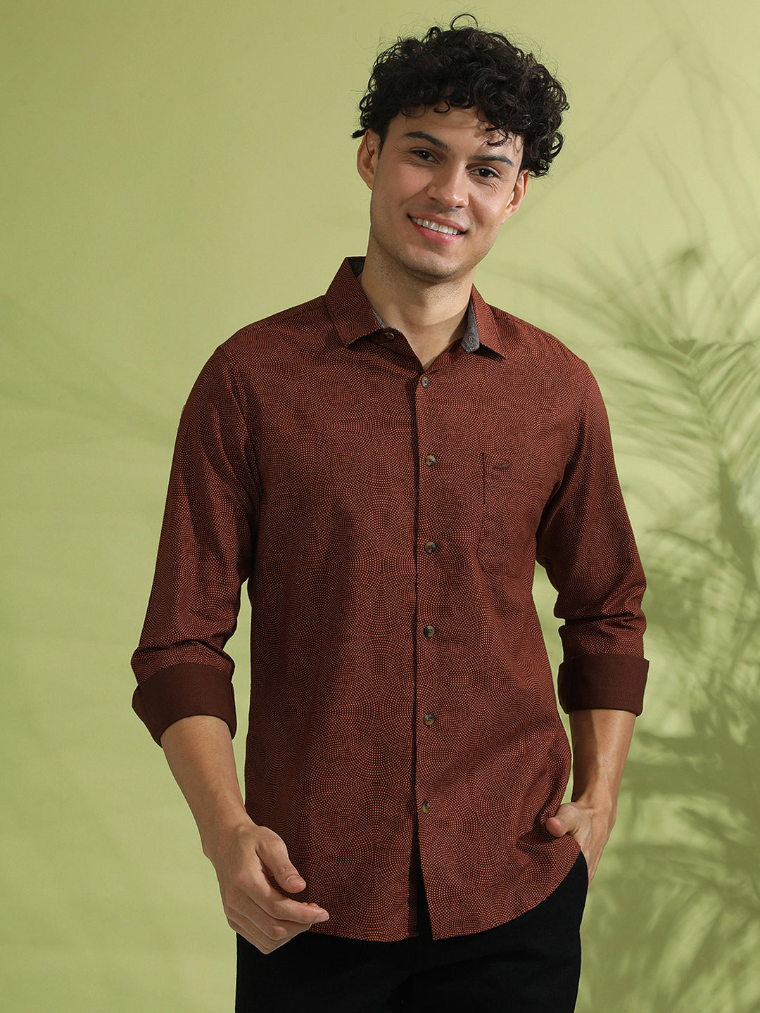 Brown Printed Full Sleeve 100% Cotton Shirt