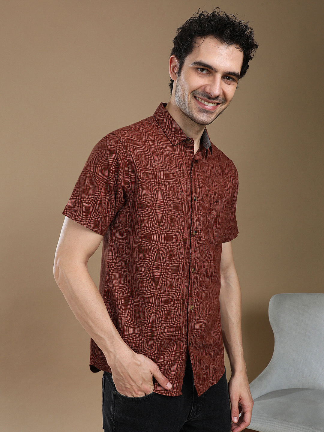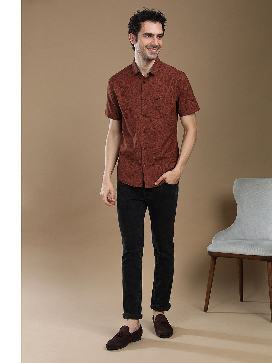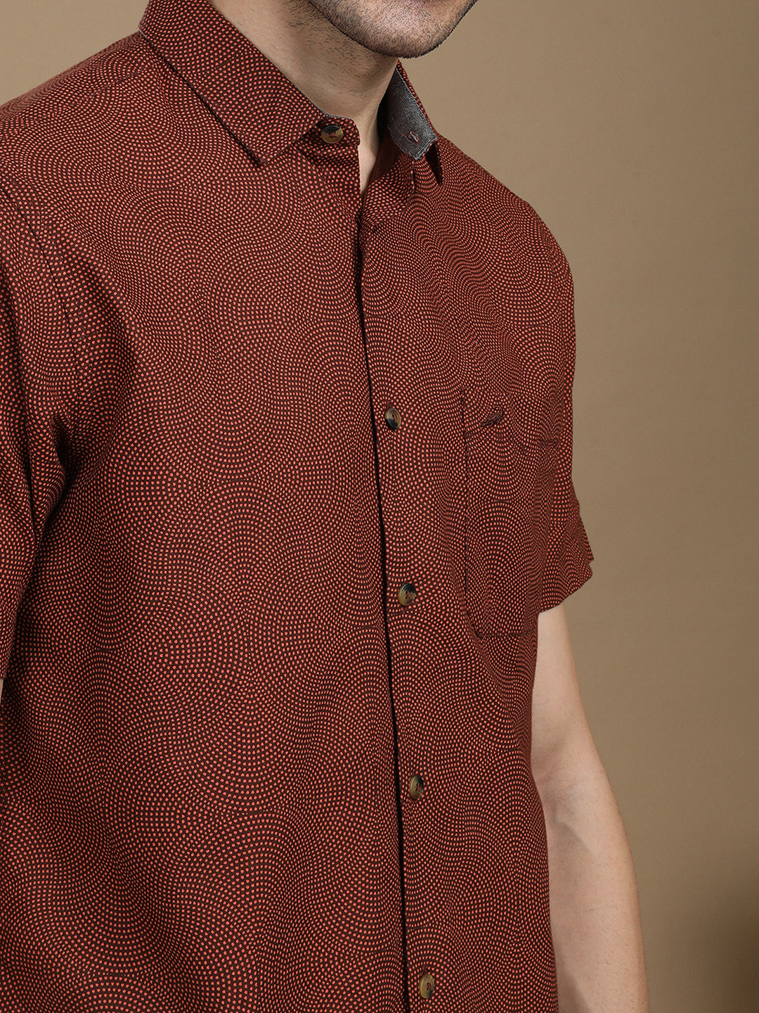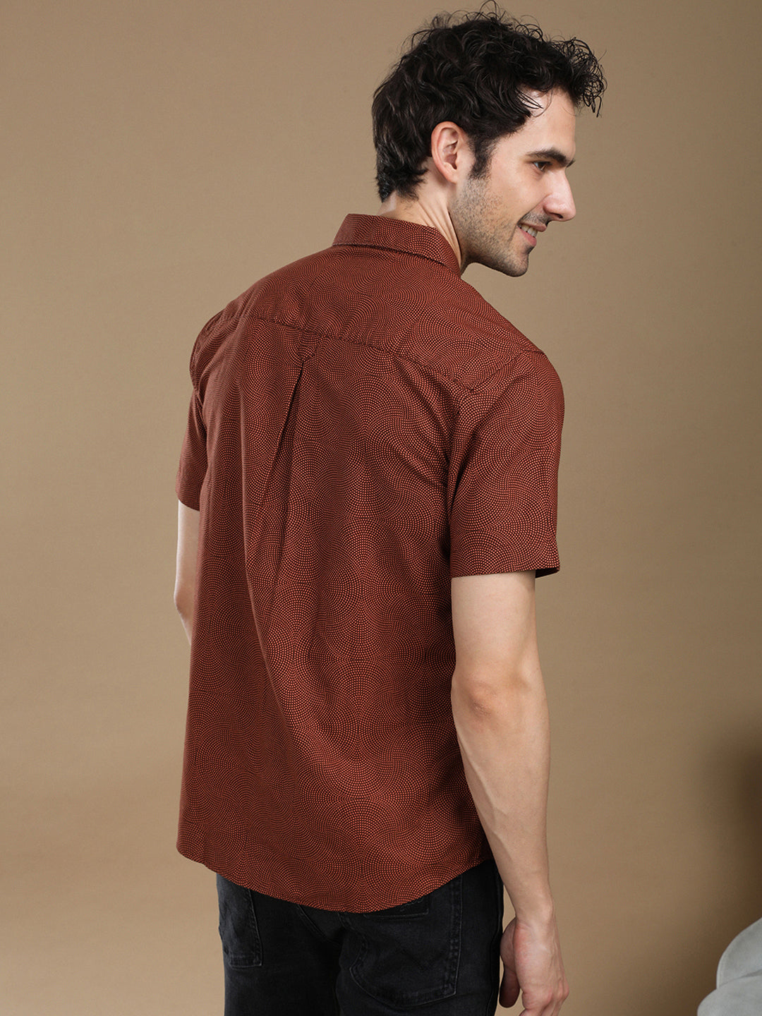 Brown Printed Half Sleeve 100% Cotton Shirt
