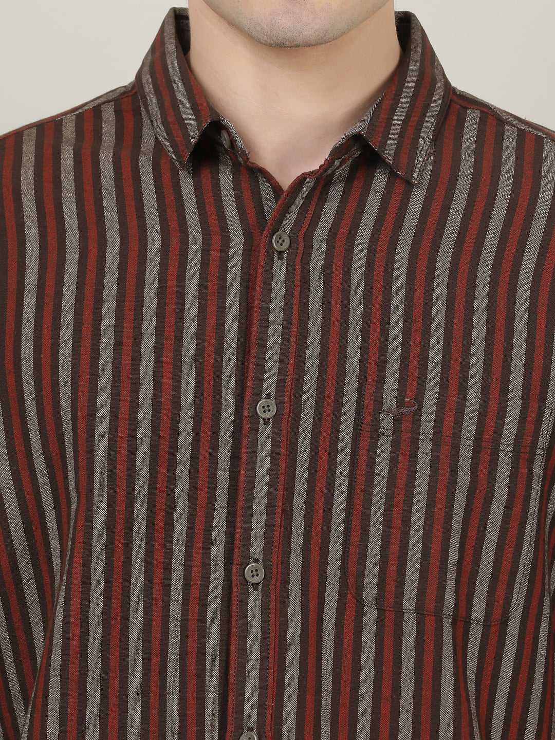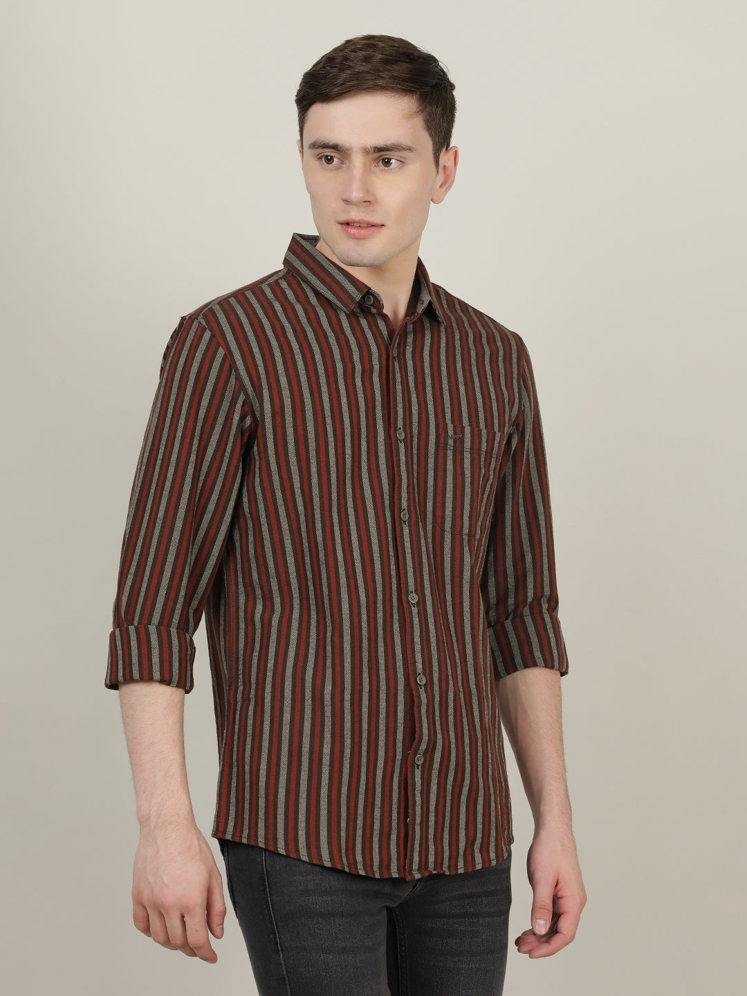 Brown Striped Full Sleeve 100% Cotton Shirt
