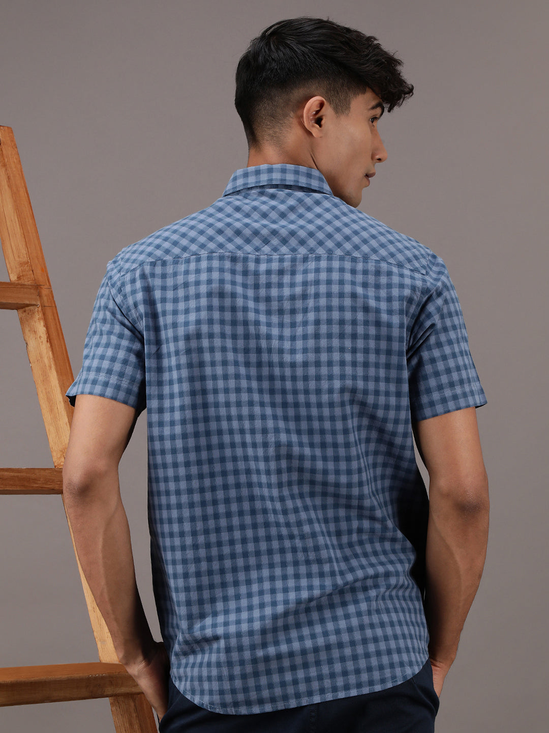 Casual Blue Checked Half Sleeve 100% Cotton Shirt
