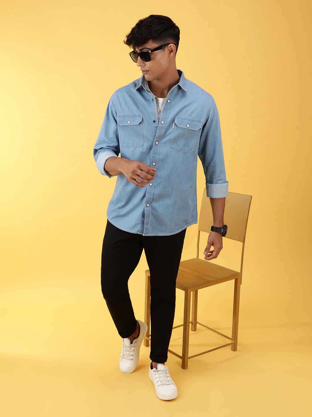 Casual Blue Solid Full Sleeve 100% Cotton Shirt