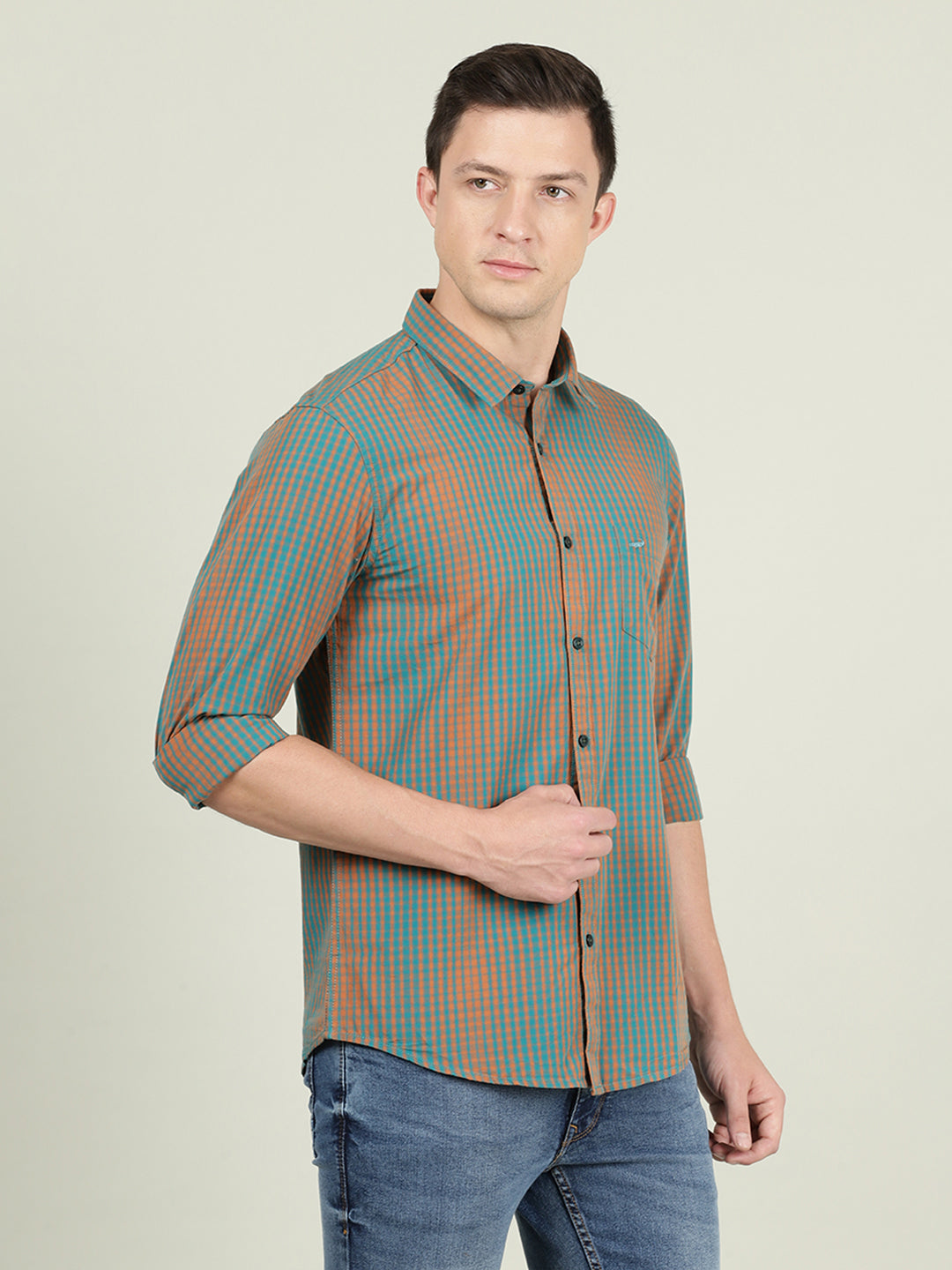 Casual Green Checked Full Sleeve 100% Cotton Shirt