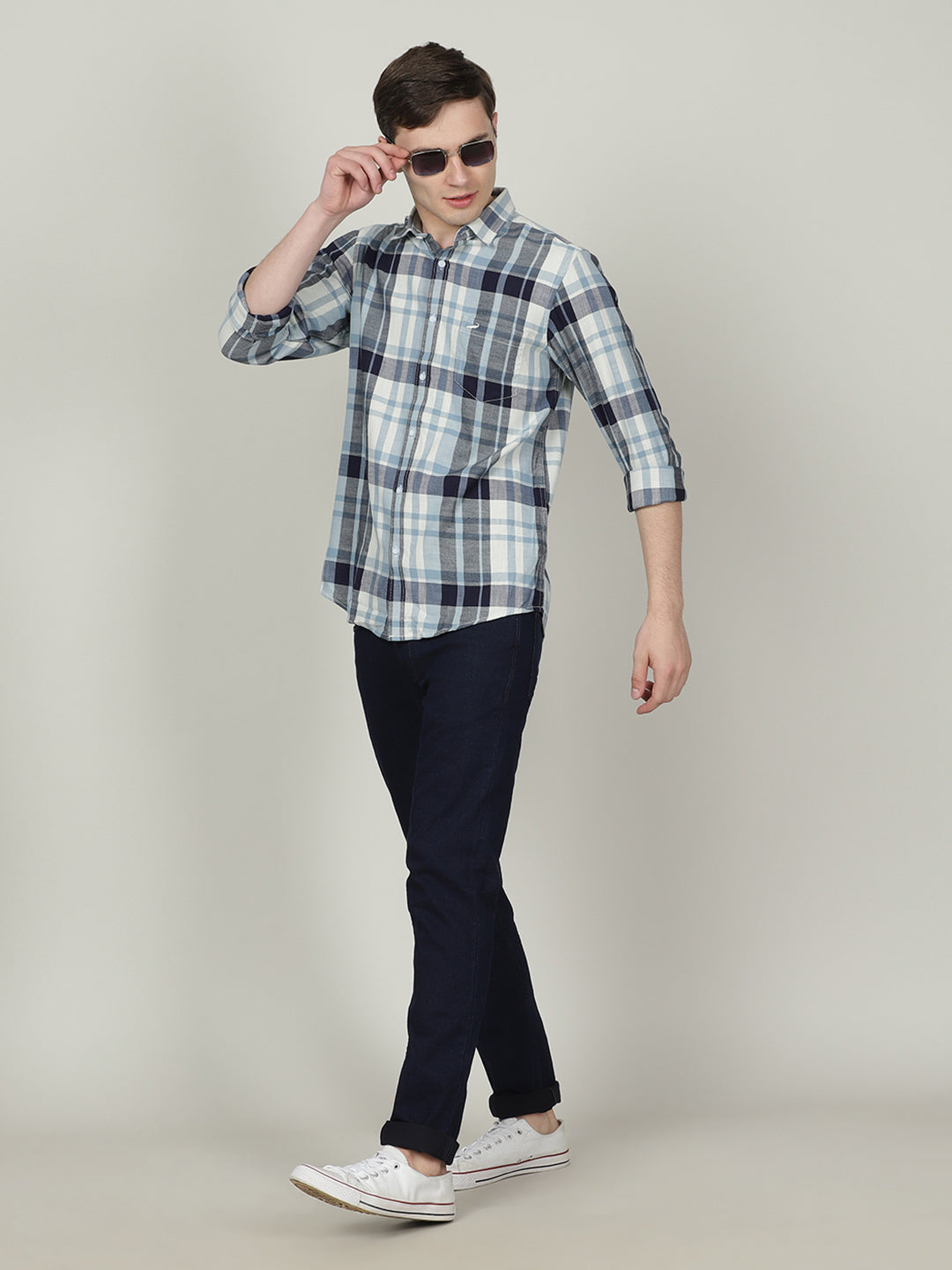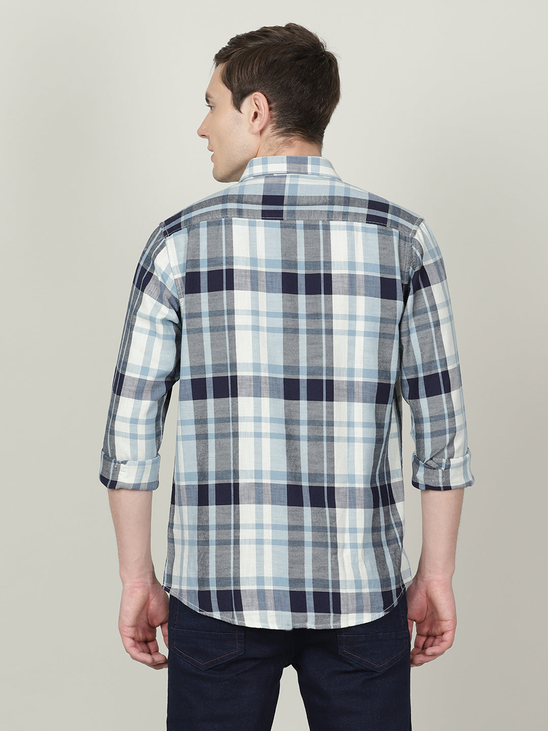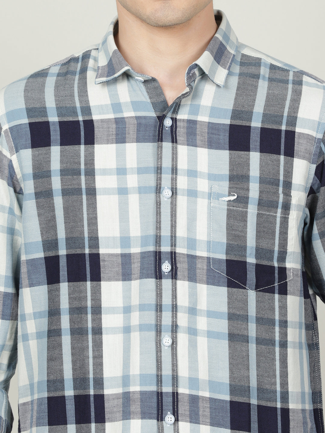 Casual Navy Checked Full Sleeve 100% Cotton Shirt