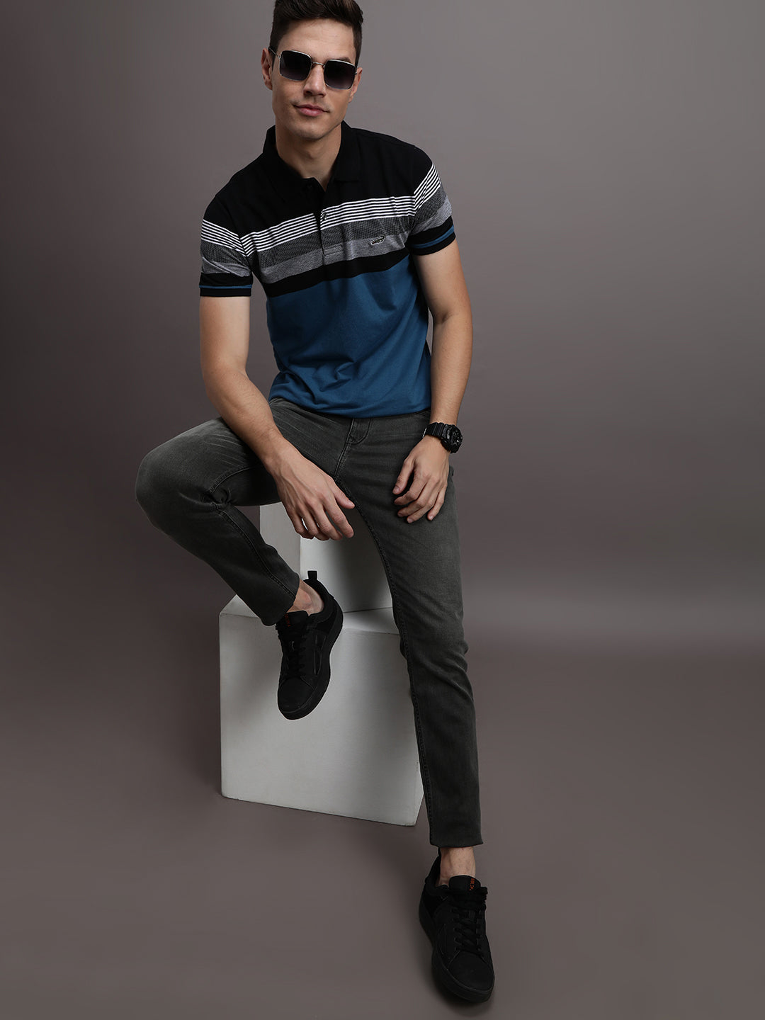 Casual Striped Black Polo T-Shirt