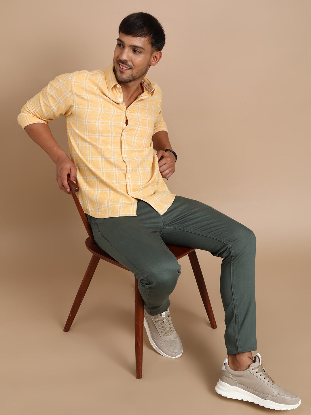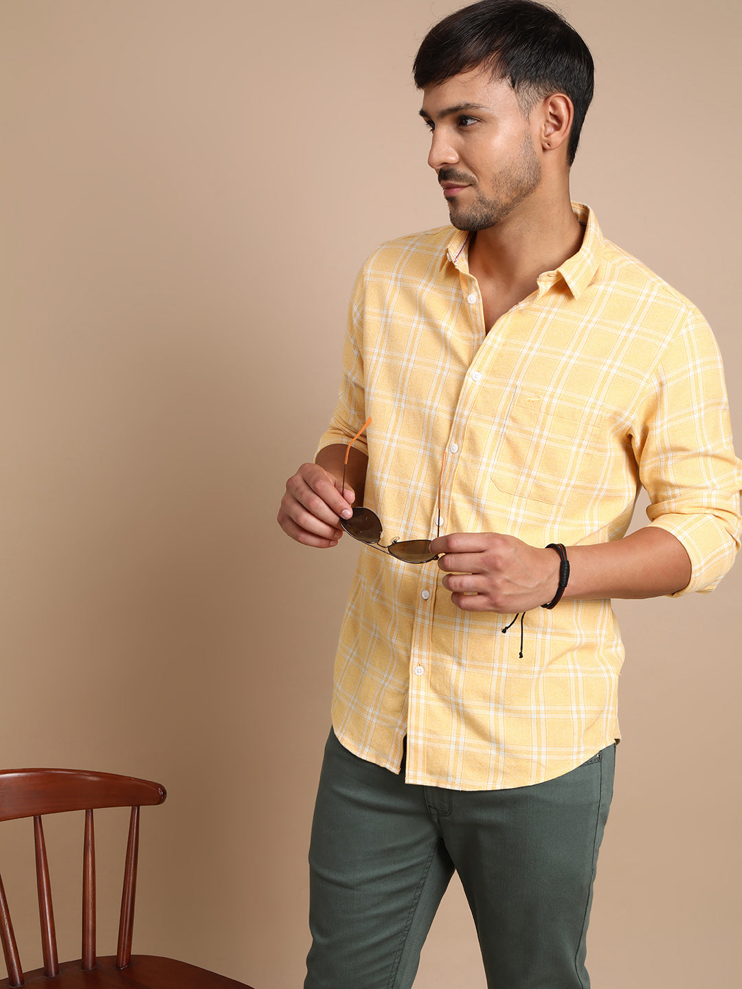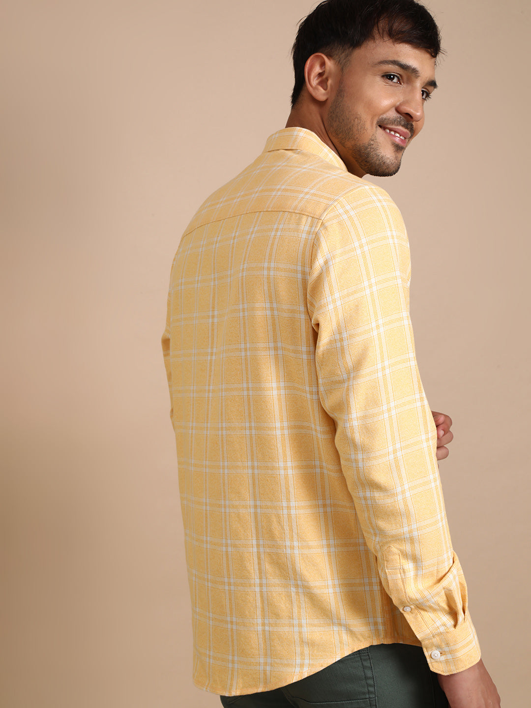 Casual Yellow Checked Full Sleeve 100% Cotton Shirt