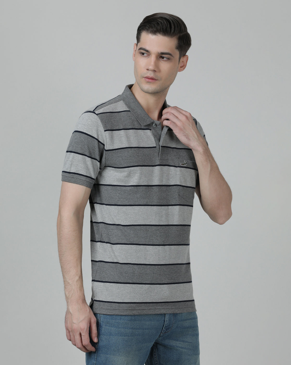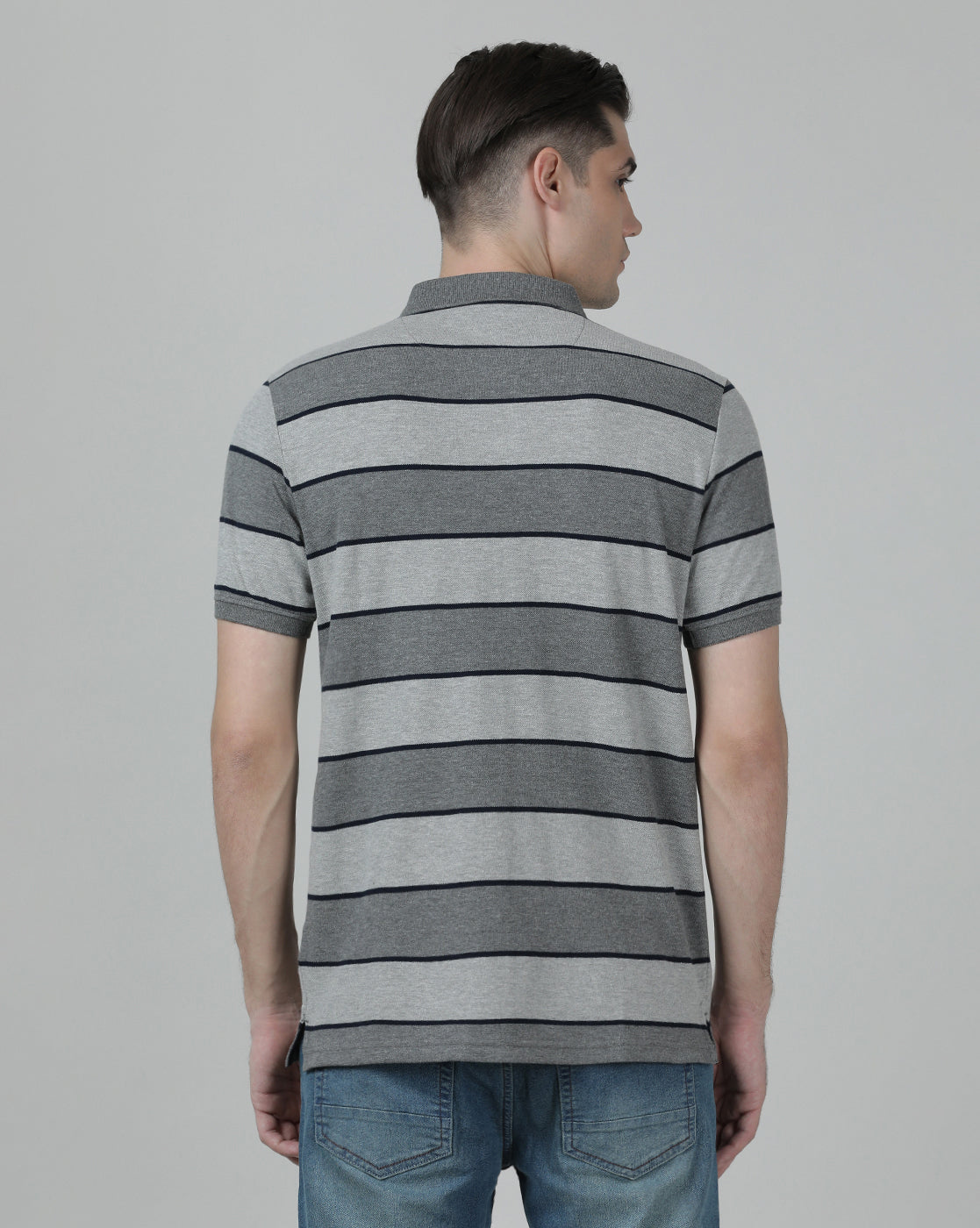 Charcoal Grey Striped Polo T-Shirt