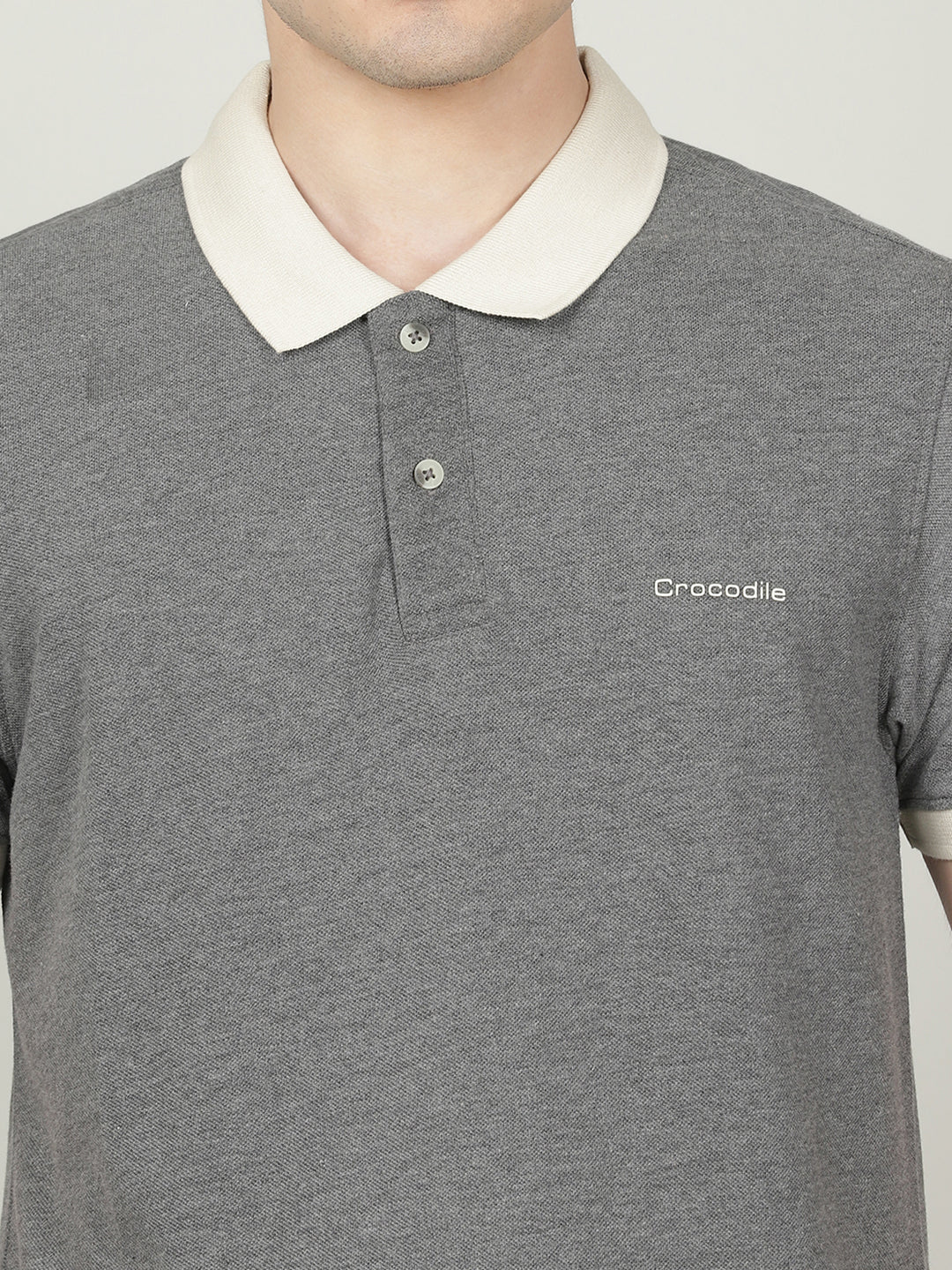 Charcoal Melange Grey Solid Casual Polo T-Shirt