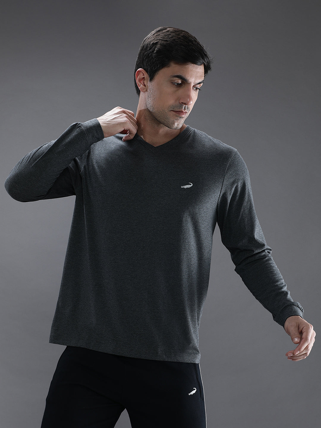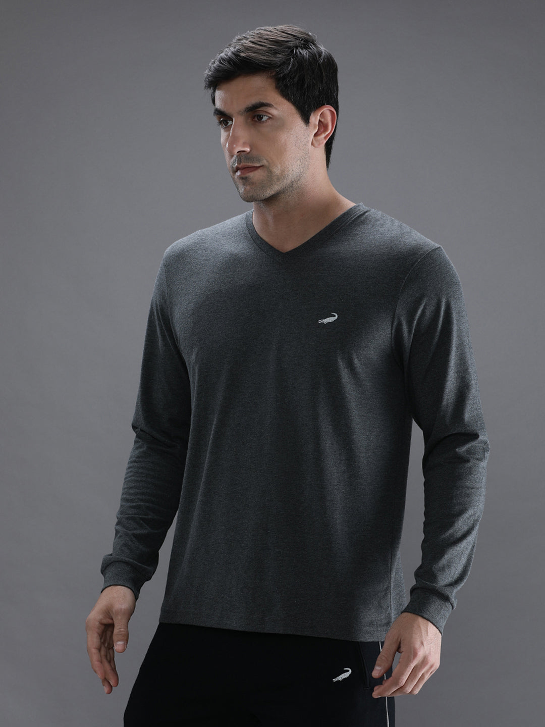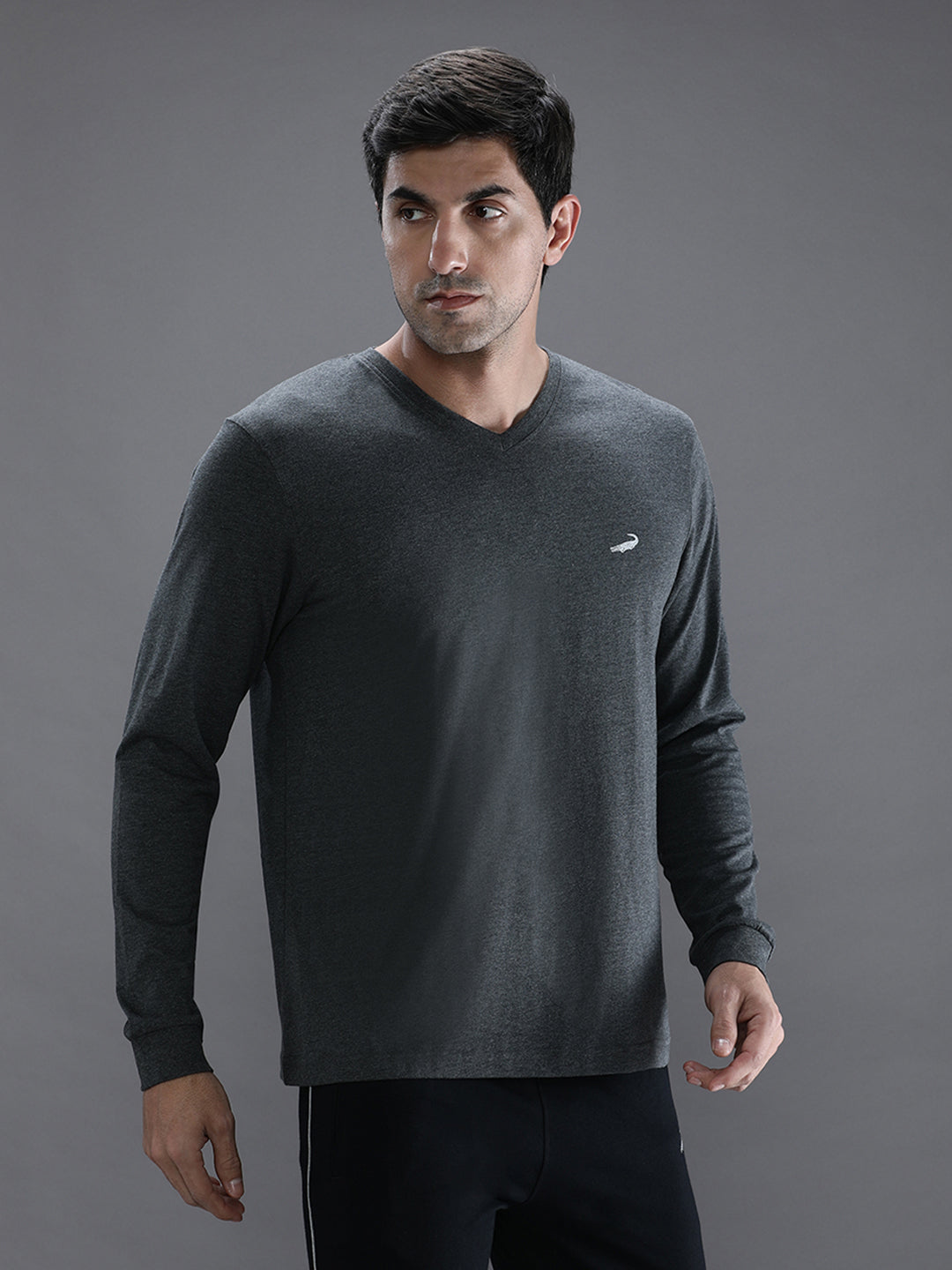 Charcoal Melange Grey Solid T-Shirt