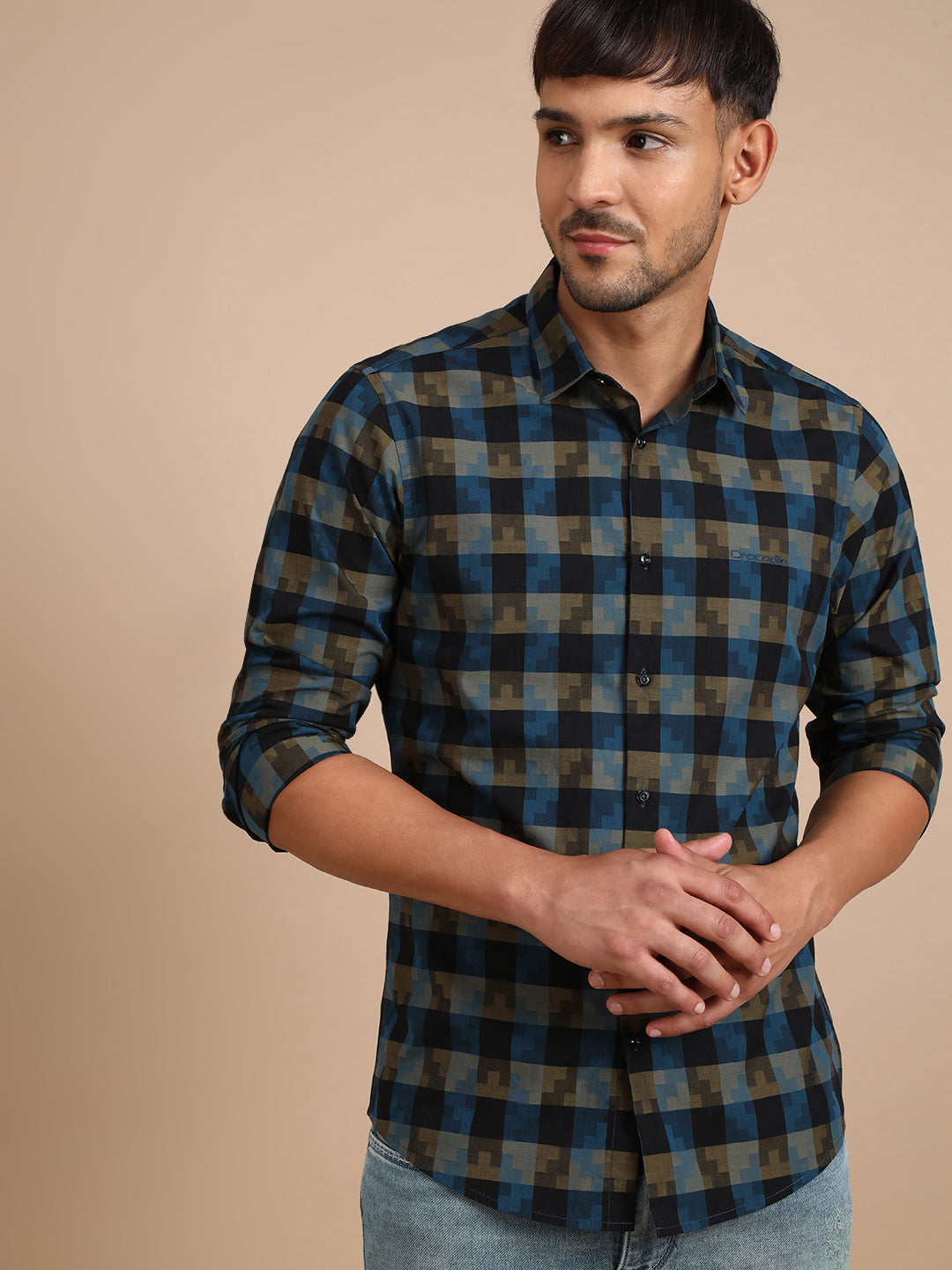 Checked Brown Full Sleeve Casual 100% Cotton Shirt